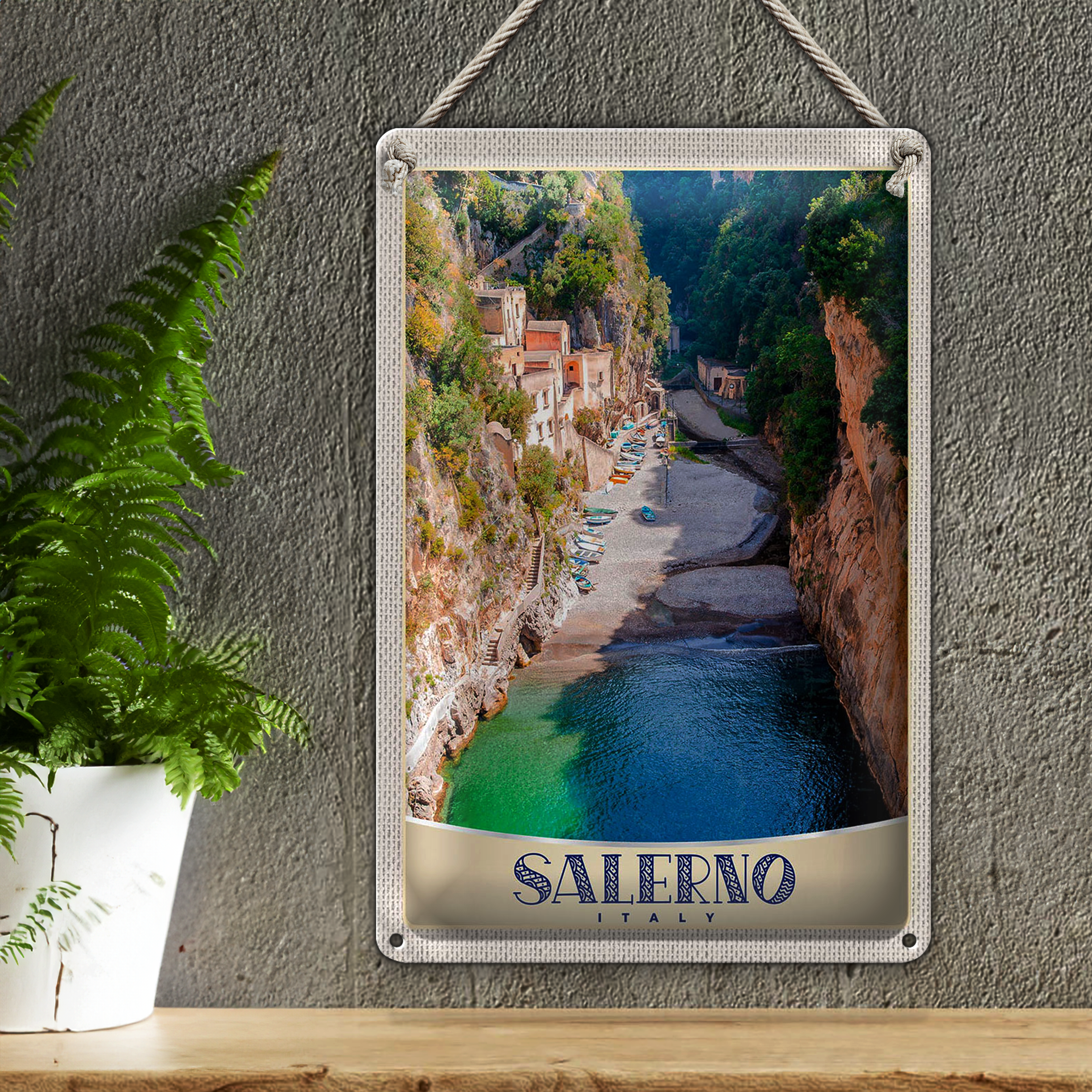Blechschild Reise 20x30cm Salerno Insel Natur Boot Strand Sonne