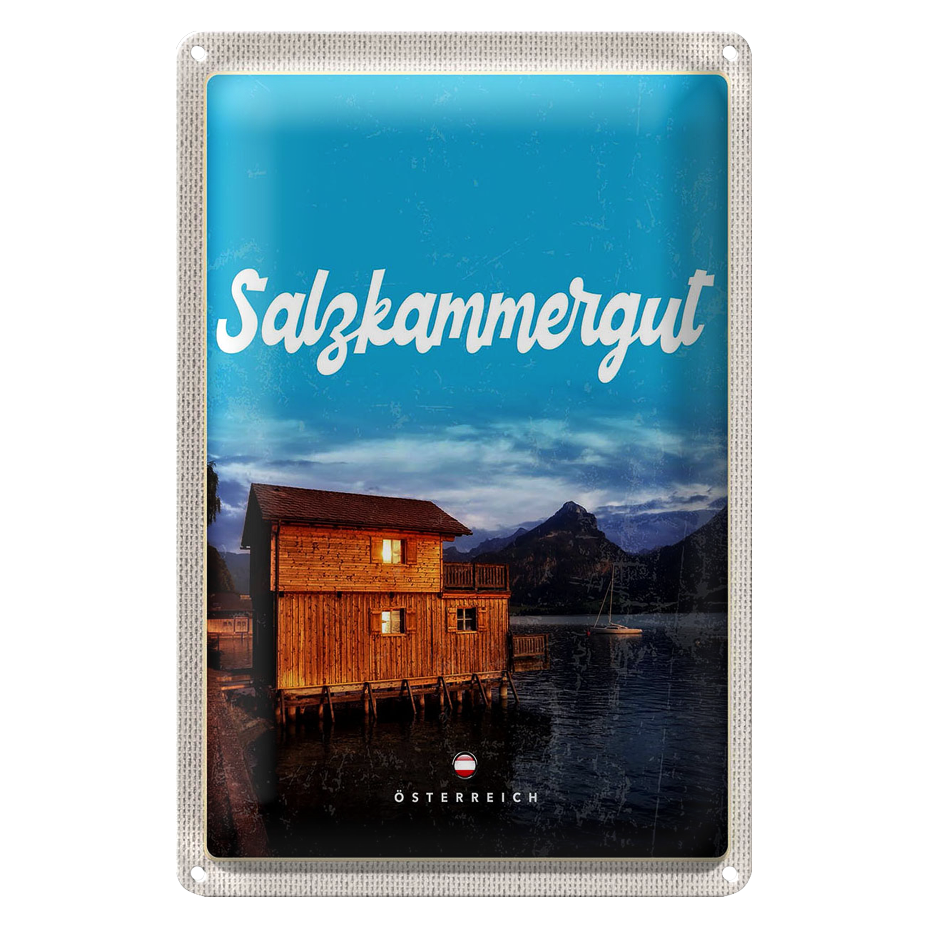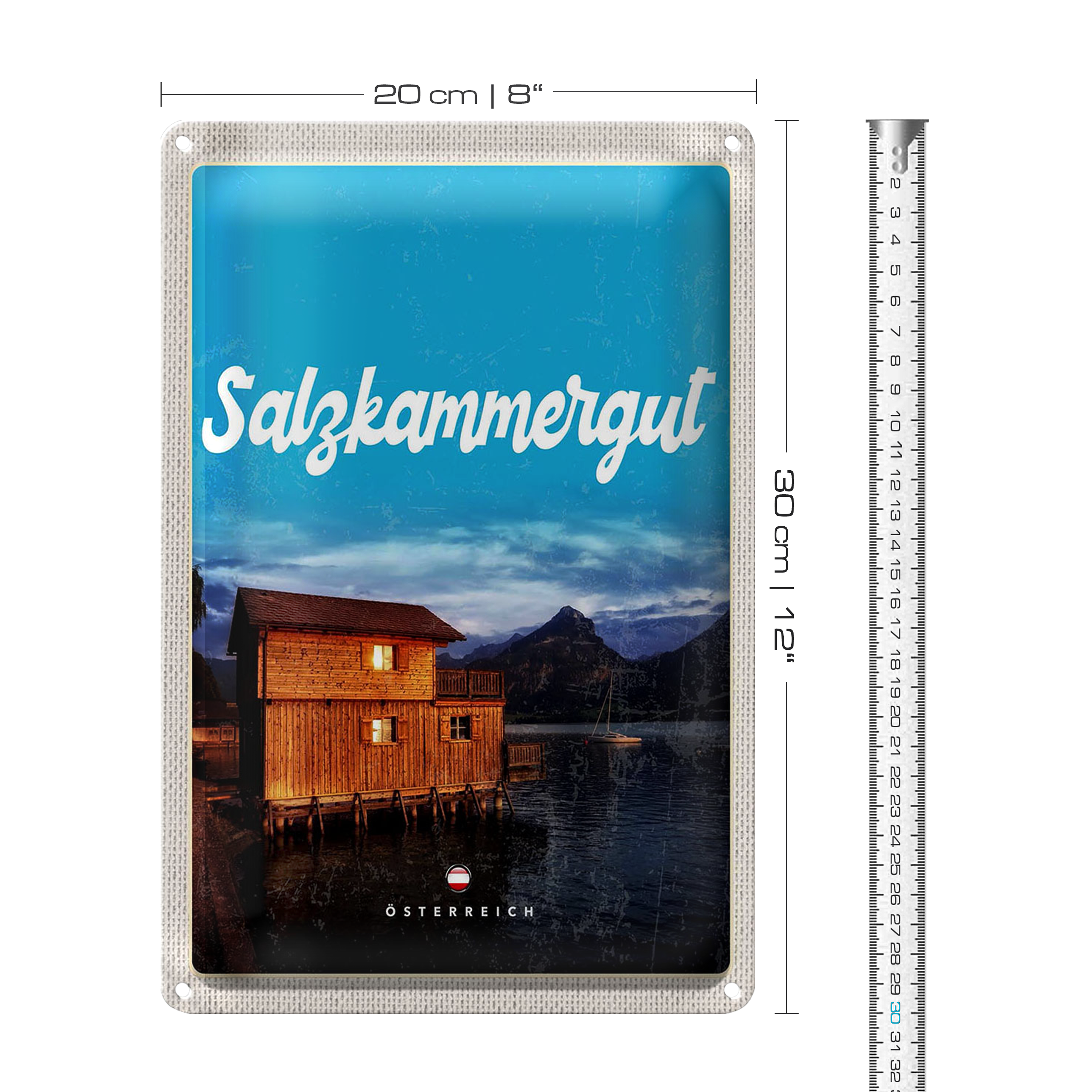 Blechschild Reise 20x30cm Salzkammergut Österreich Haus am See