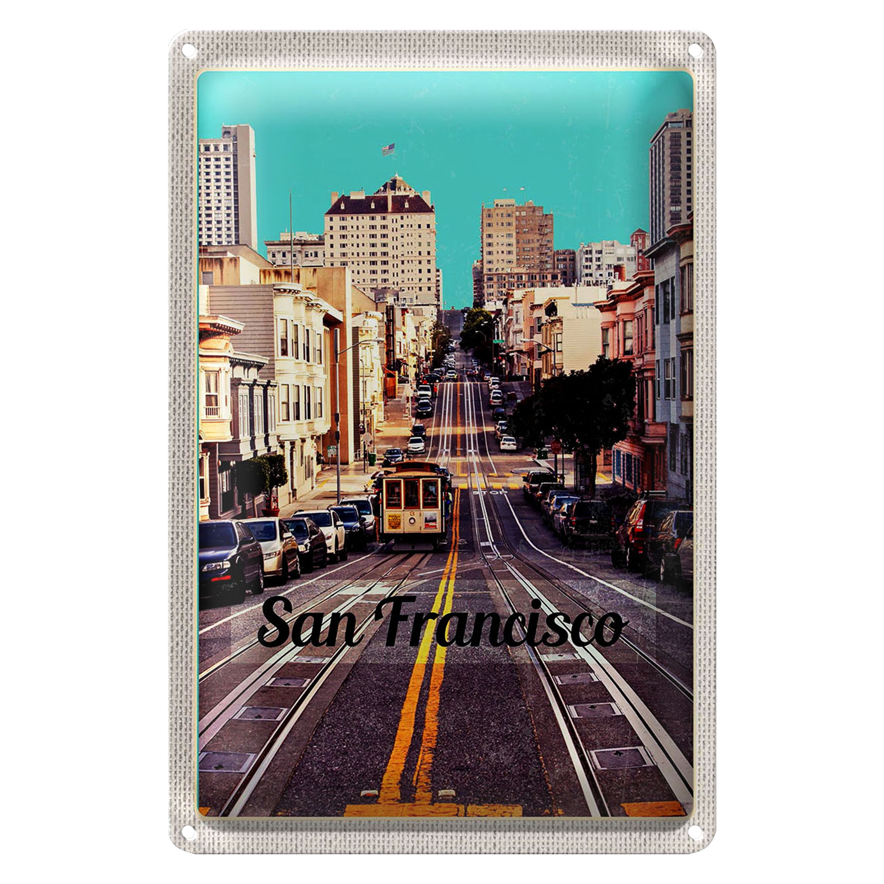 Blechschild Reise 20x30cm San Francisco Stadt Straße Straßenbahn