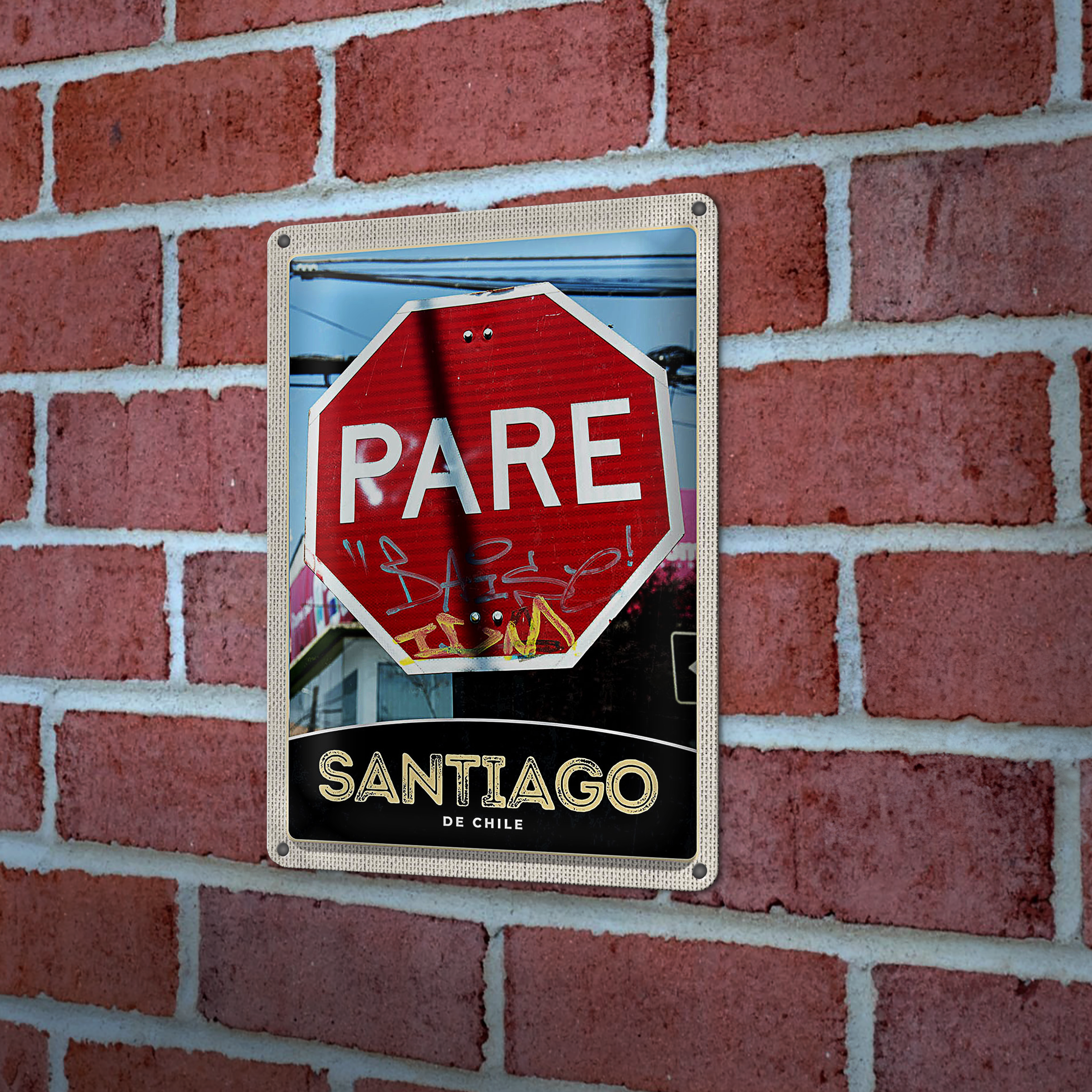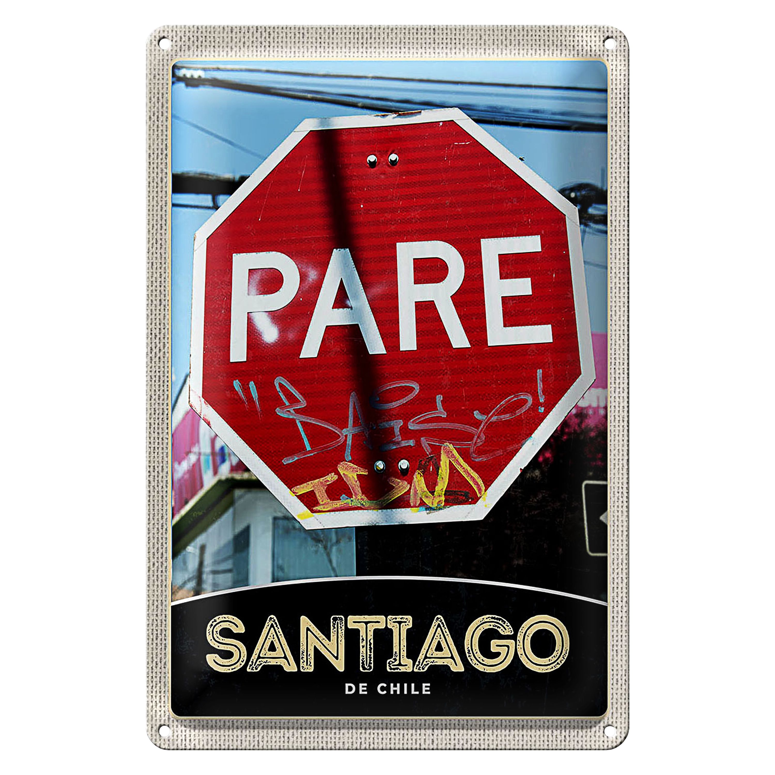 Blechschild Reise 20x30cm Santiago De Chile Amerika rotes