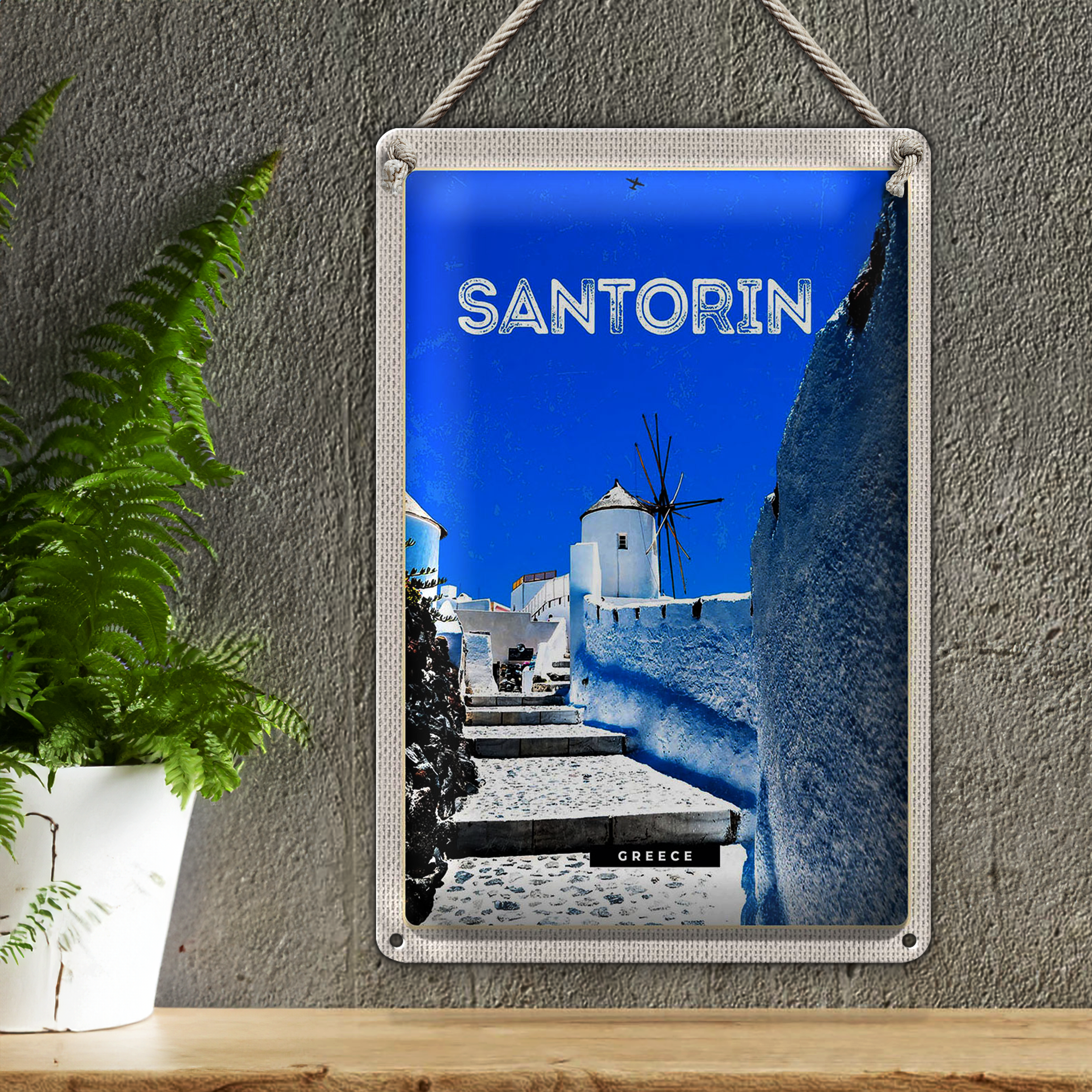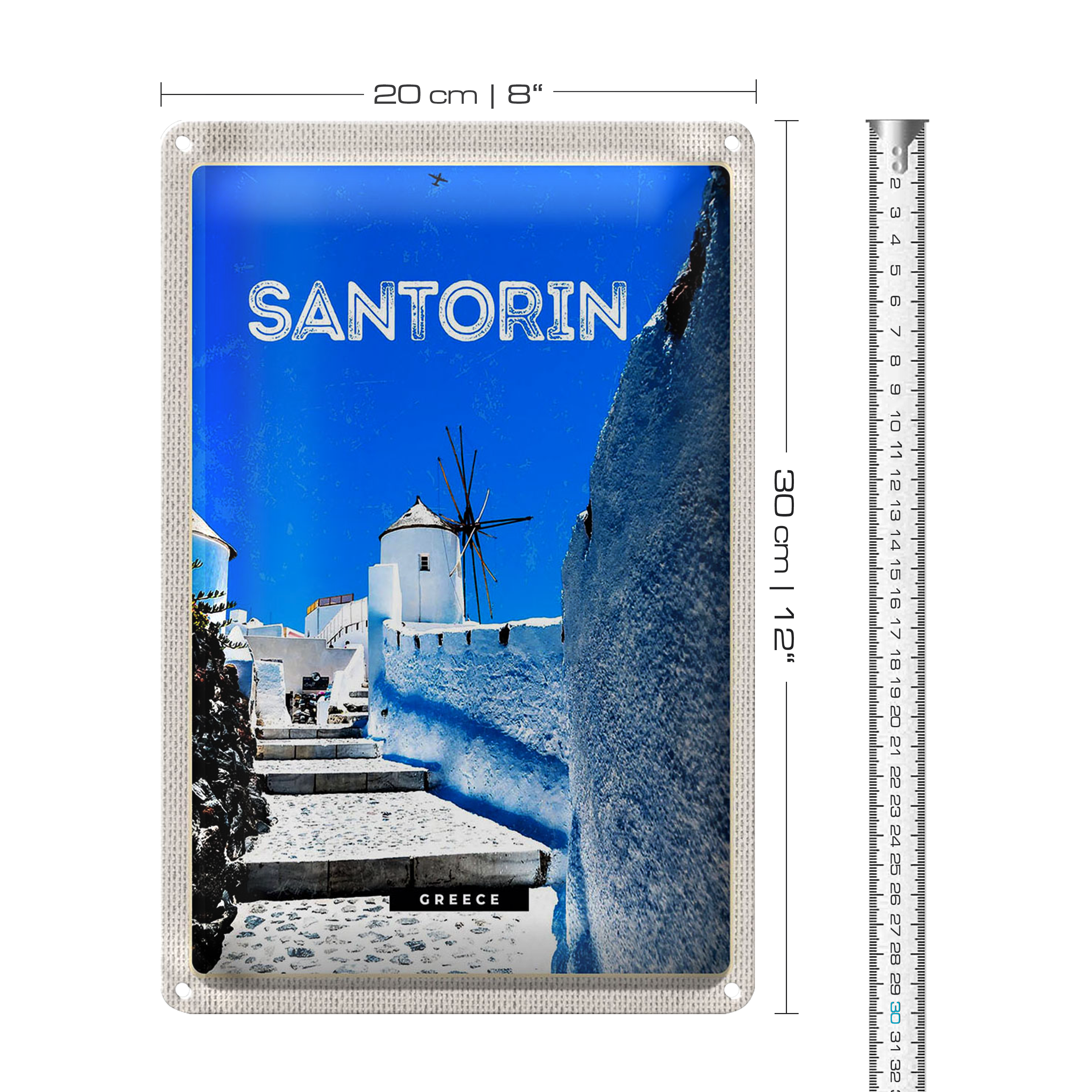 Blechschild Reise 20x30cm Santorini Griechenland weiße Treppen