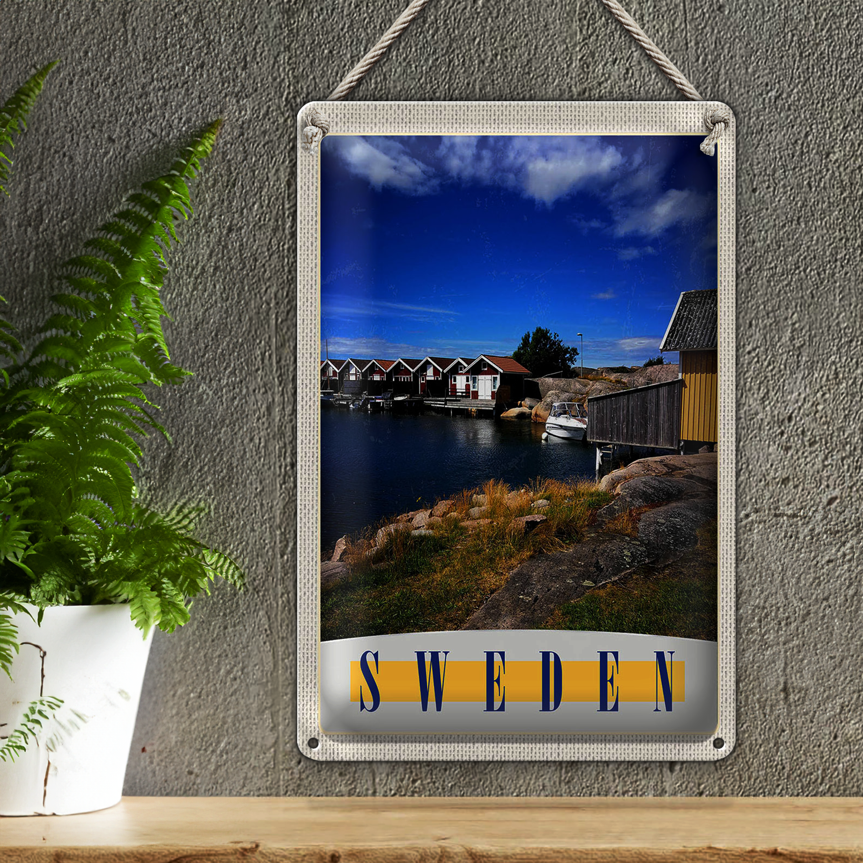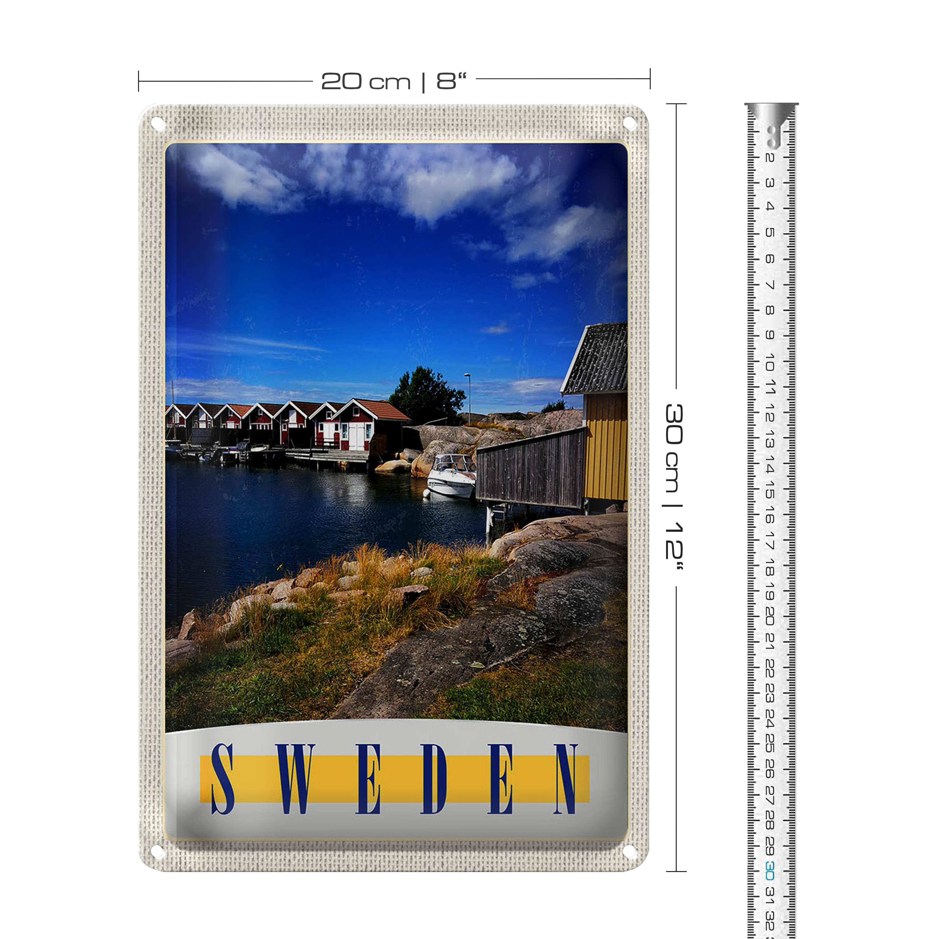 Blechschild Reise 20x30cm Schweden Meer Häuser Boote