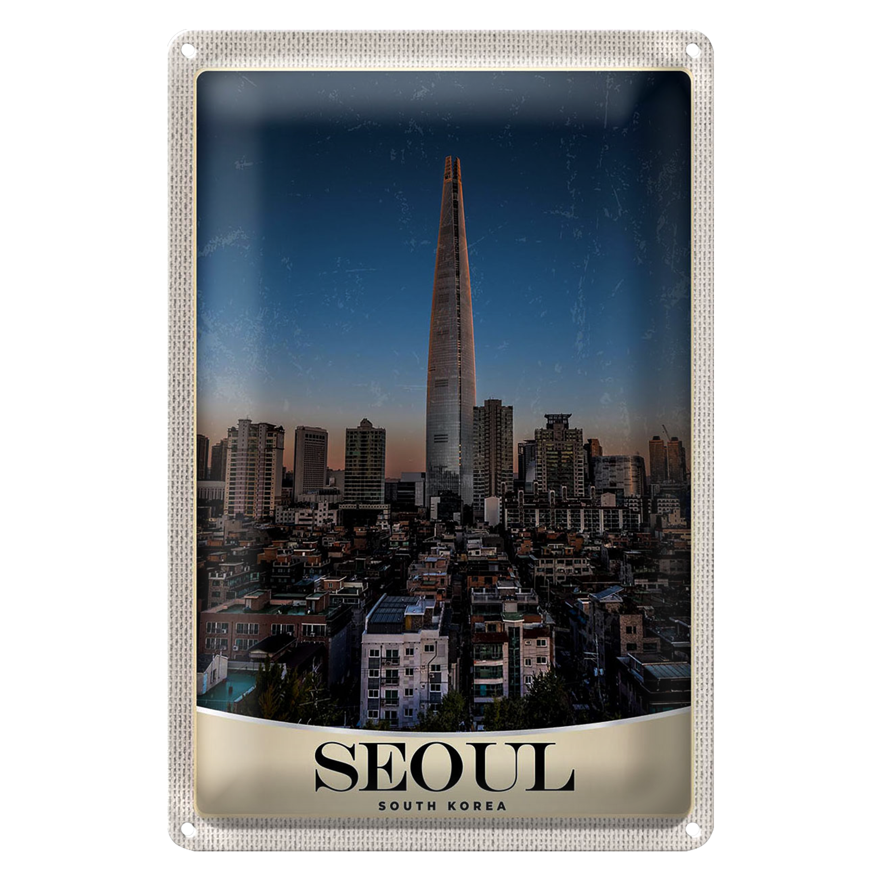 Blechschild Reise 20x30cm Seoul Süd Korea Wolkenkratzer Stadt