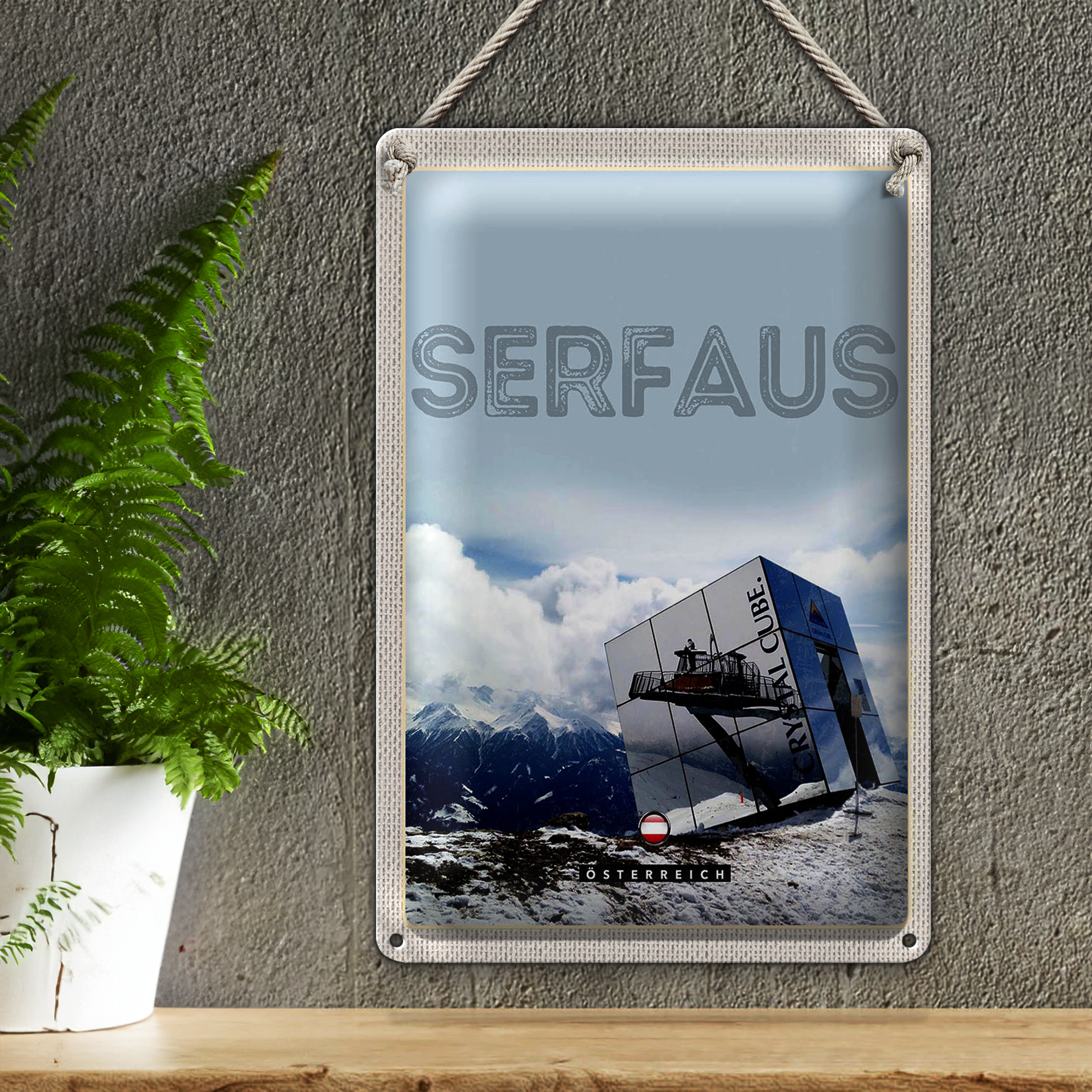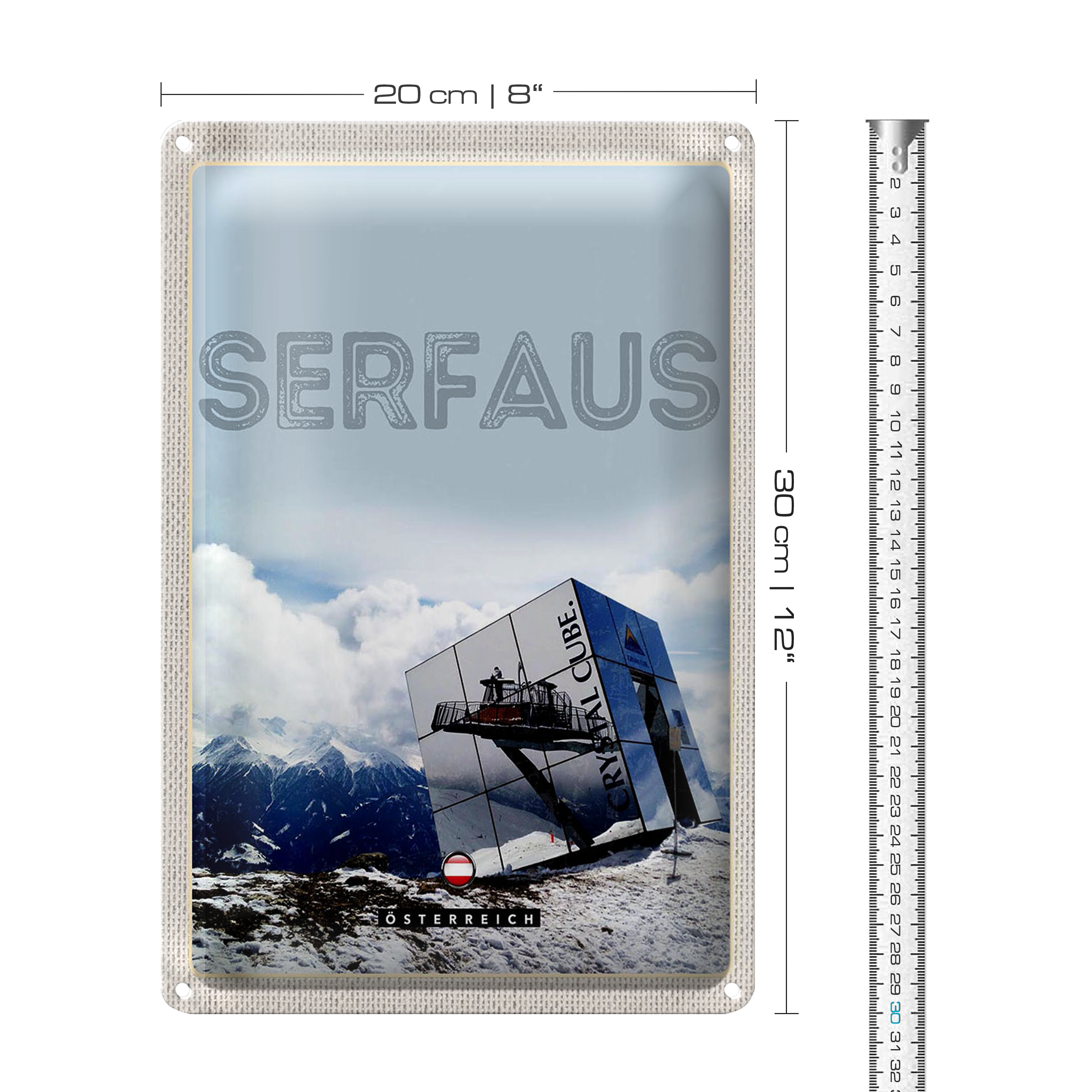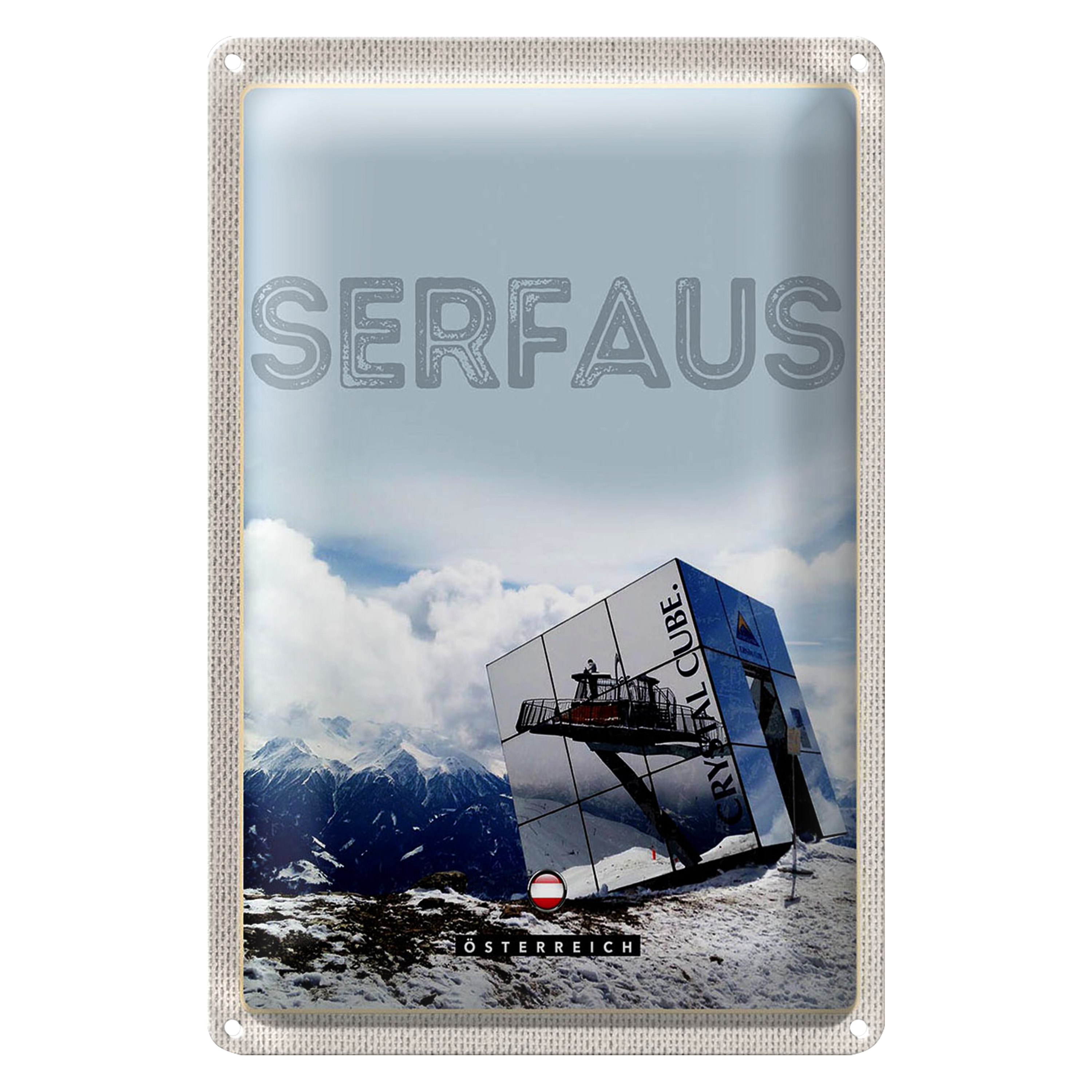 Blechschild Reise 20x30cm Serfaus Österreich Schnee Winterzeit