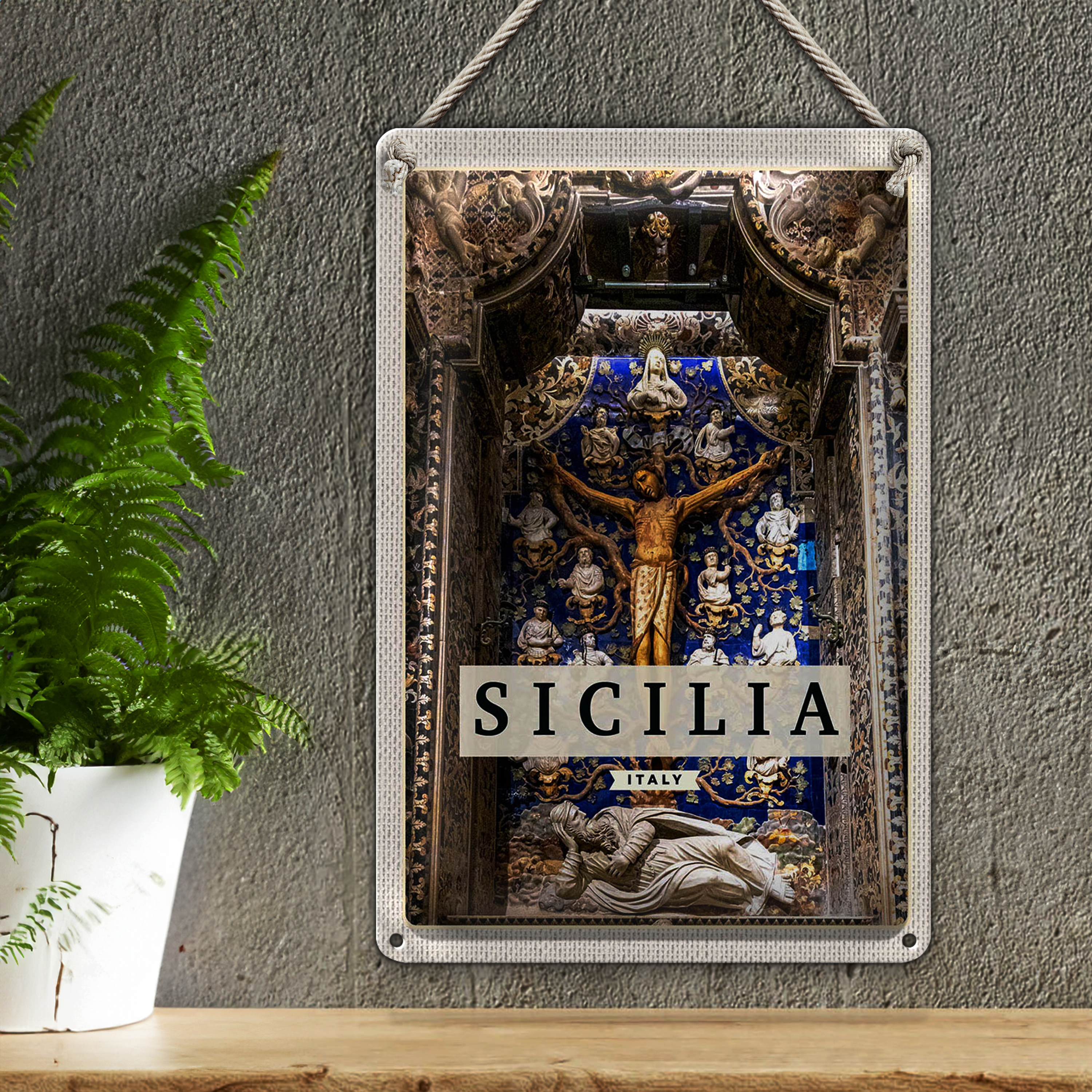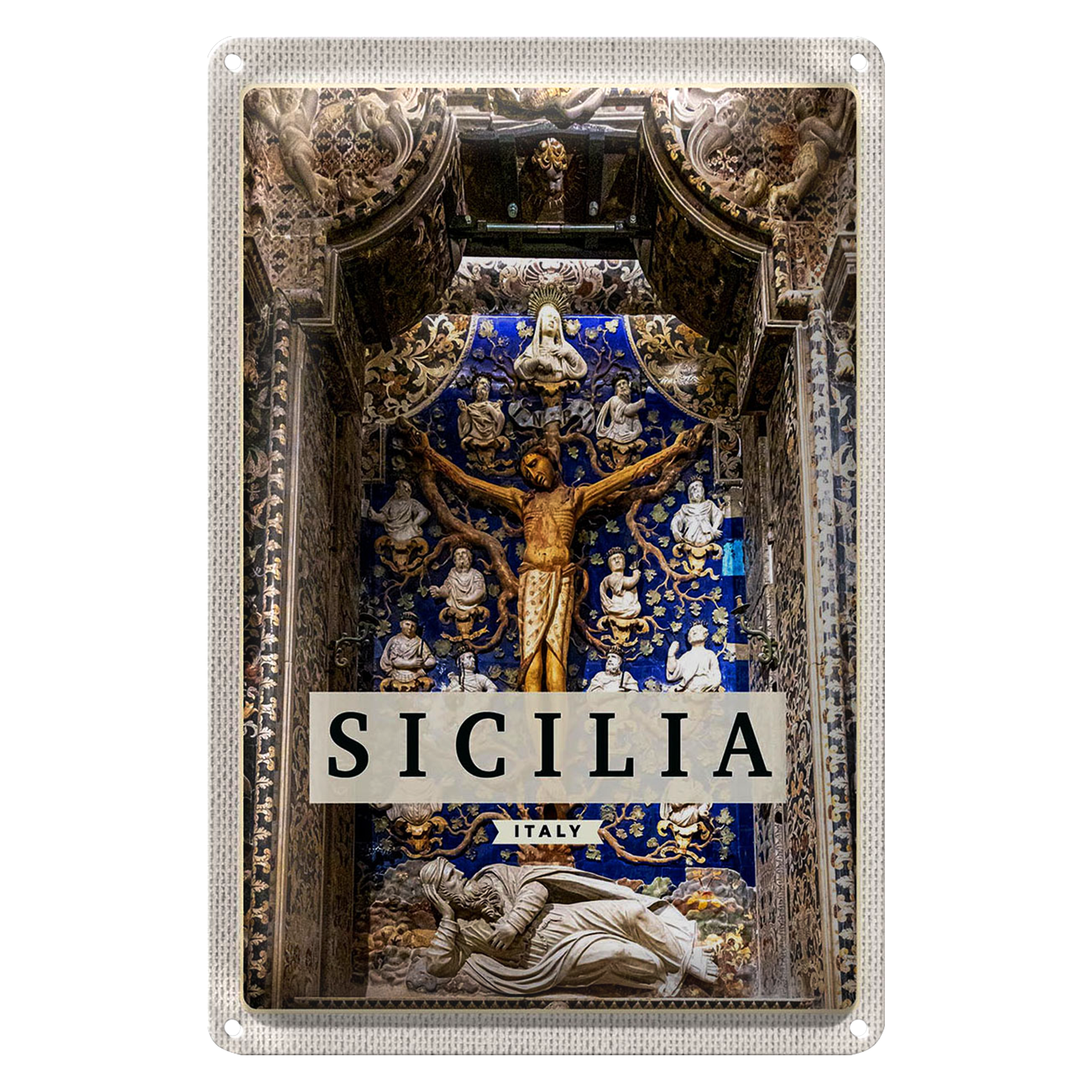 Blechschild Reise 20x30cm Sizilien Italien Christ Jesus am Kreuz
