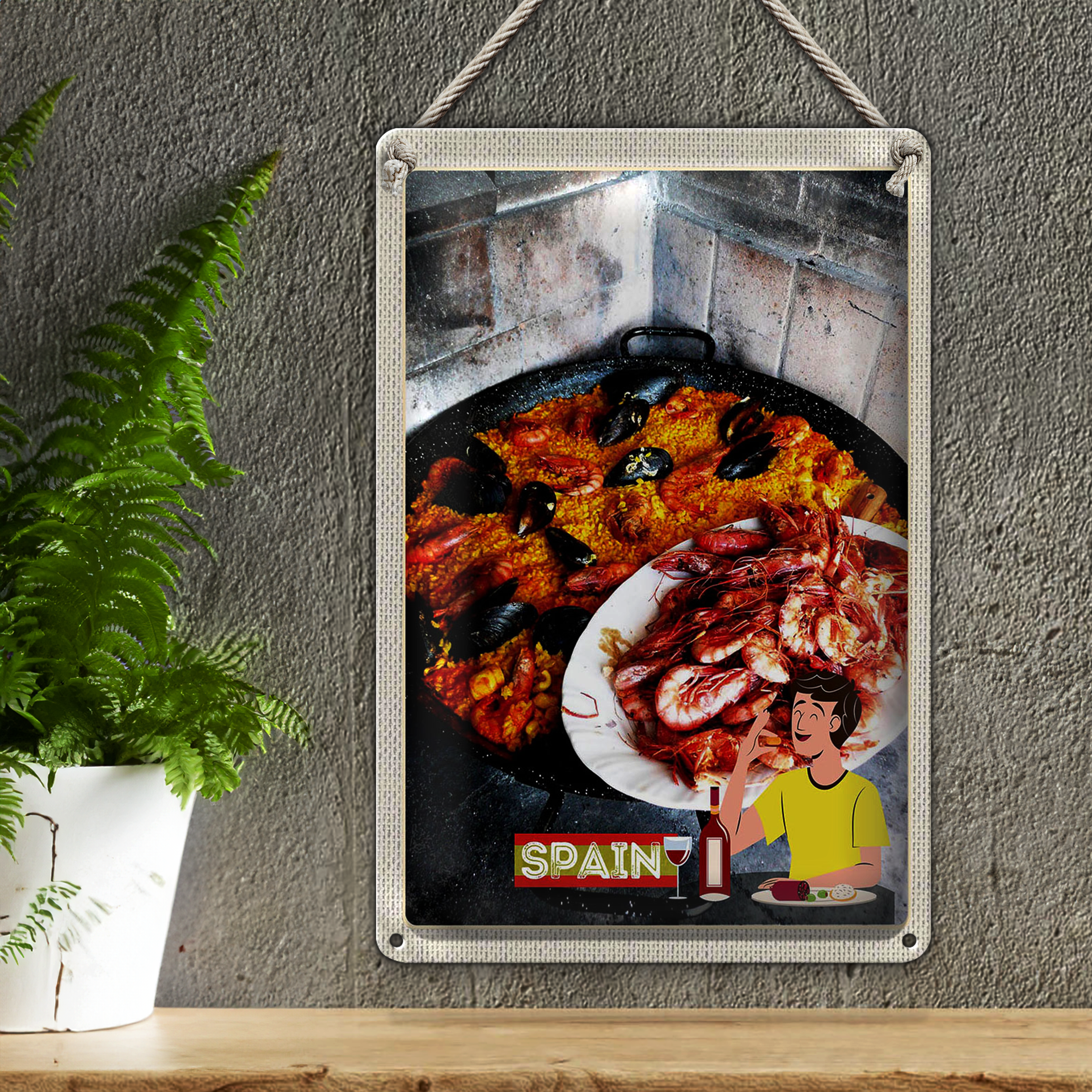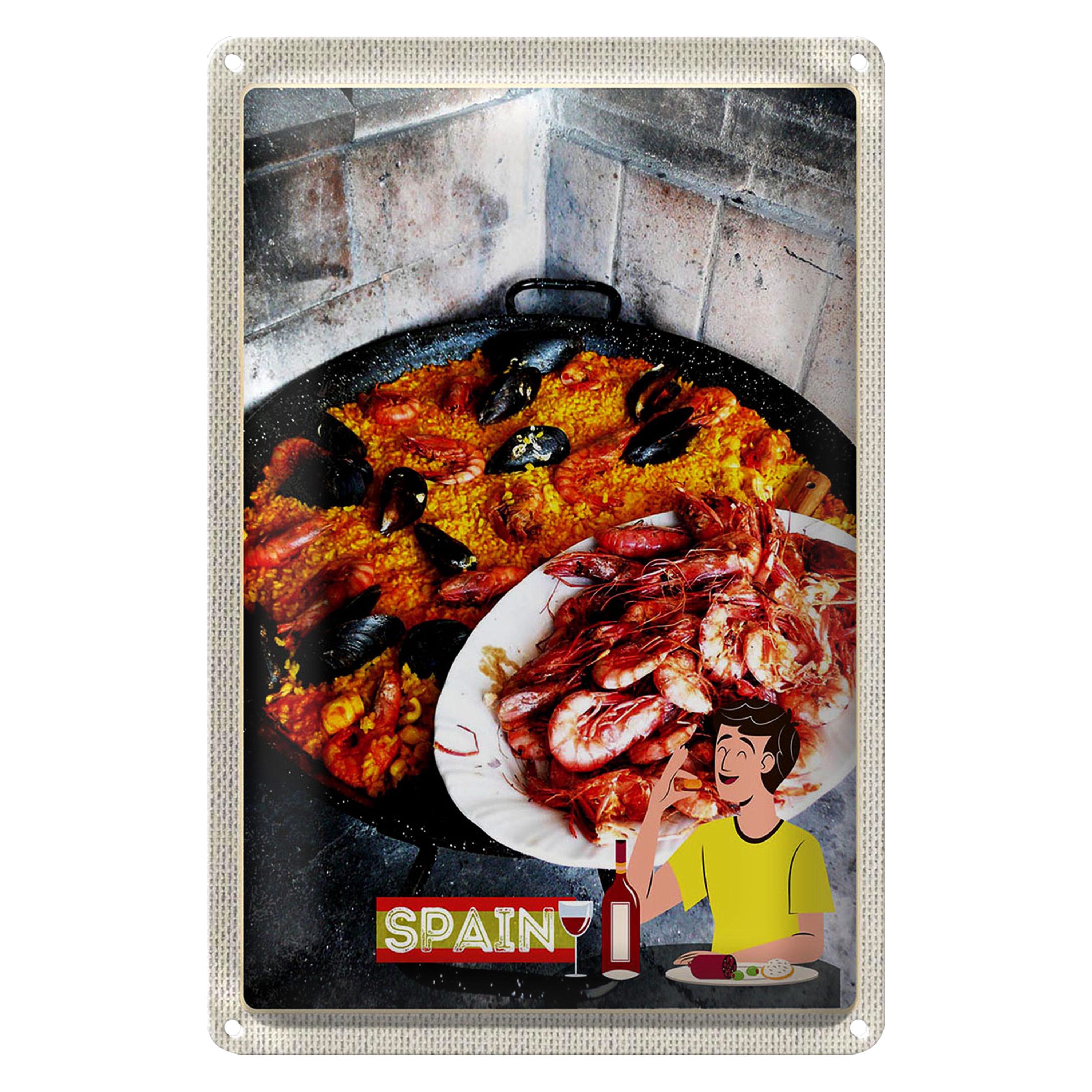 Blechschild Reise 20x30cm Spanien Europa Muscheln Reis Garnelen