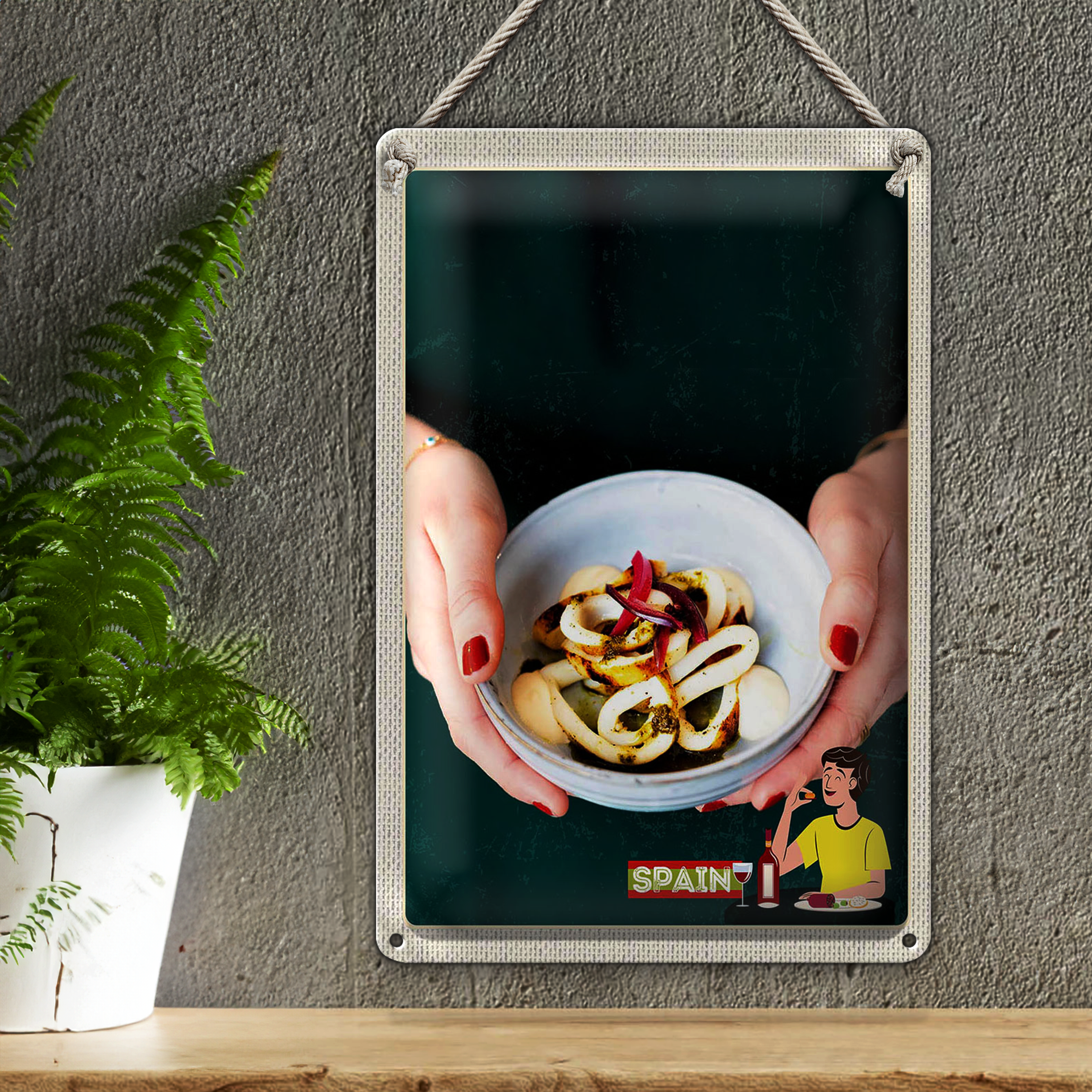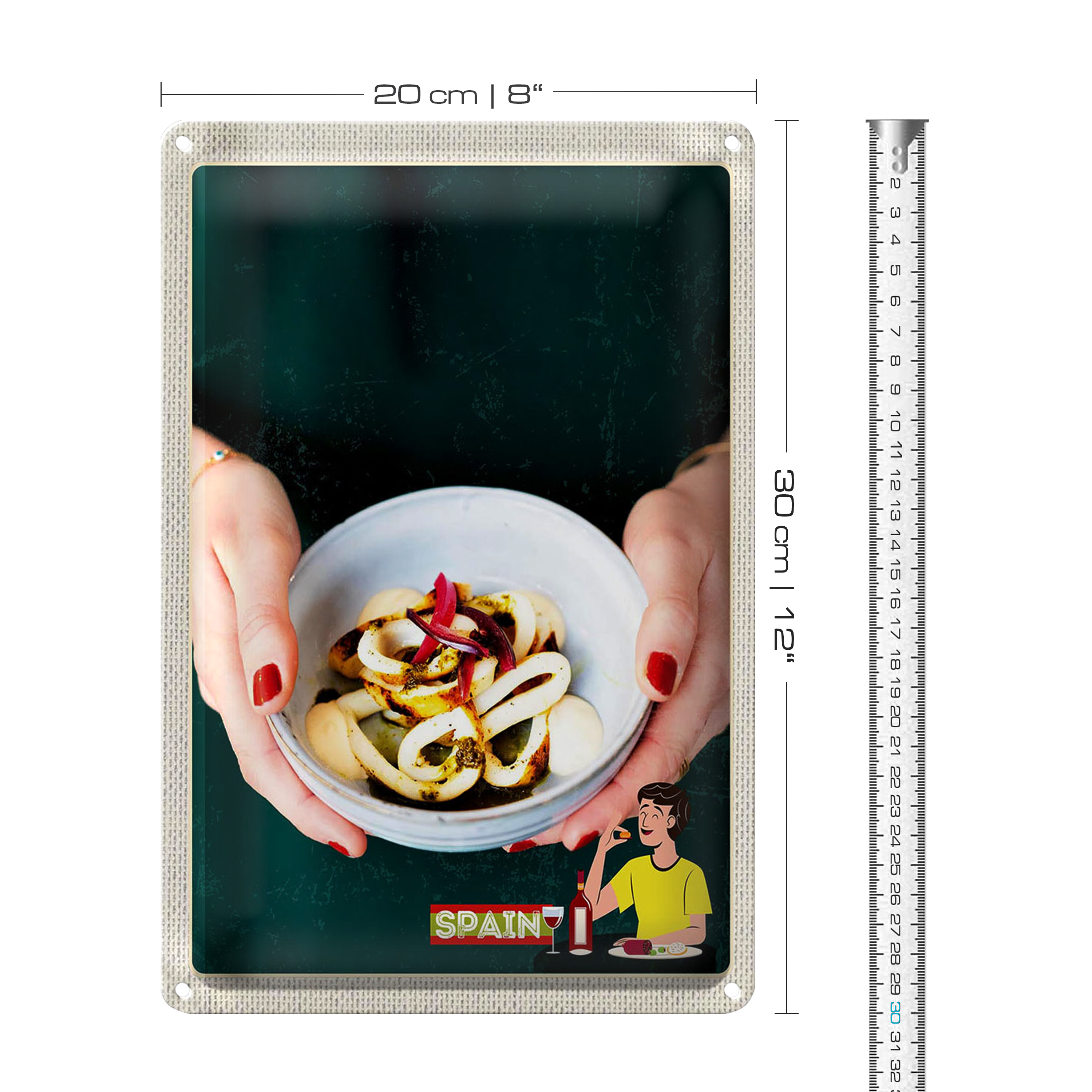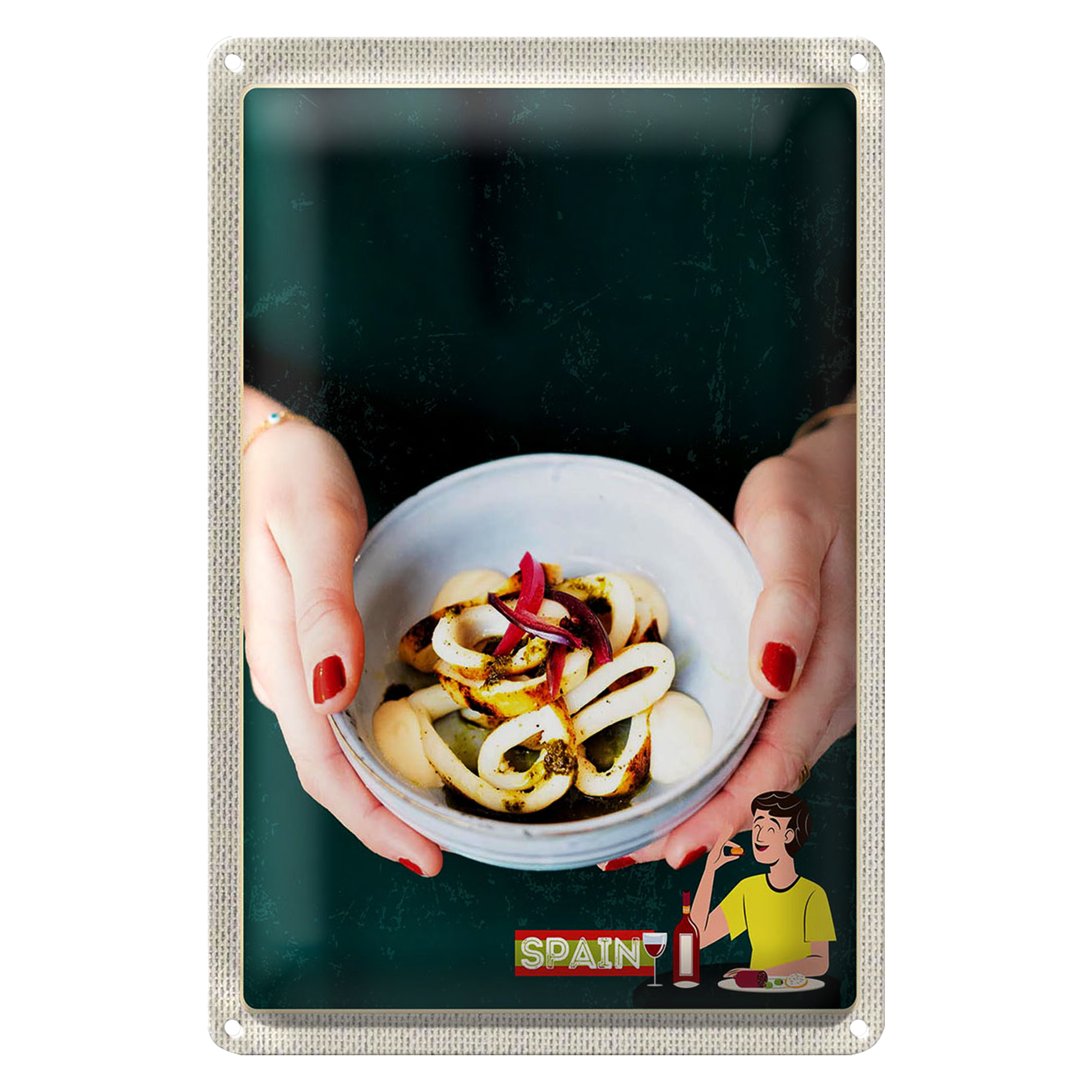 Blechschild Reise 20x30cm Spanien Europa Tintenfisch Gericht