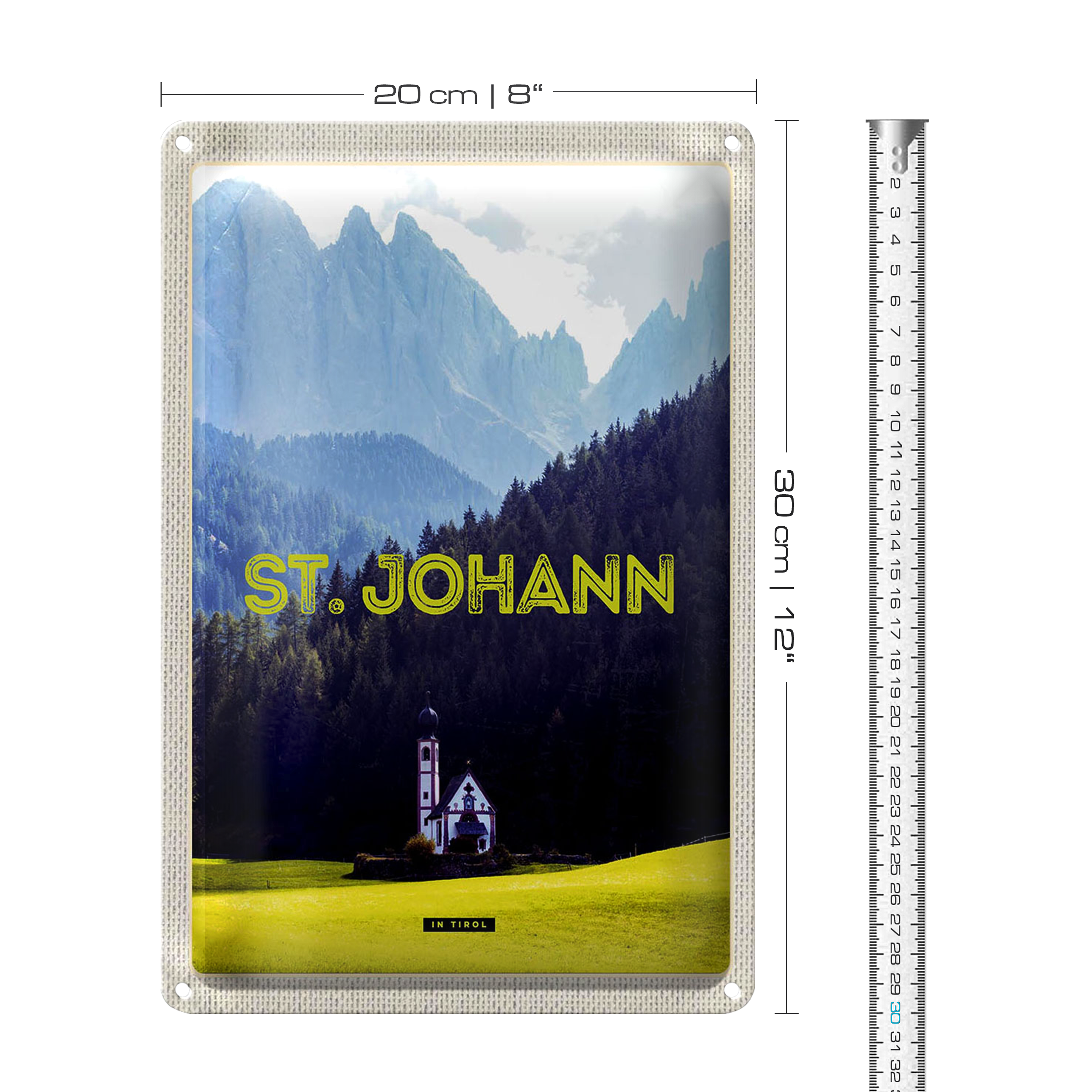 Blechschild Reise 20x30cm St. Johann in Tirol Österreich Kirche