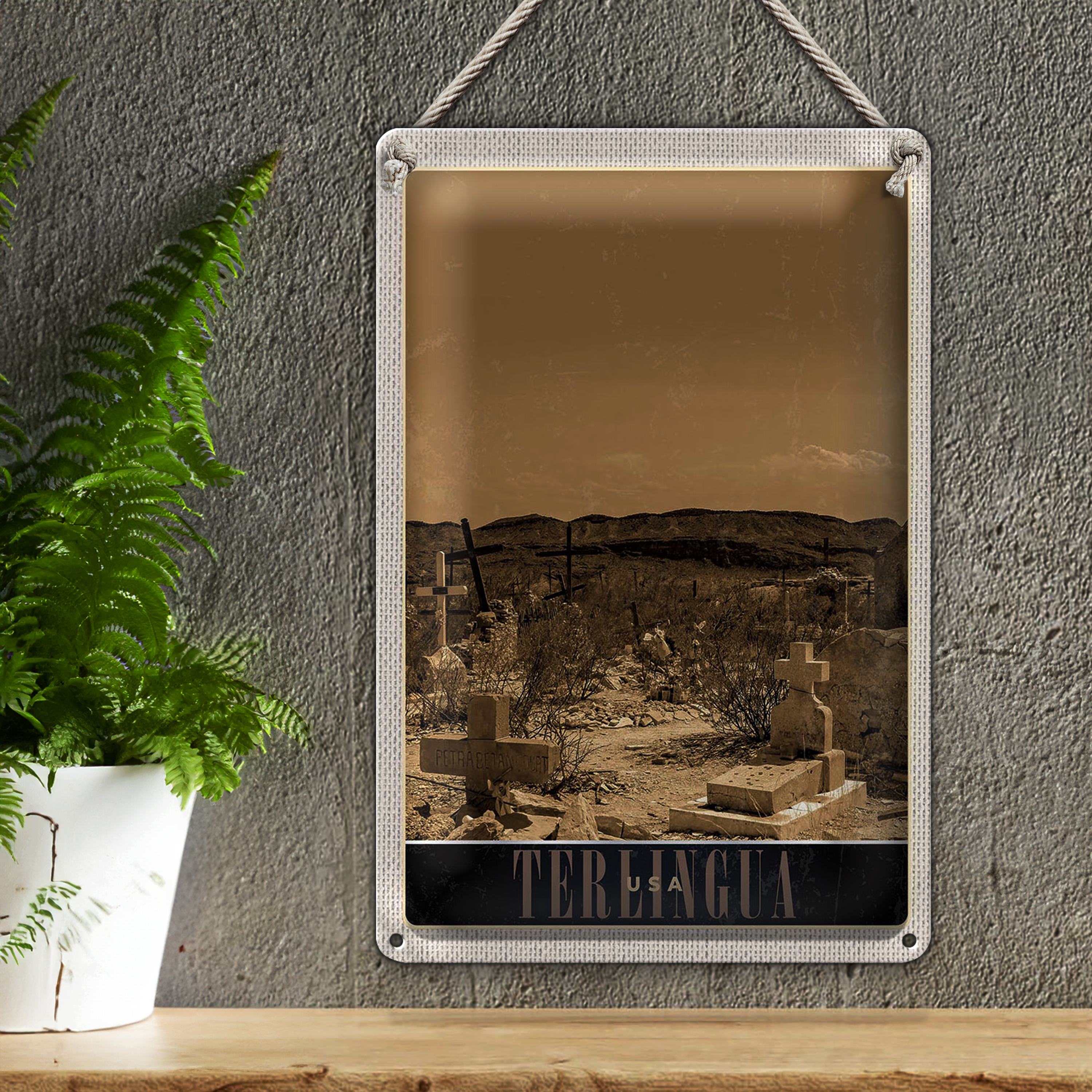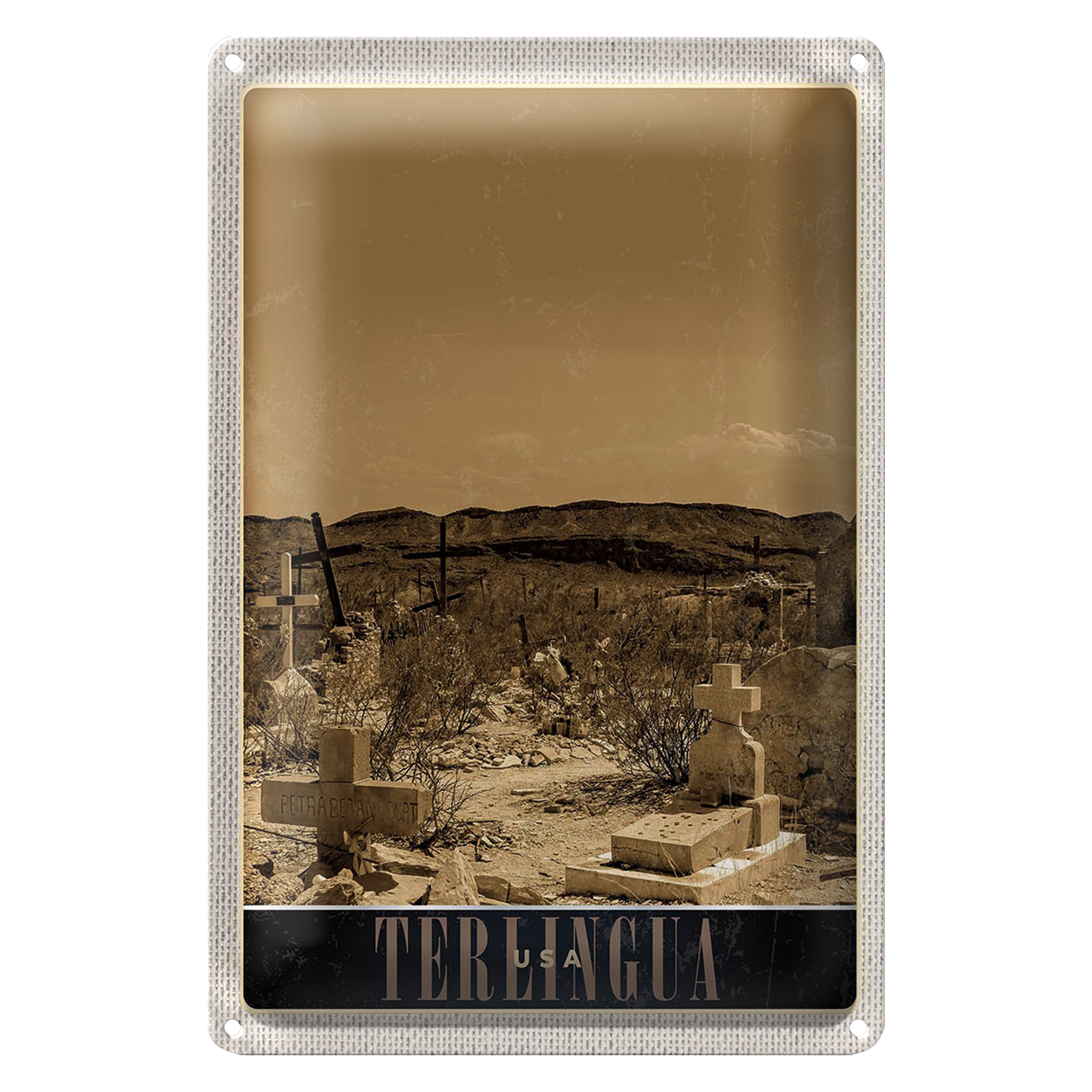 Blechschild Reise 20x30cm Therlingua USA Amerika Grabstein Wüste