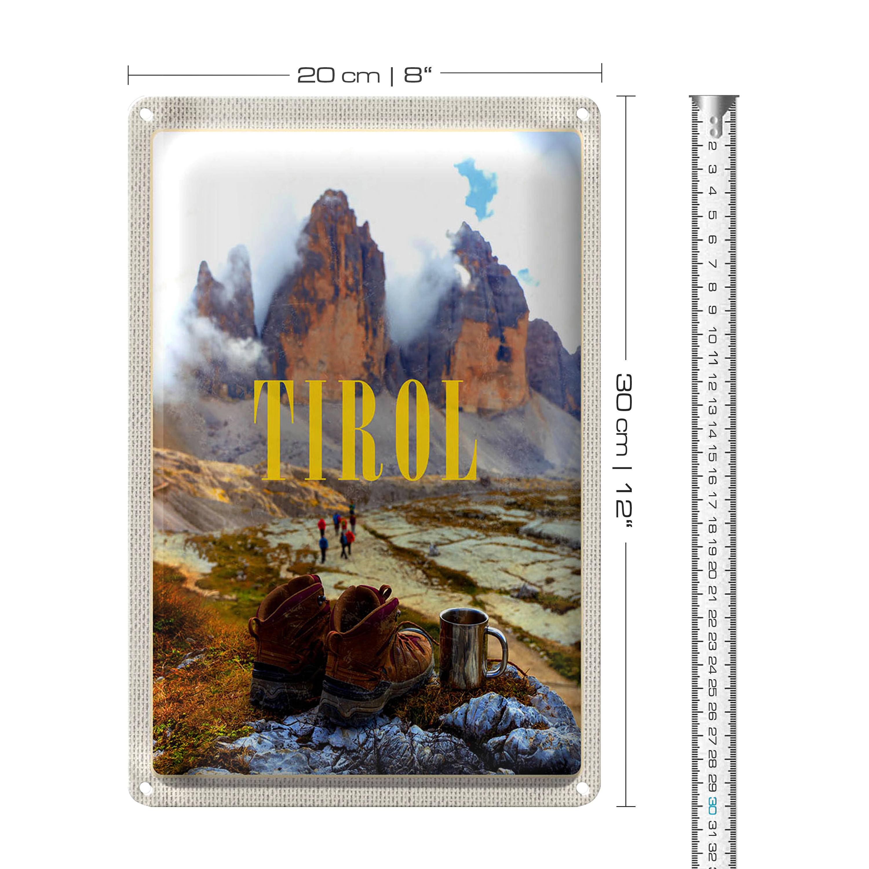 Blechschild Reise 20x30cm Tirol Wanderung Schuhe kaltes Getränk