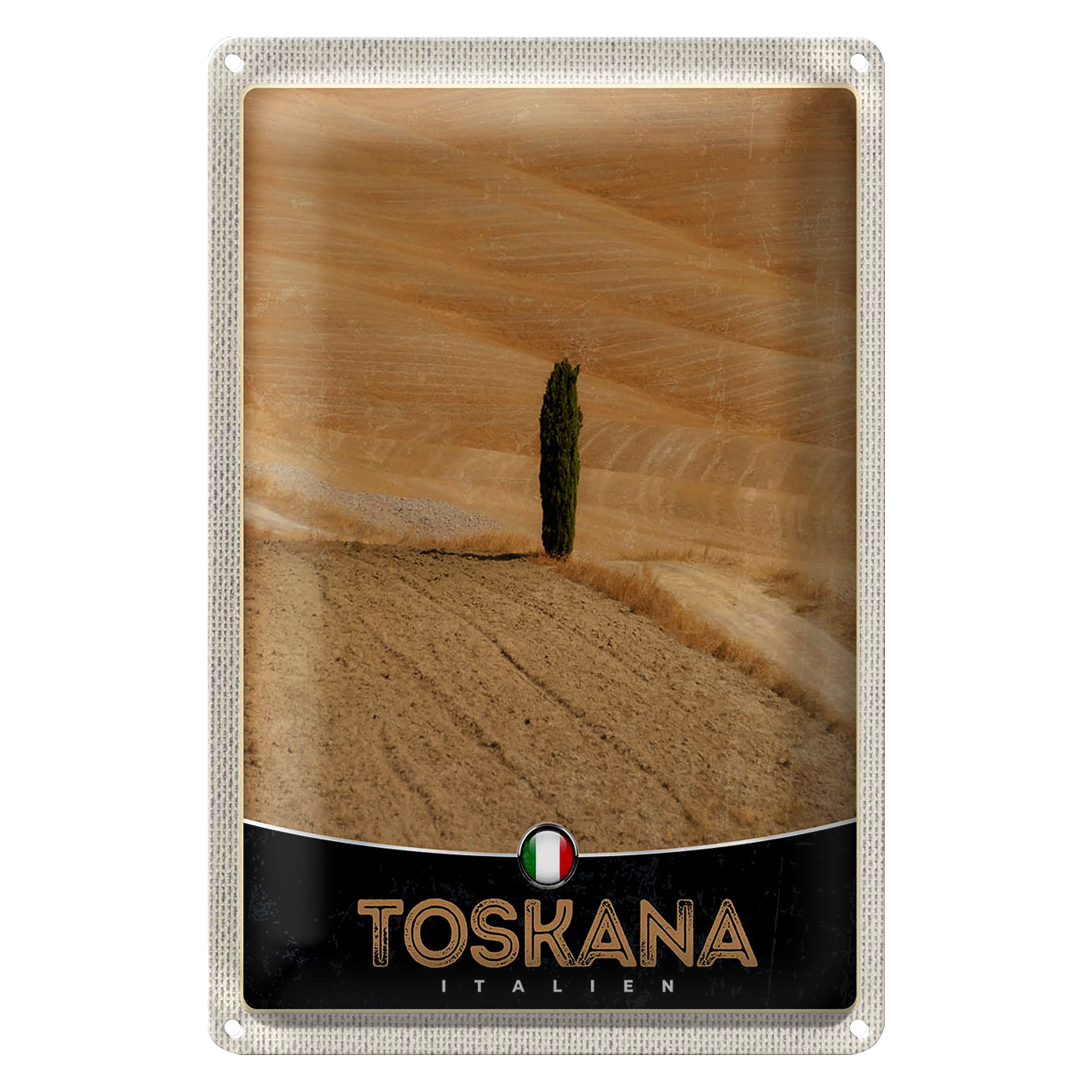 Blechschild Reise 20x30cm Toskana Italien Felder Natur Sand