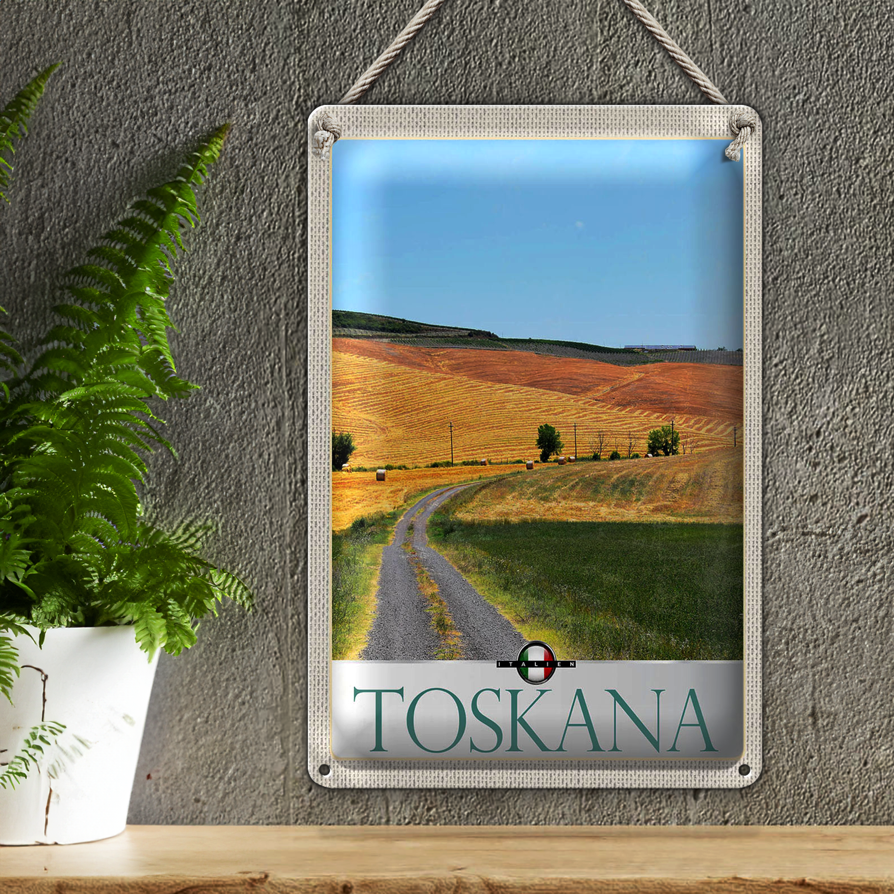 Blechschild Reise 20x30cm Toskana Italien Weide Wiese Natur