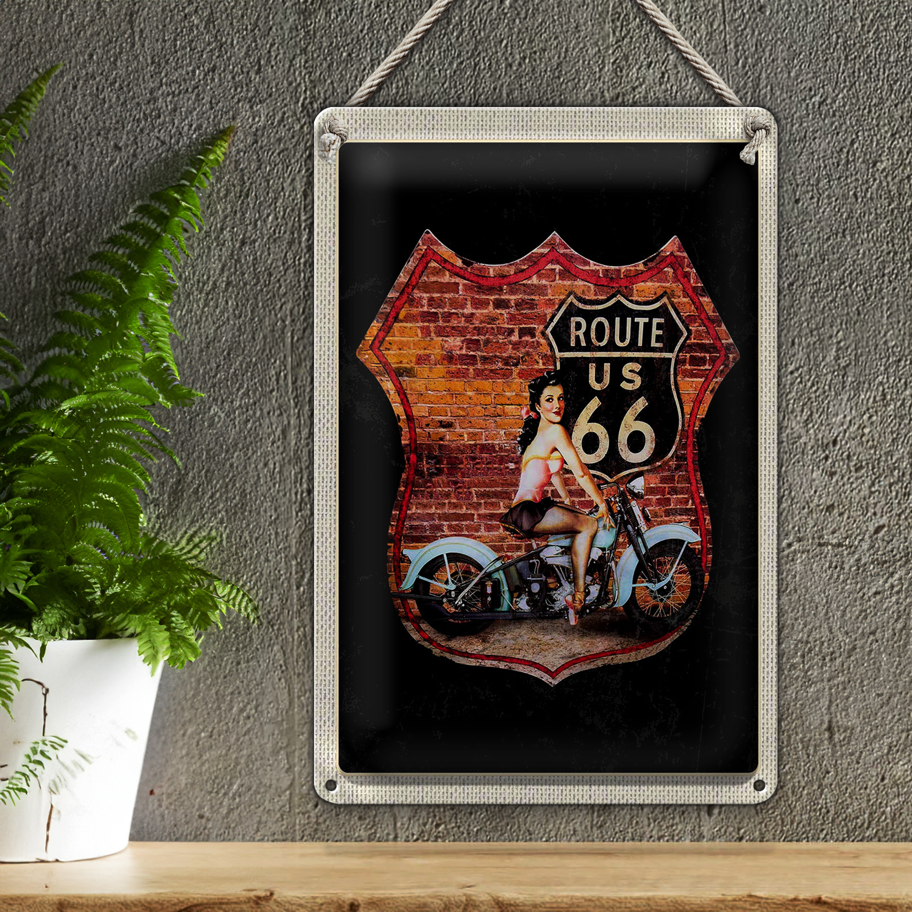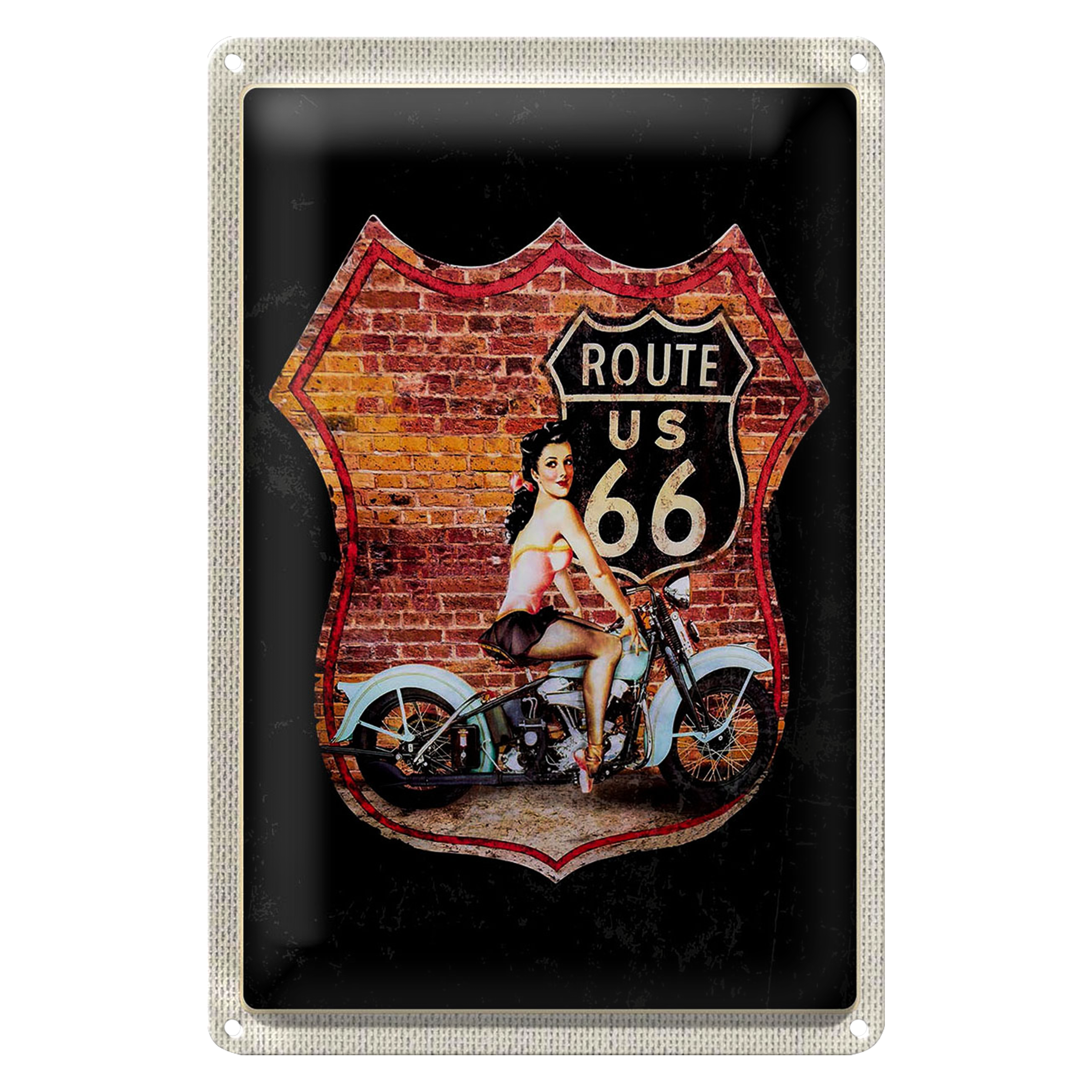 Blechschild Reise 20x30cm USA Amerika Route US 66 Motorrad Frau