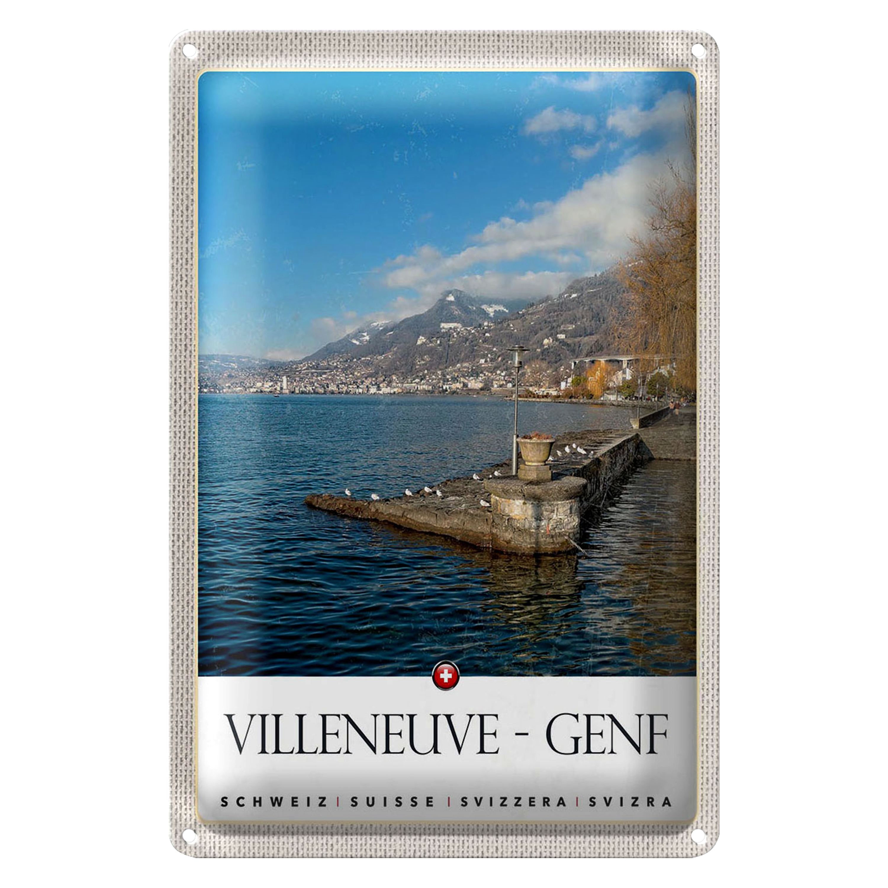 Blechschild Reise 20x30cm Villeneuve-Genf Schweiz Wanderung