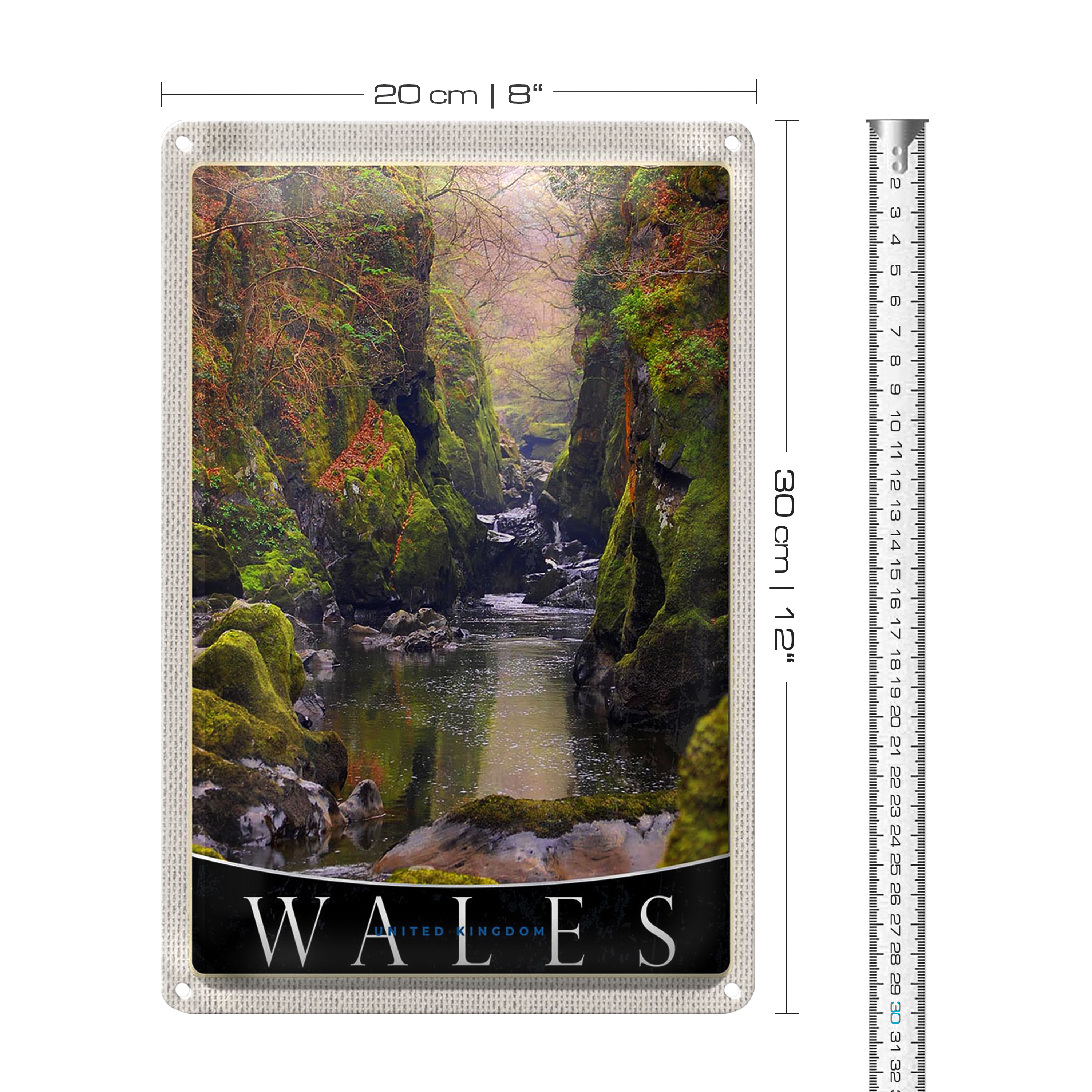 Blechschild Reise 20x30cm Wales England Natur Fluss Wald Urlaub