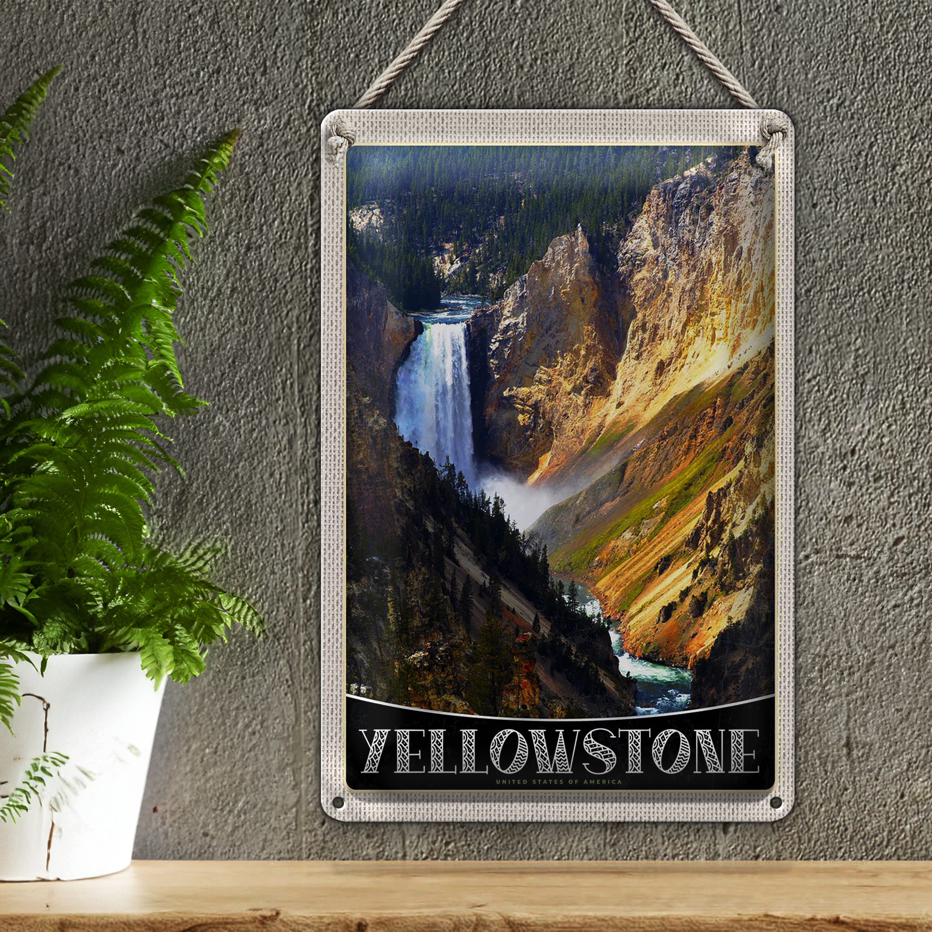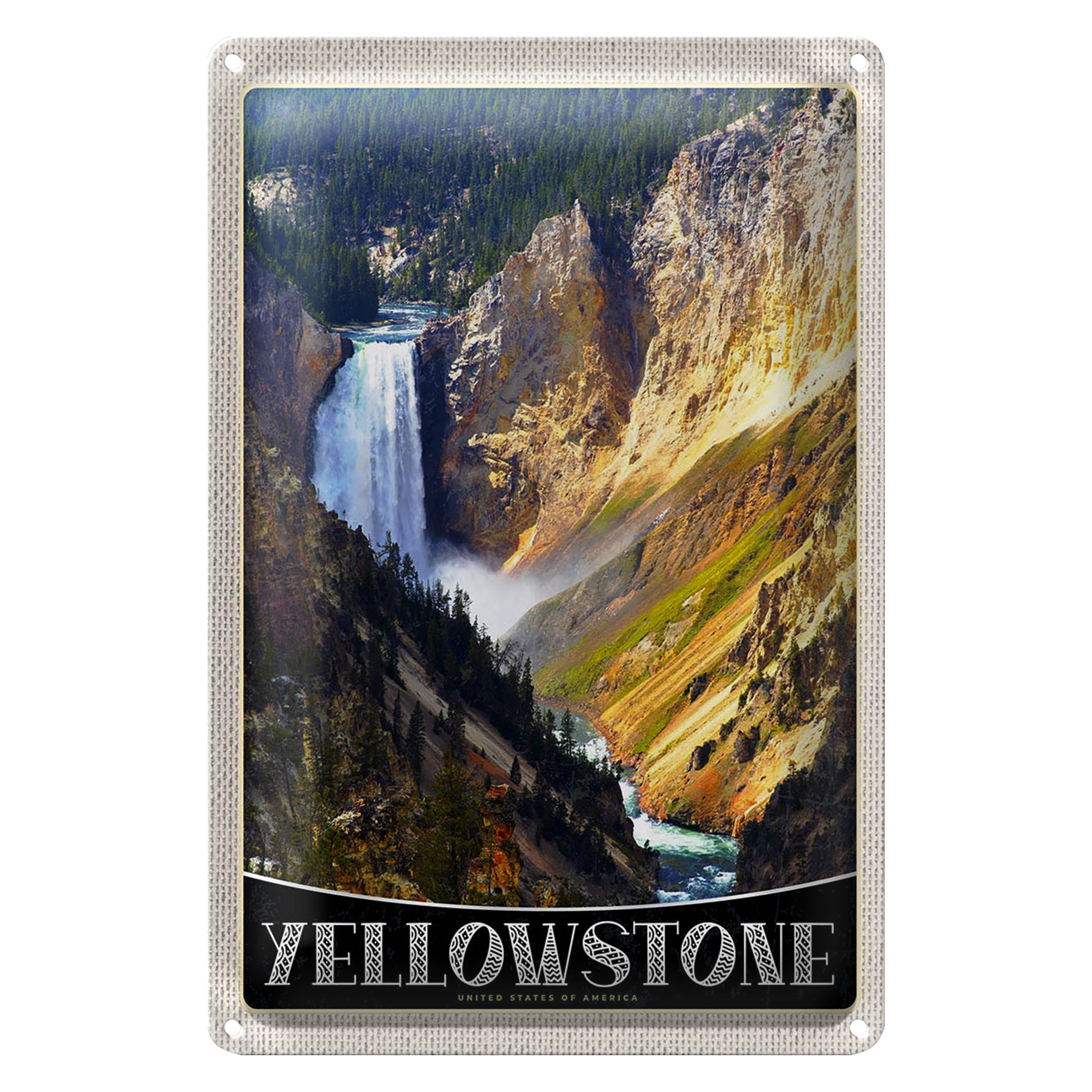 Blechschild Reise 20x30cm Yellowstone Wasserfall Fluss Natur