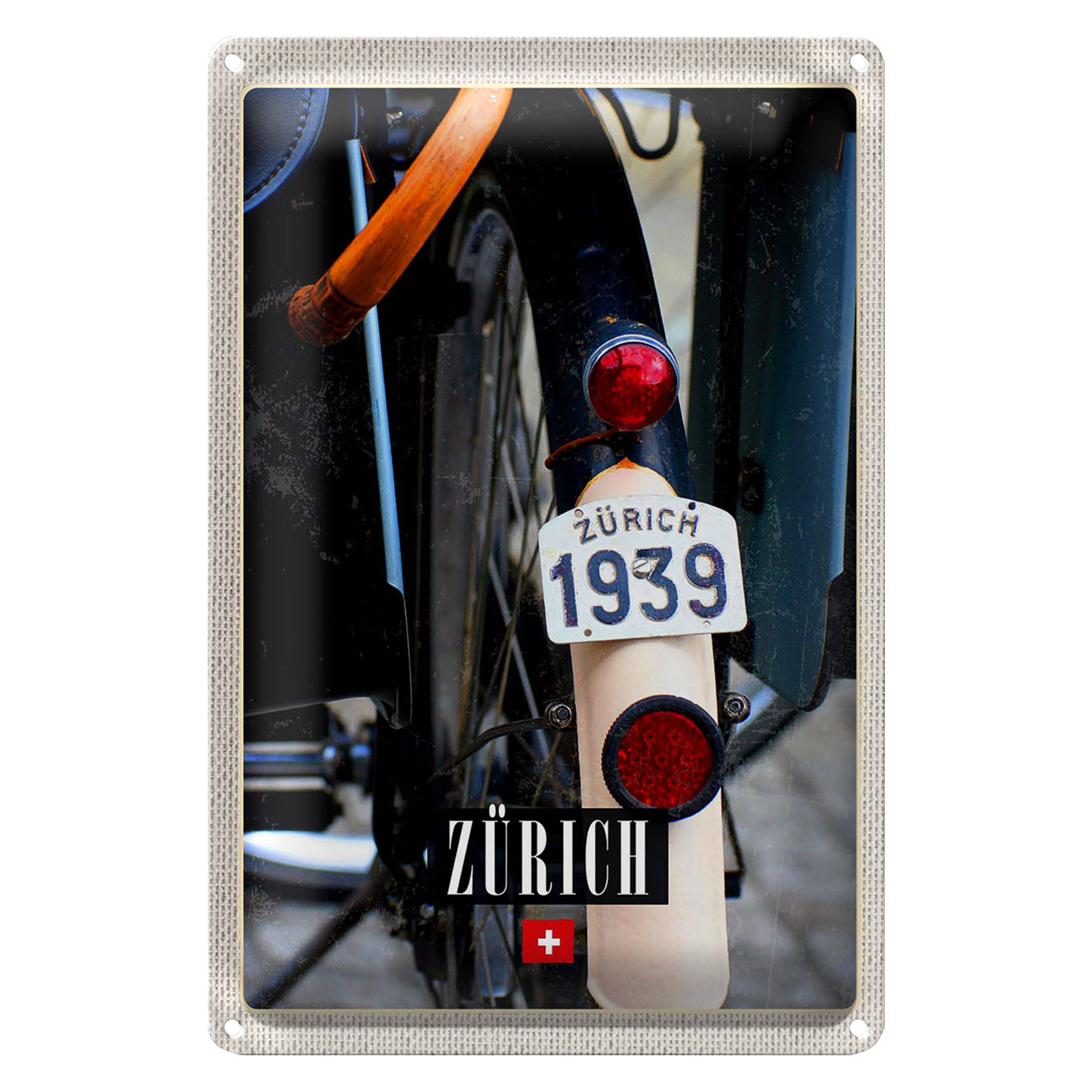 Blechschild Reise 20x30cm Zürich Fahrrad 1939 Europa