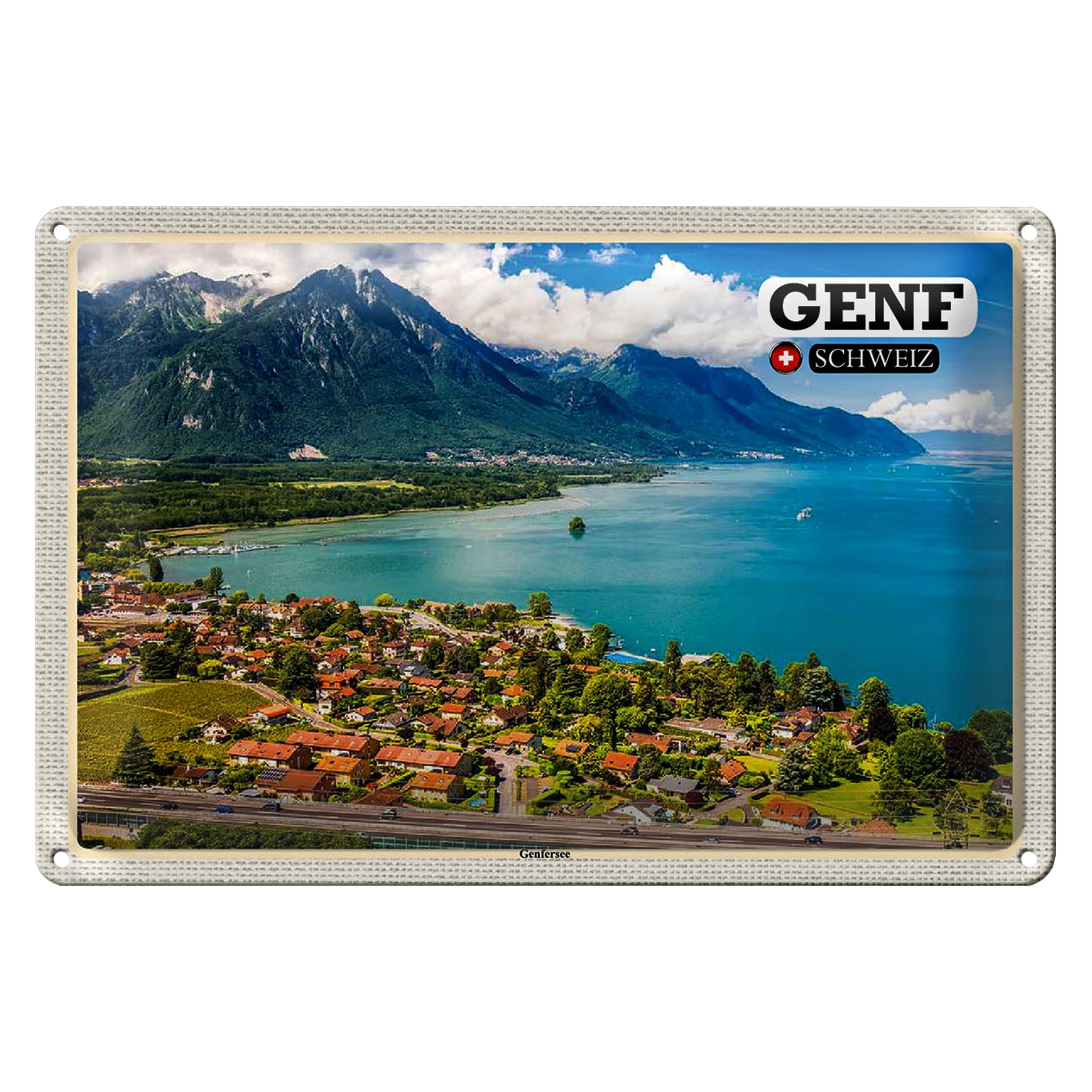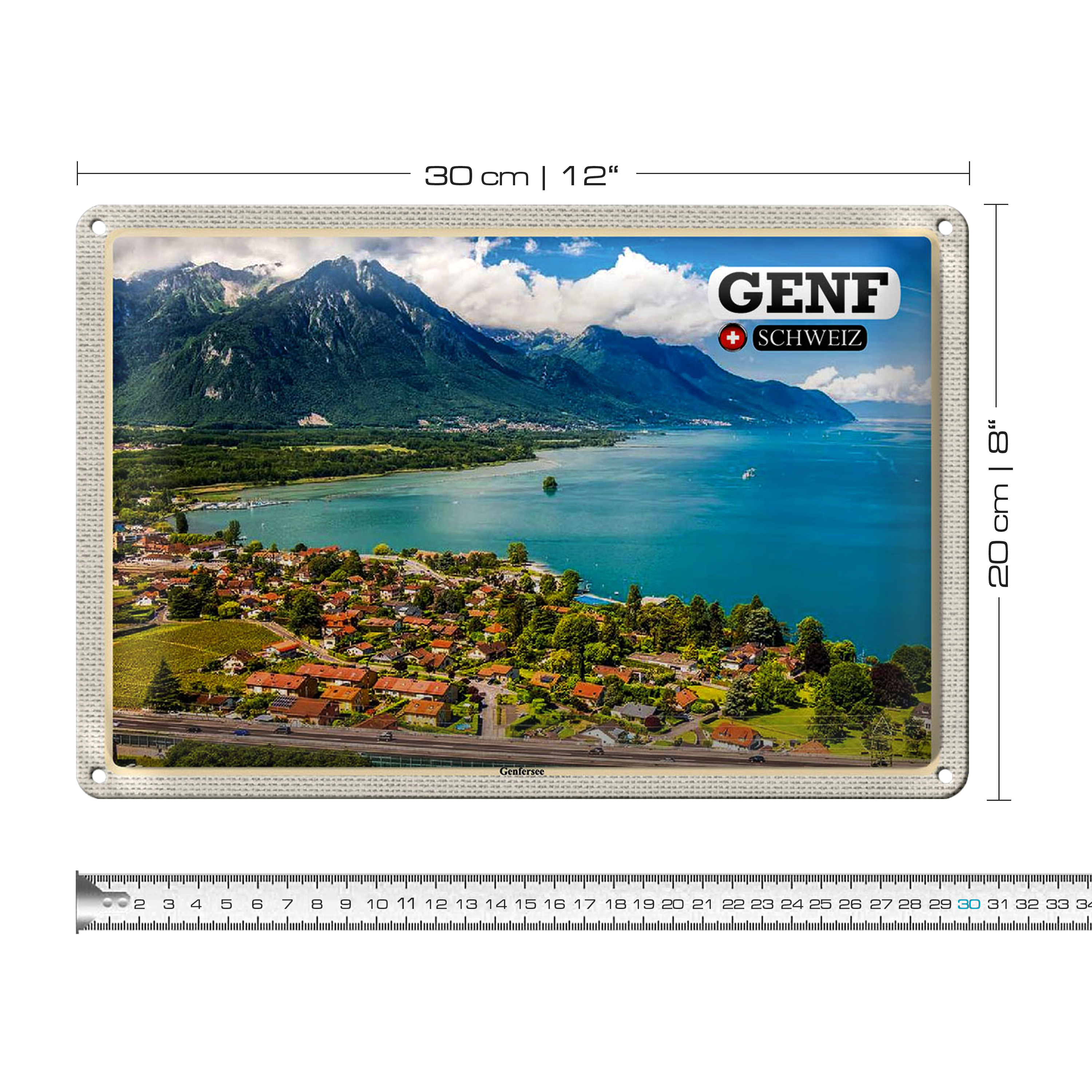 Blechschild Reise Genf Schweiz Genfersee Natur 30x20cm