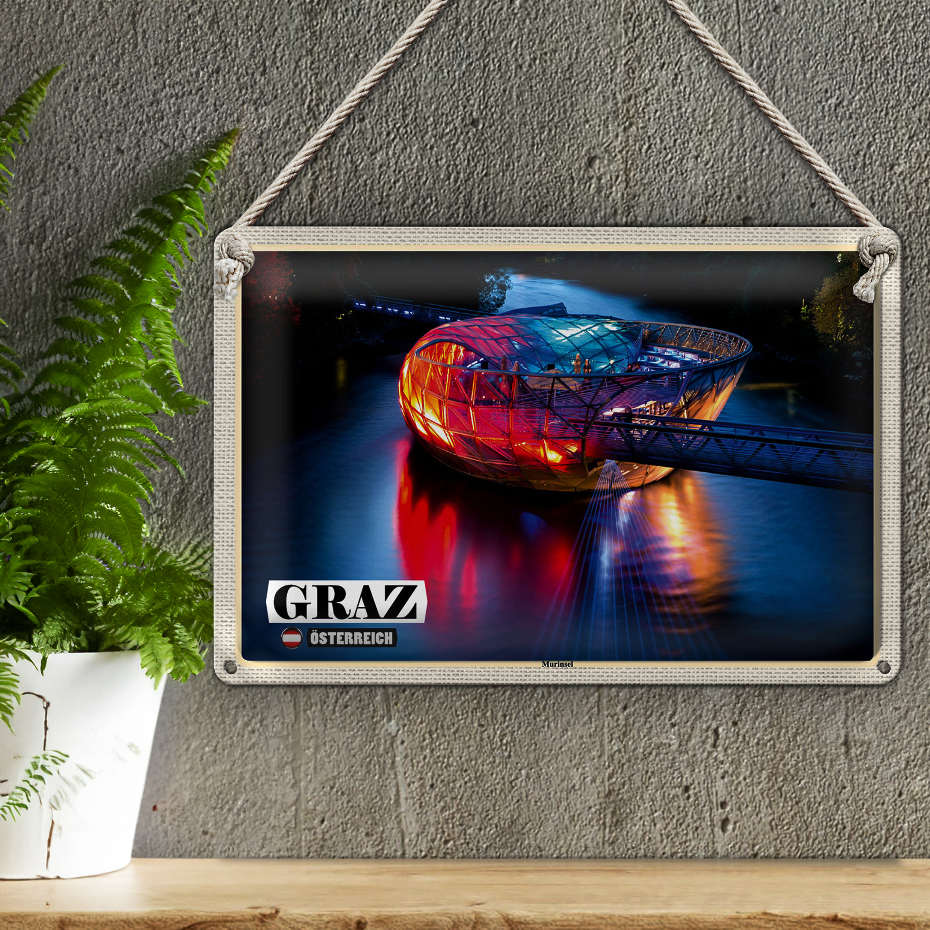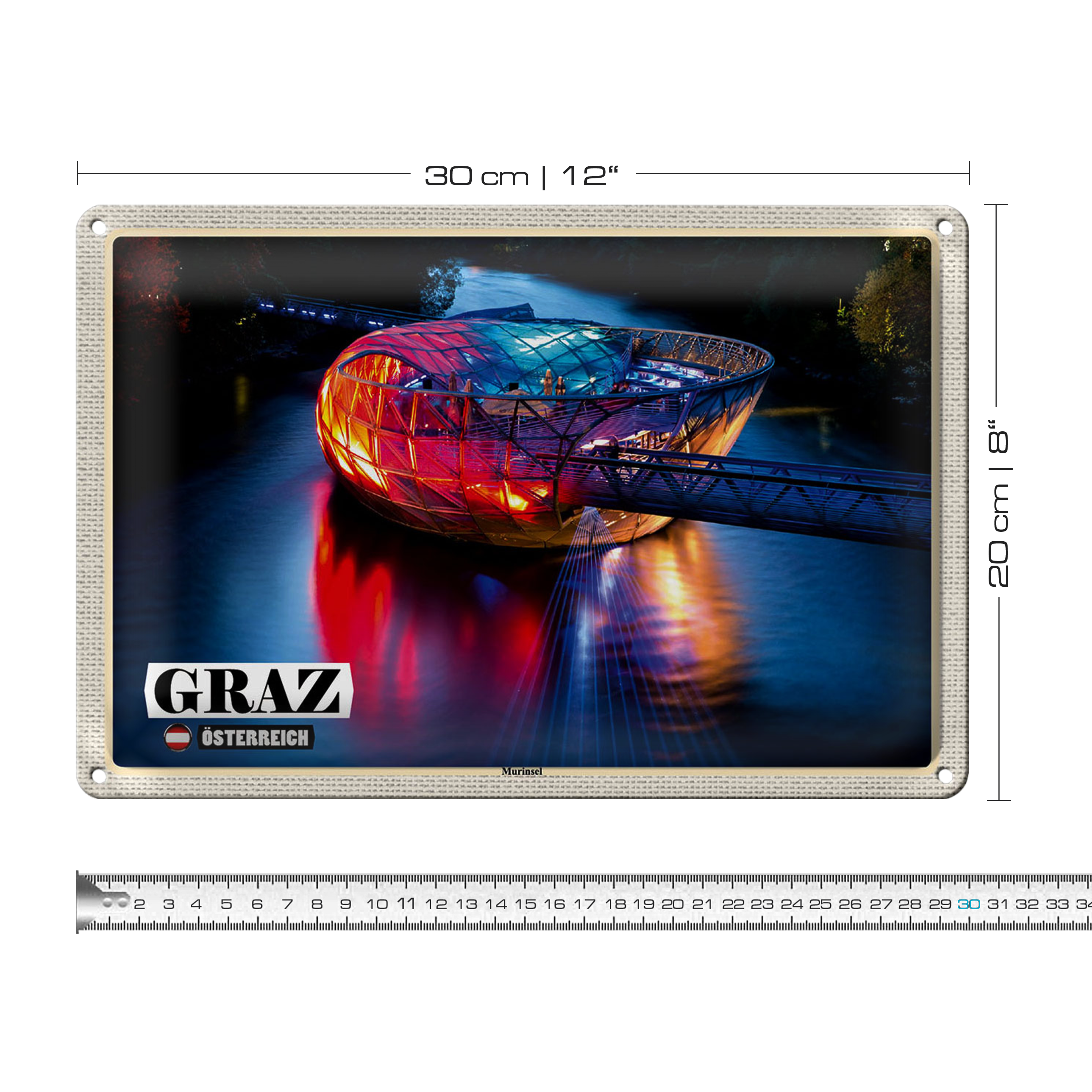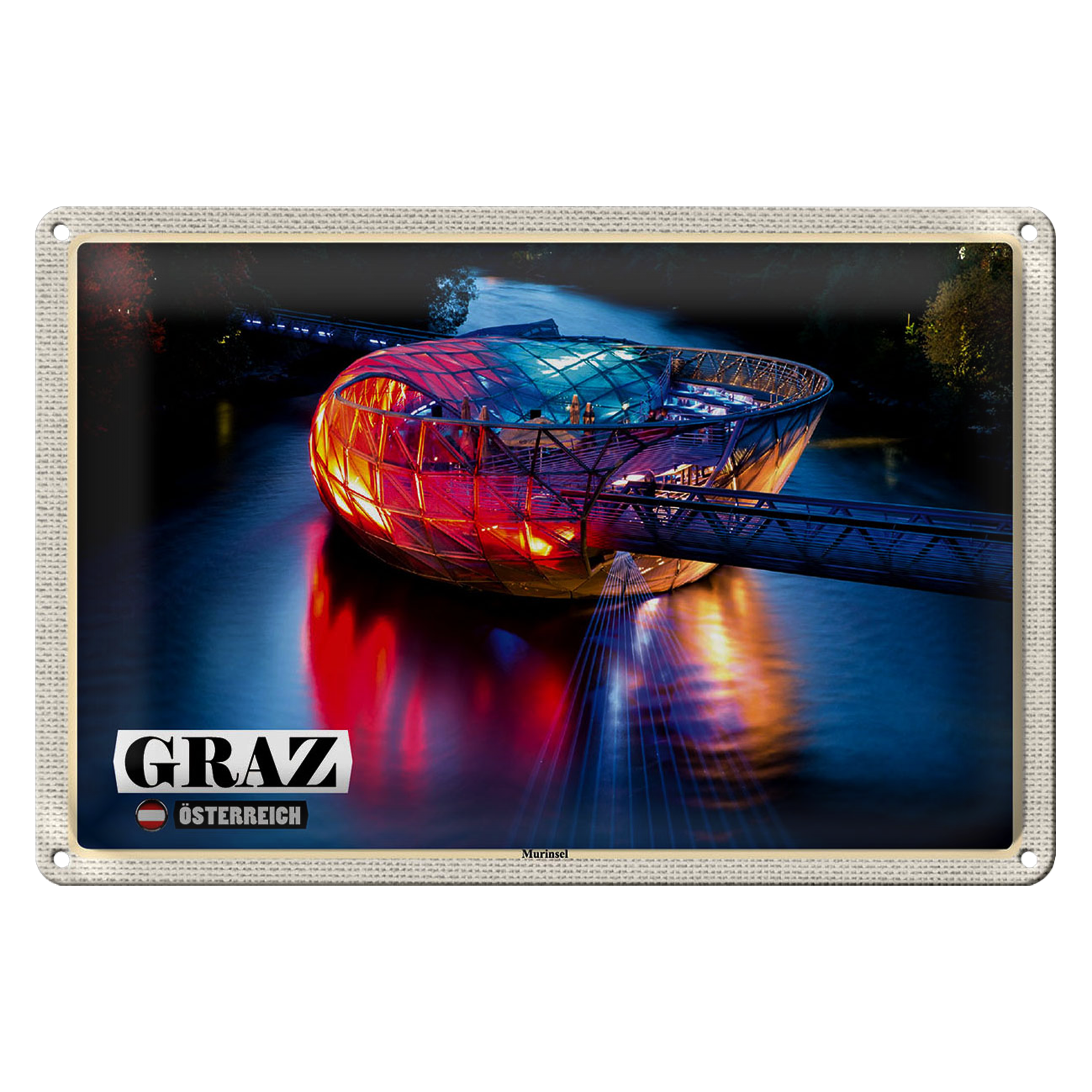 Blechschild Reise Graz Österreich Murinsel See 30x20cm