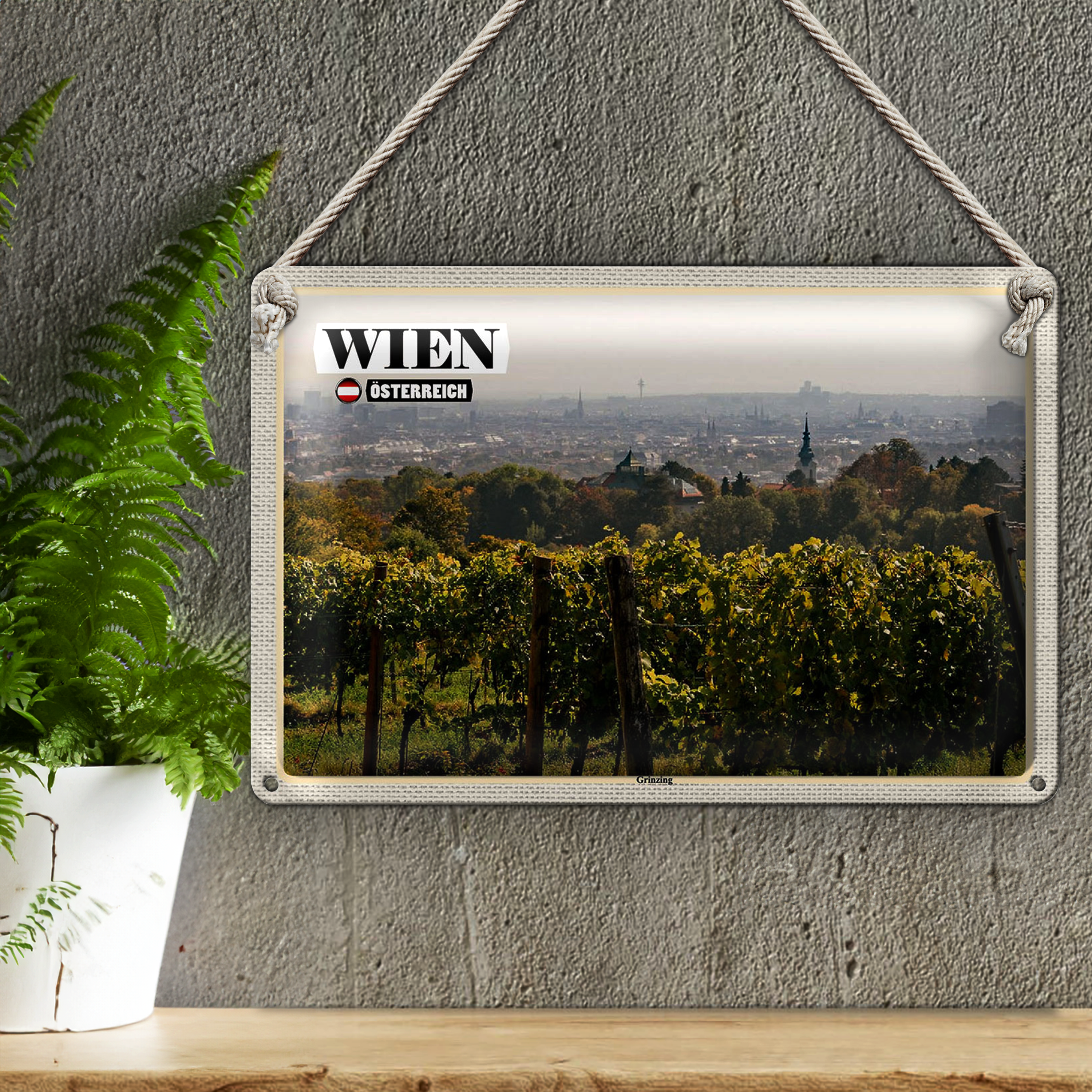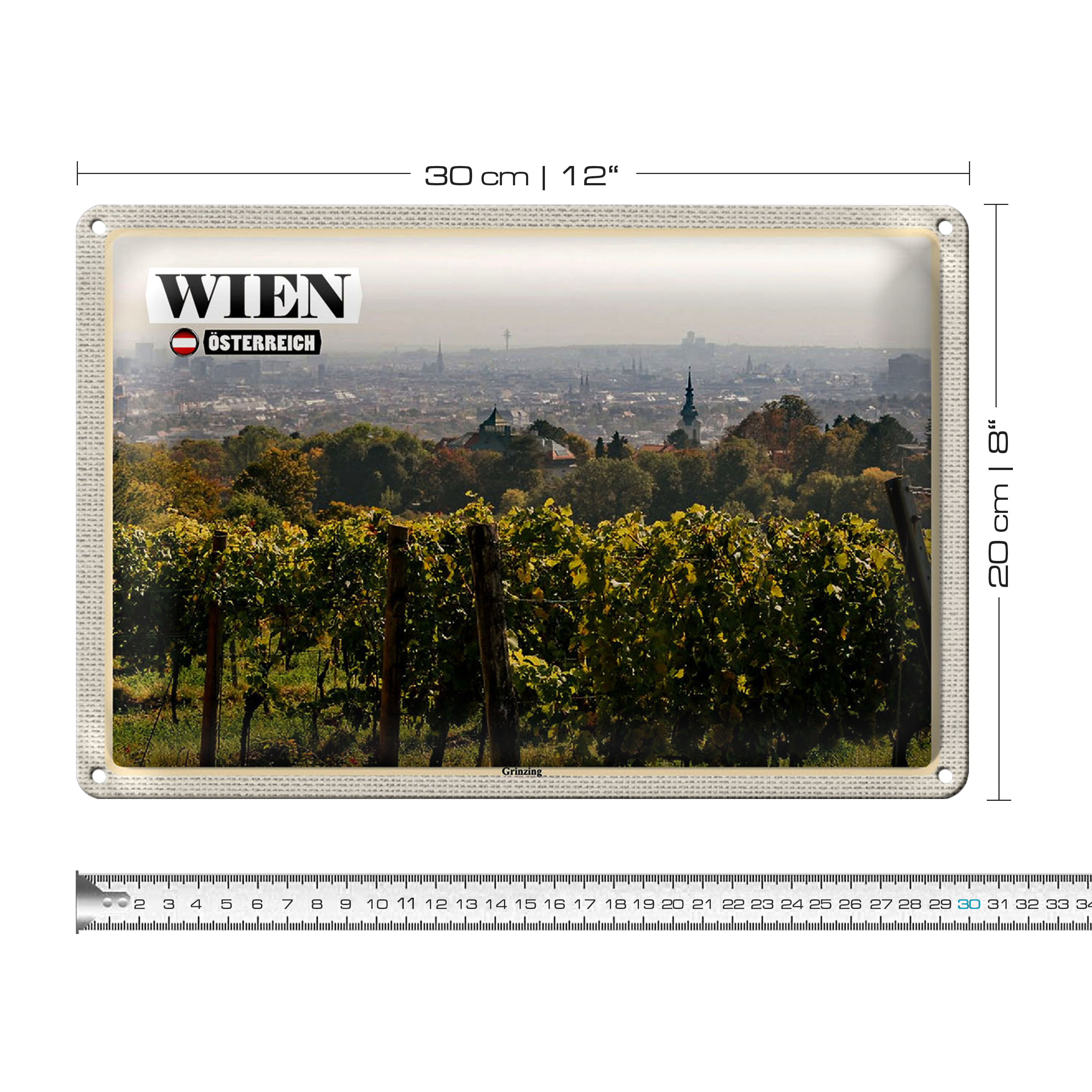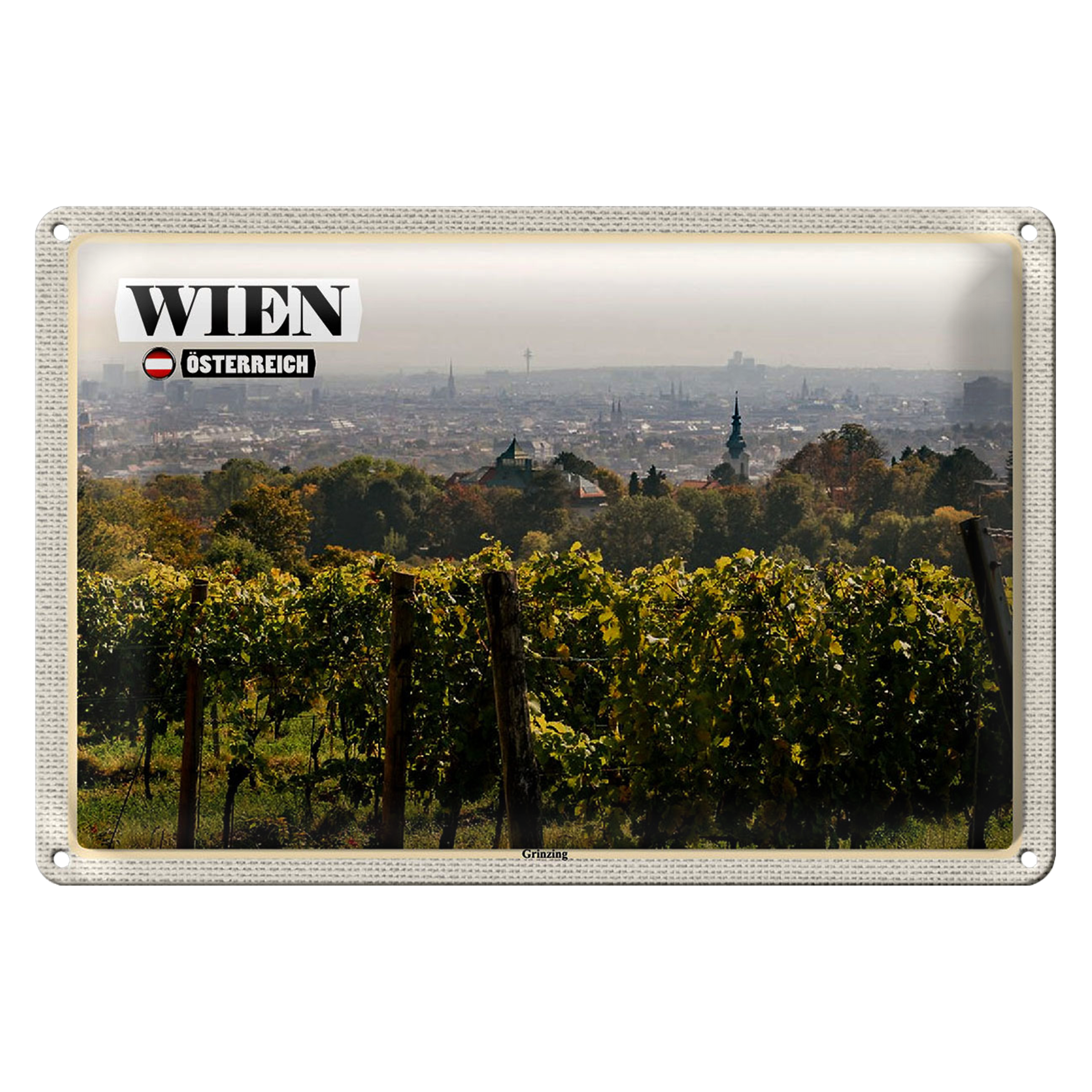 Blechschild Reise Wien Österreich Grinzing Weinfelder 30x20cm