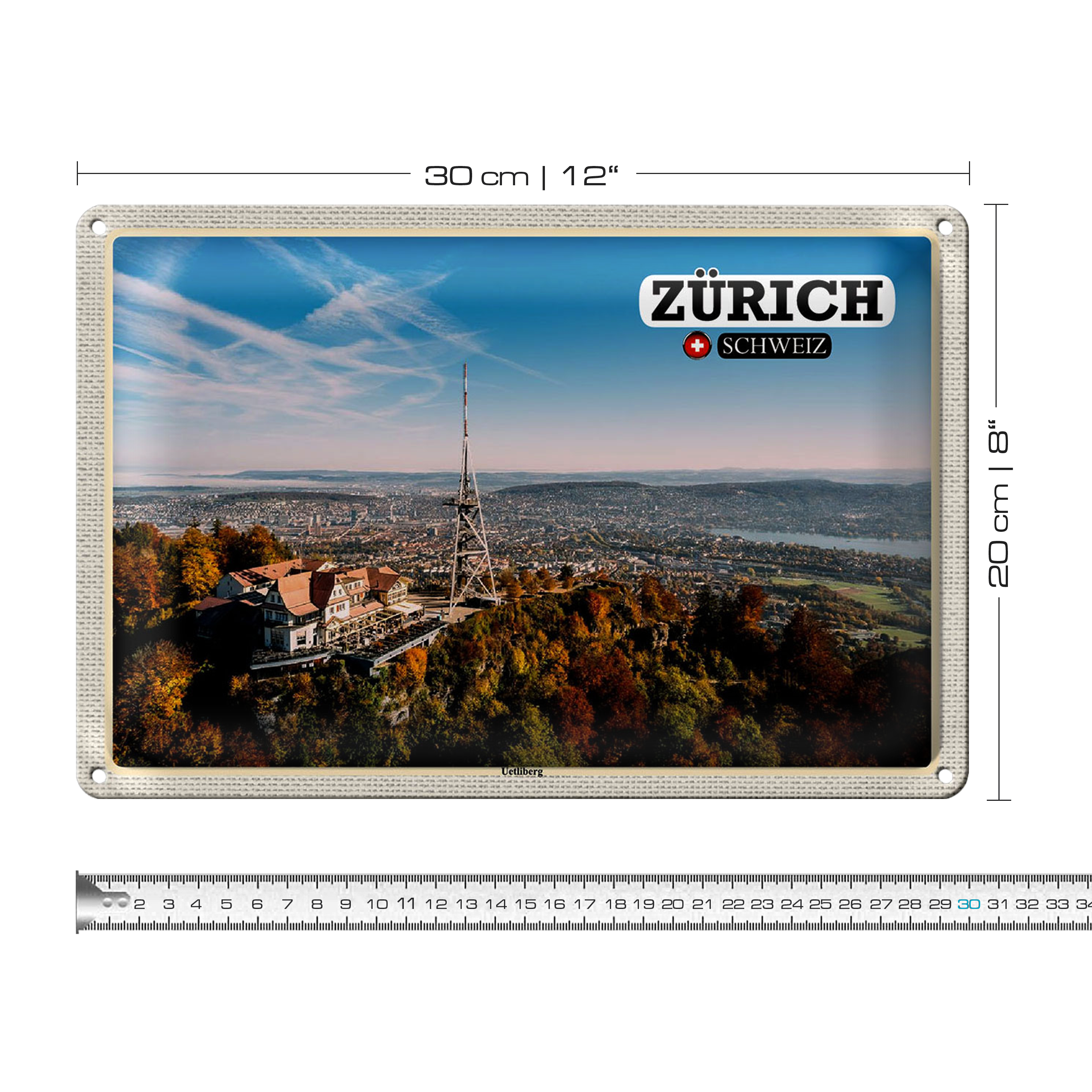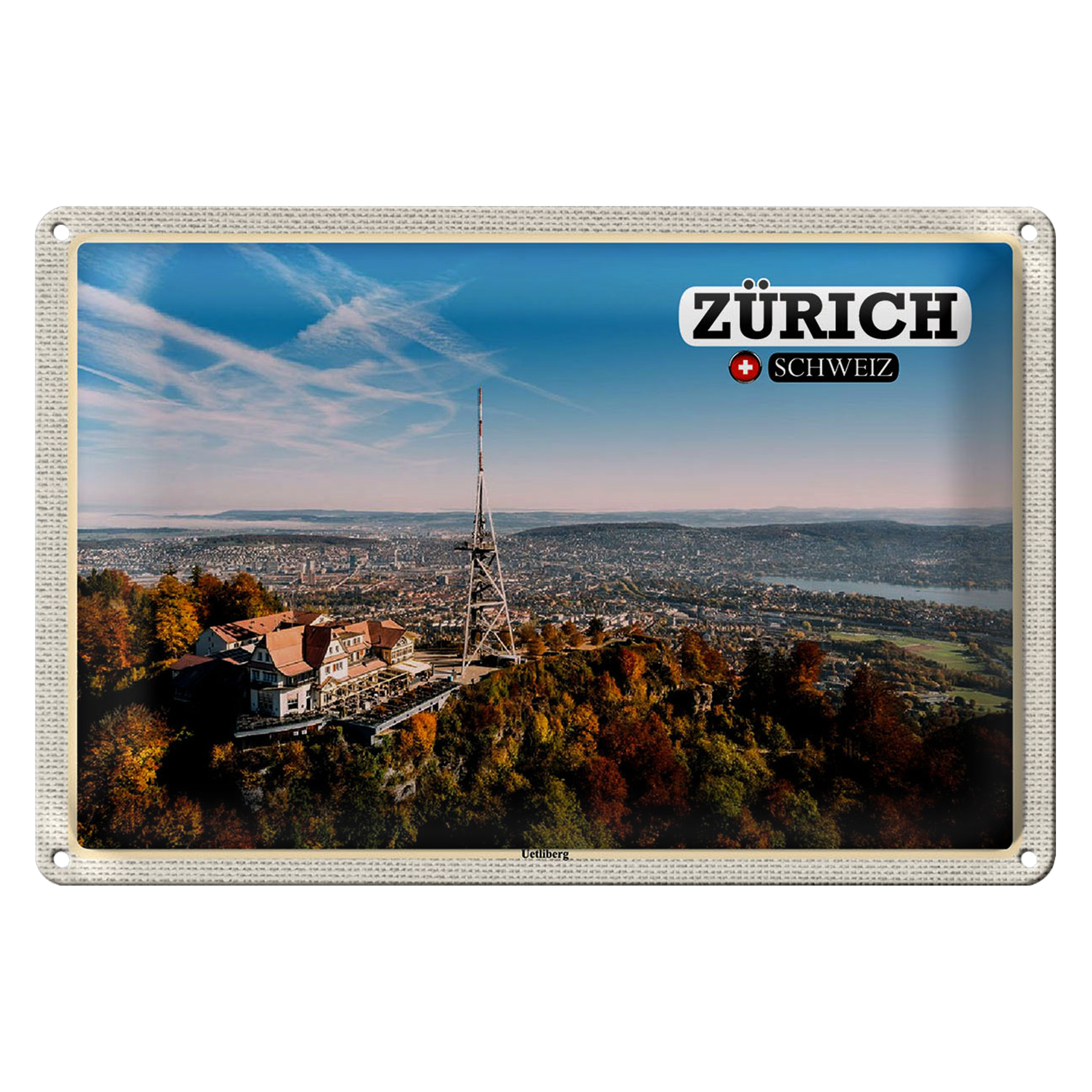 Blechschild Reise Zürich Schweiz Uetliberg Stadt 30x20cm