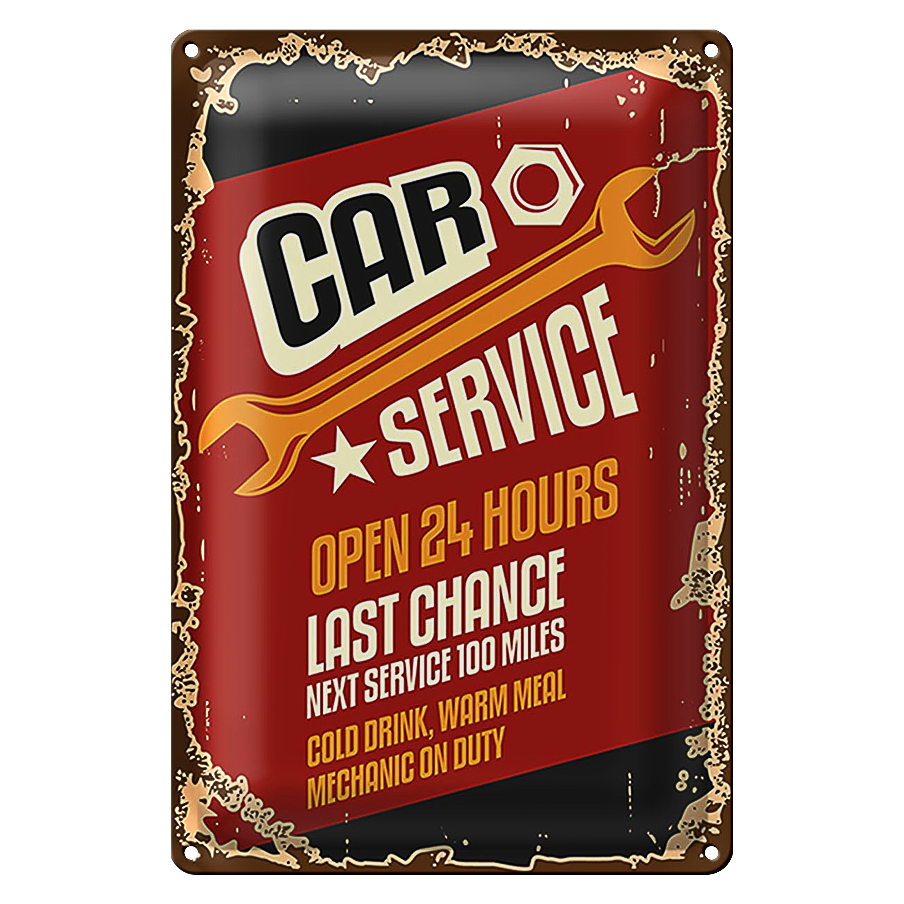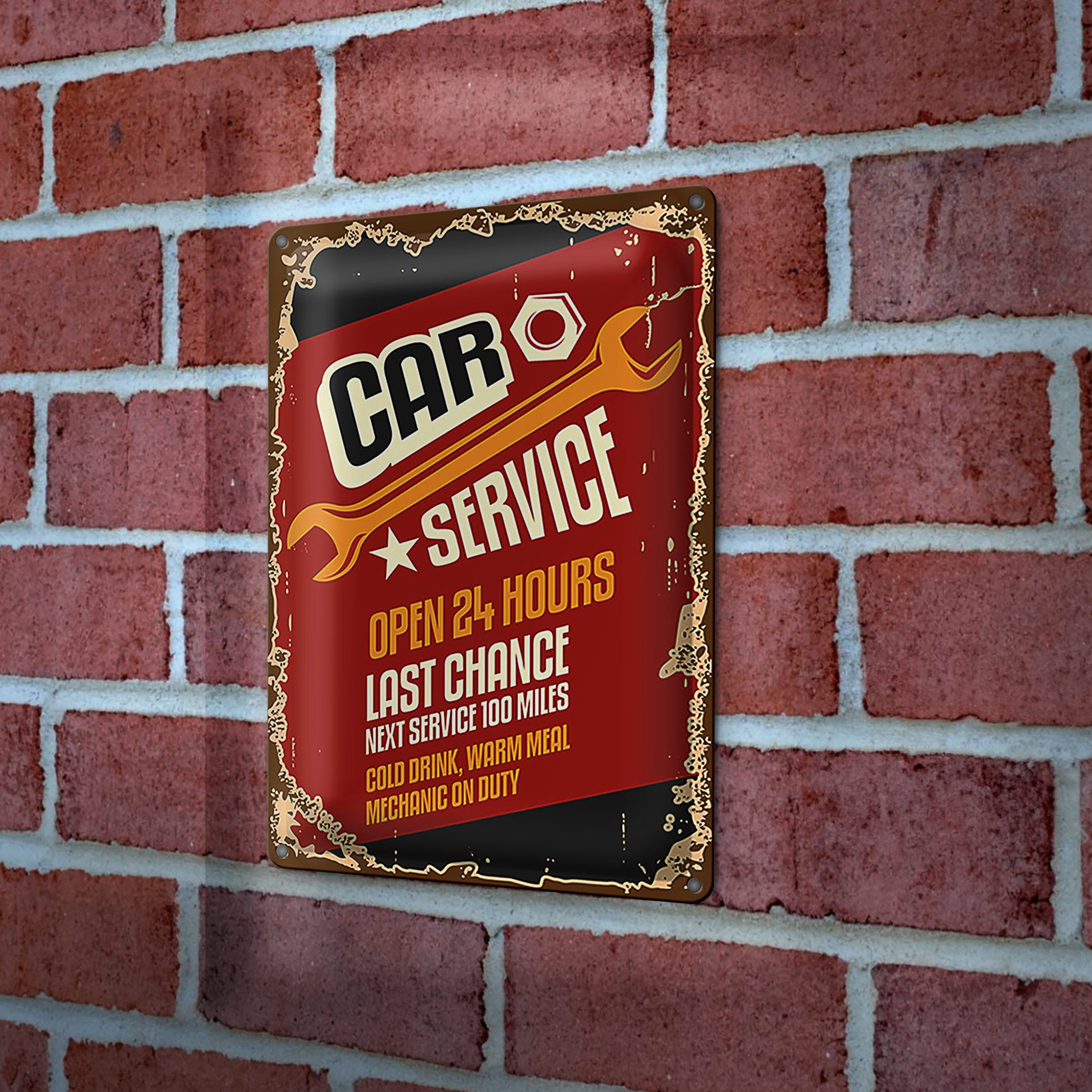 Blechschild Retro 20x30cm Car Service open 24 hours Auto