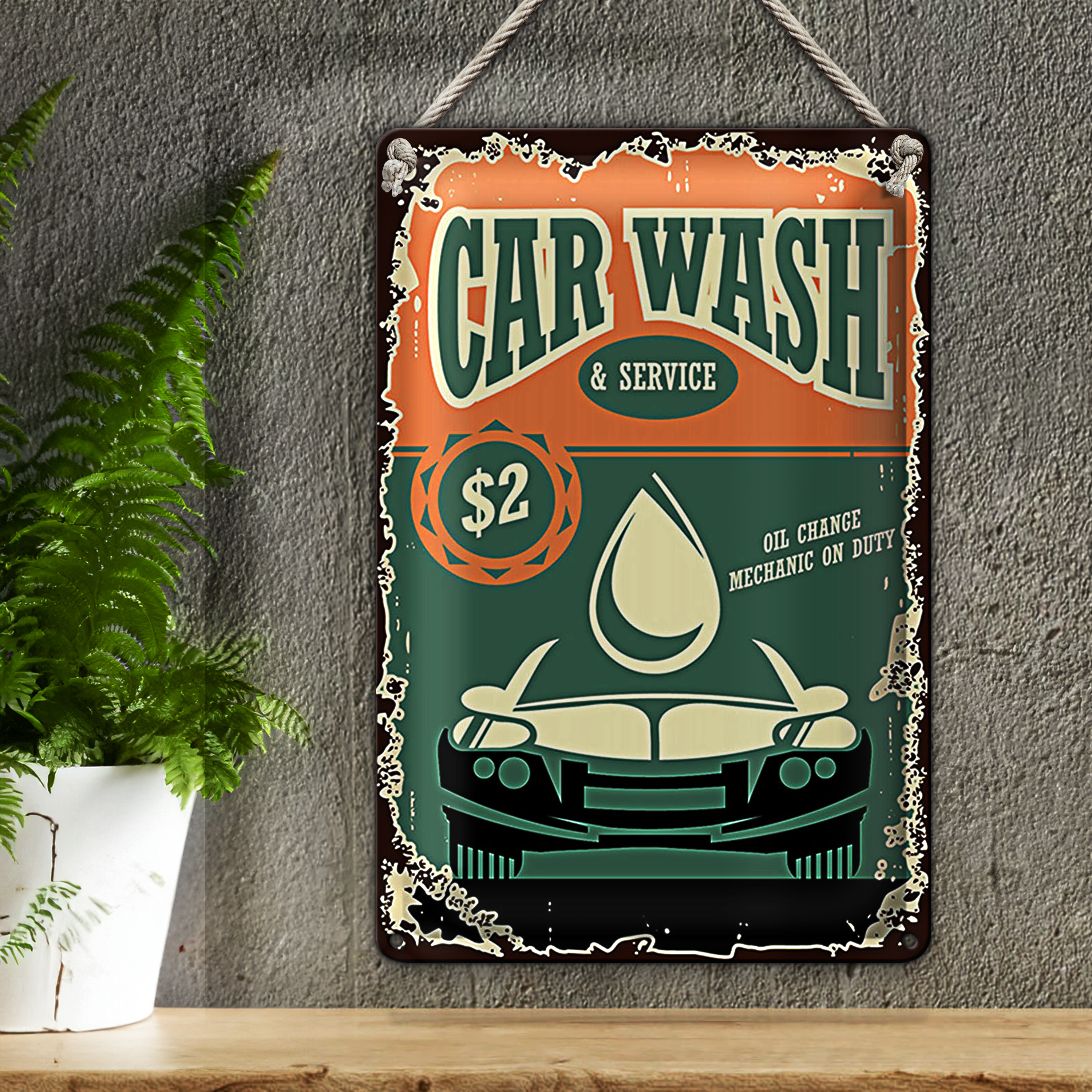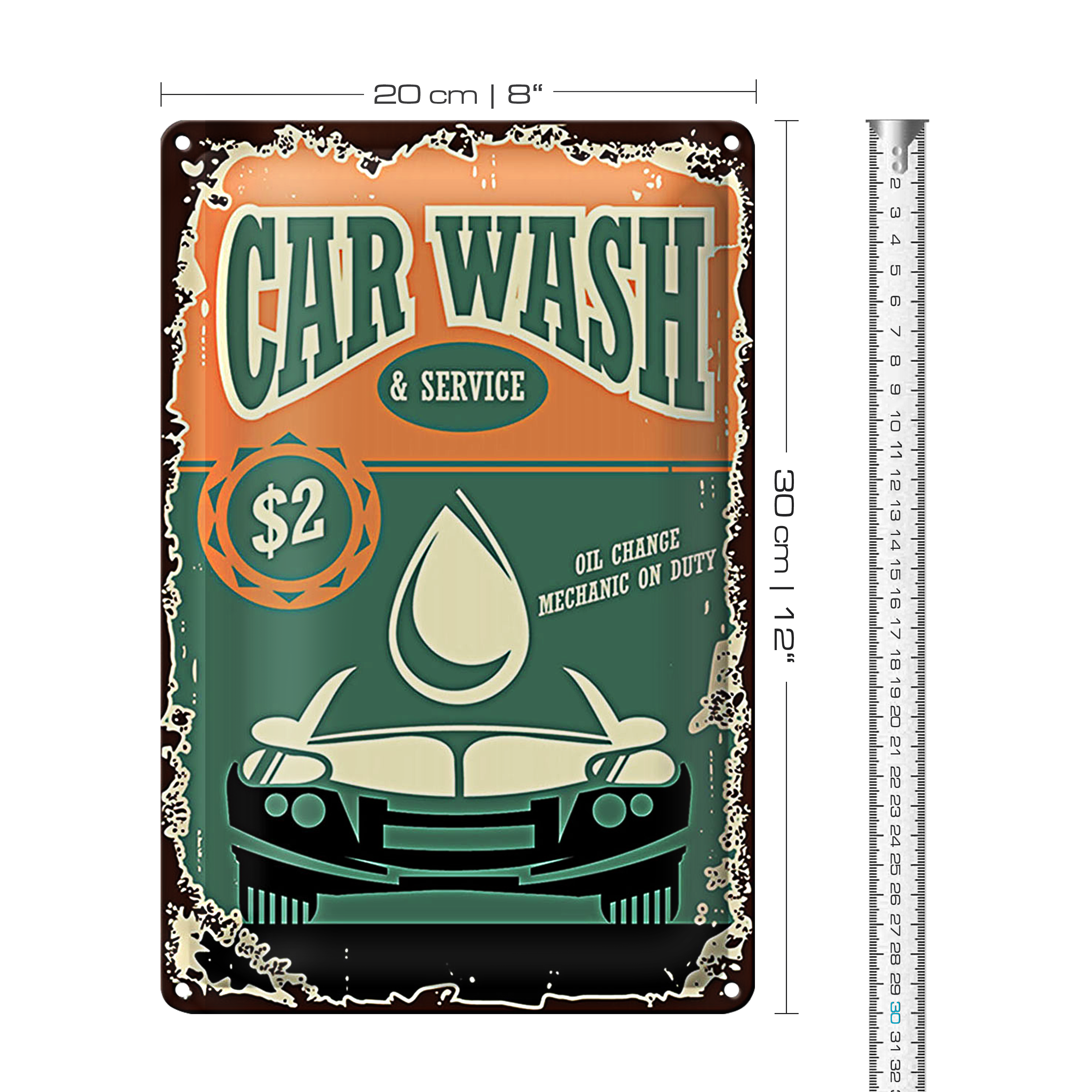 Blechschild Retro 20x30cm Car Wash Service mechanic on duty