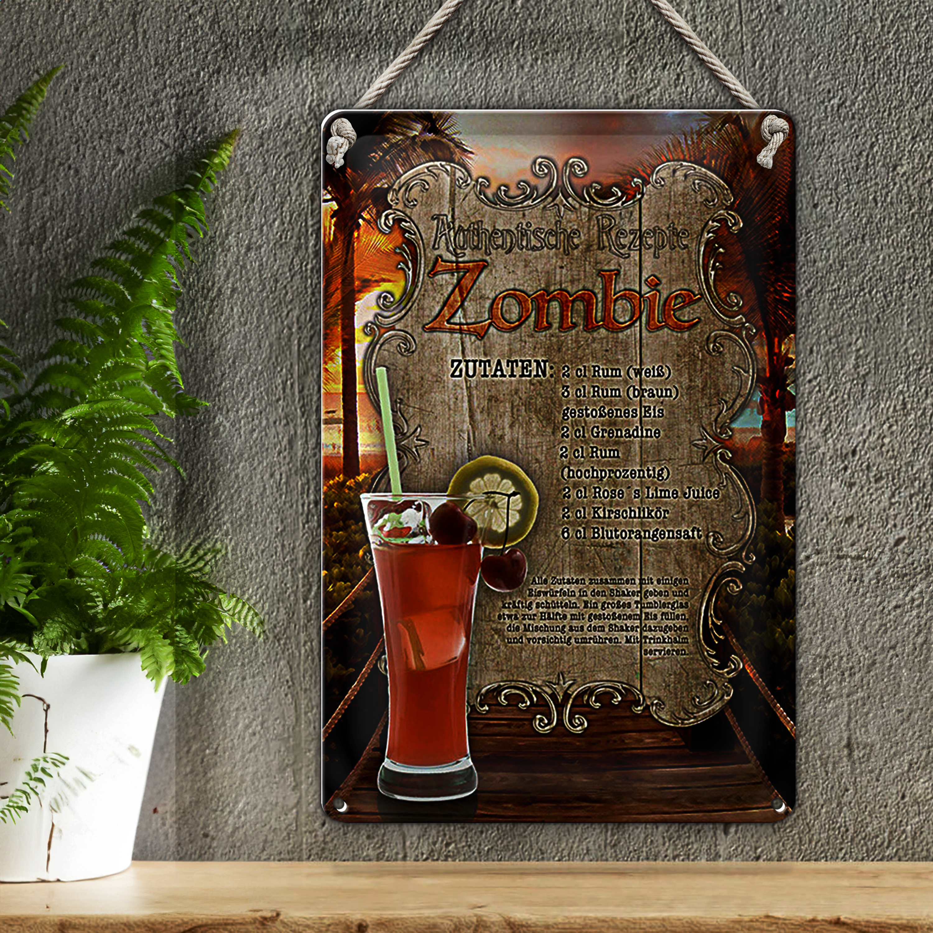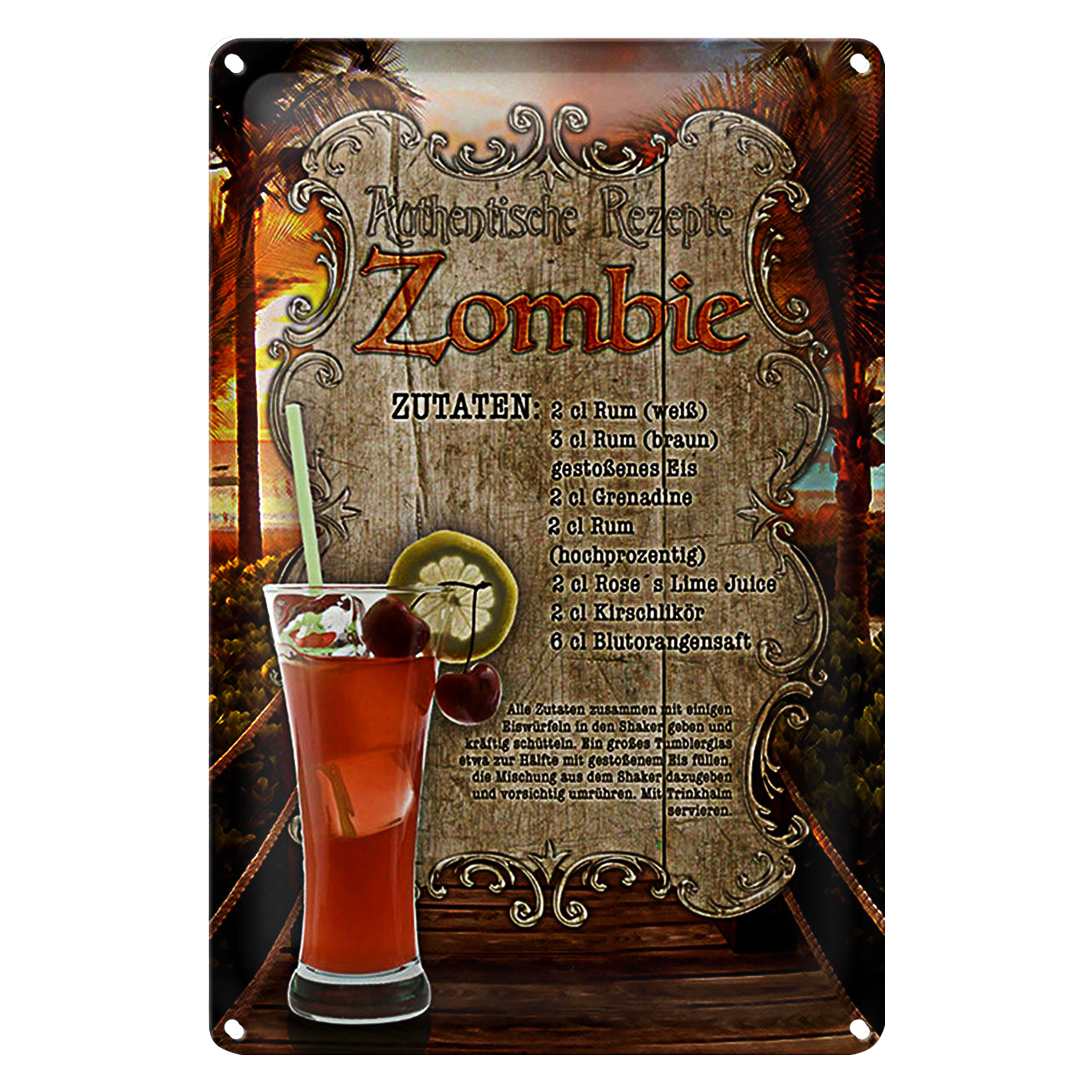 Blechschild Rezept 20x30cm Zombie Zutaten Rum Grenadine