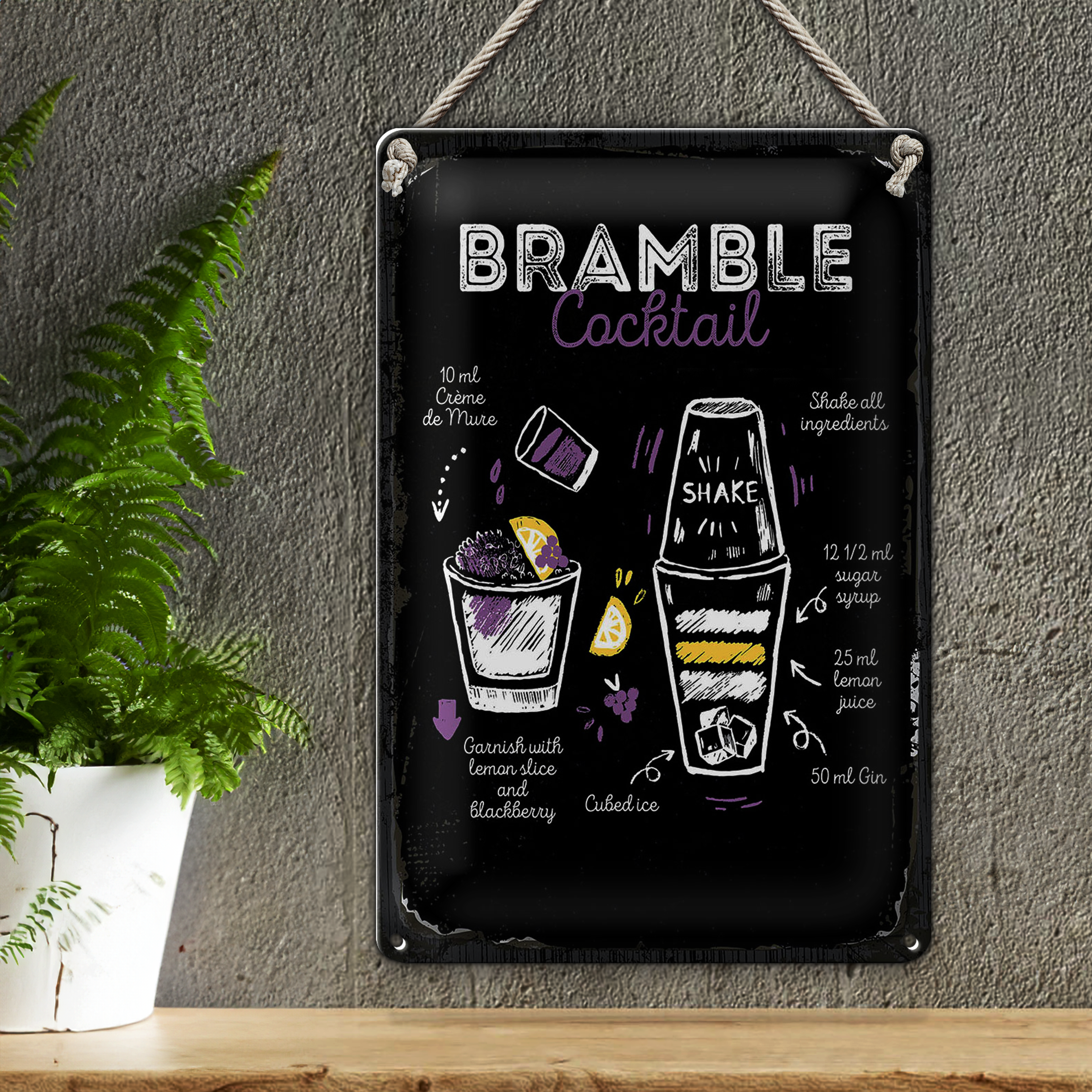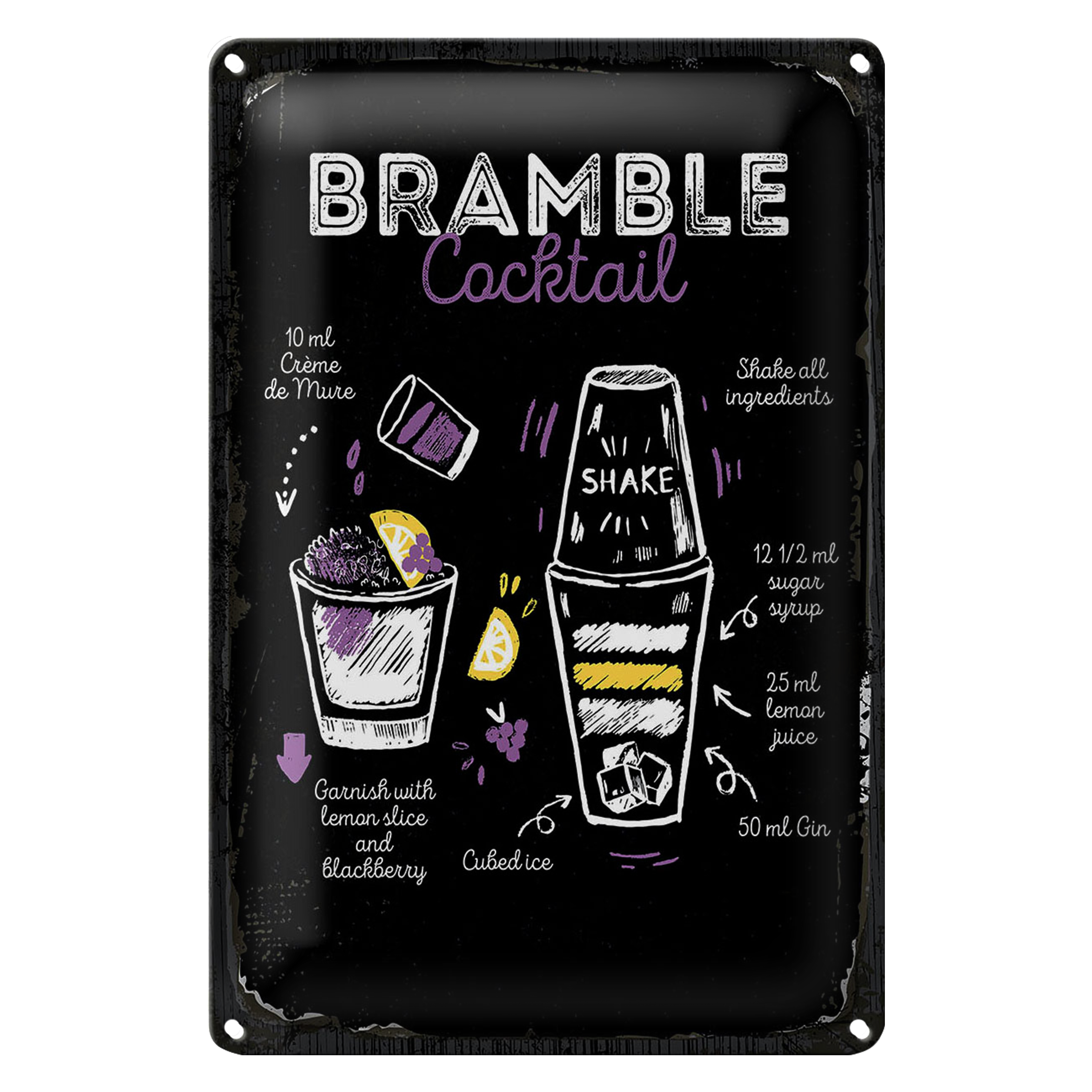 Blechschild Rezept Bramble Cocktail Recipe 20x30cm