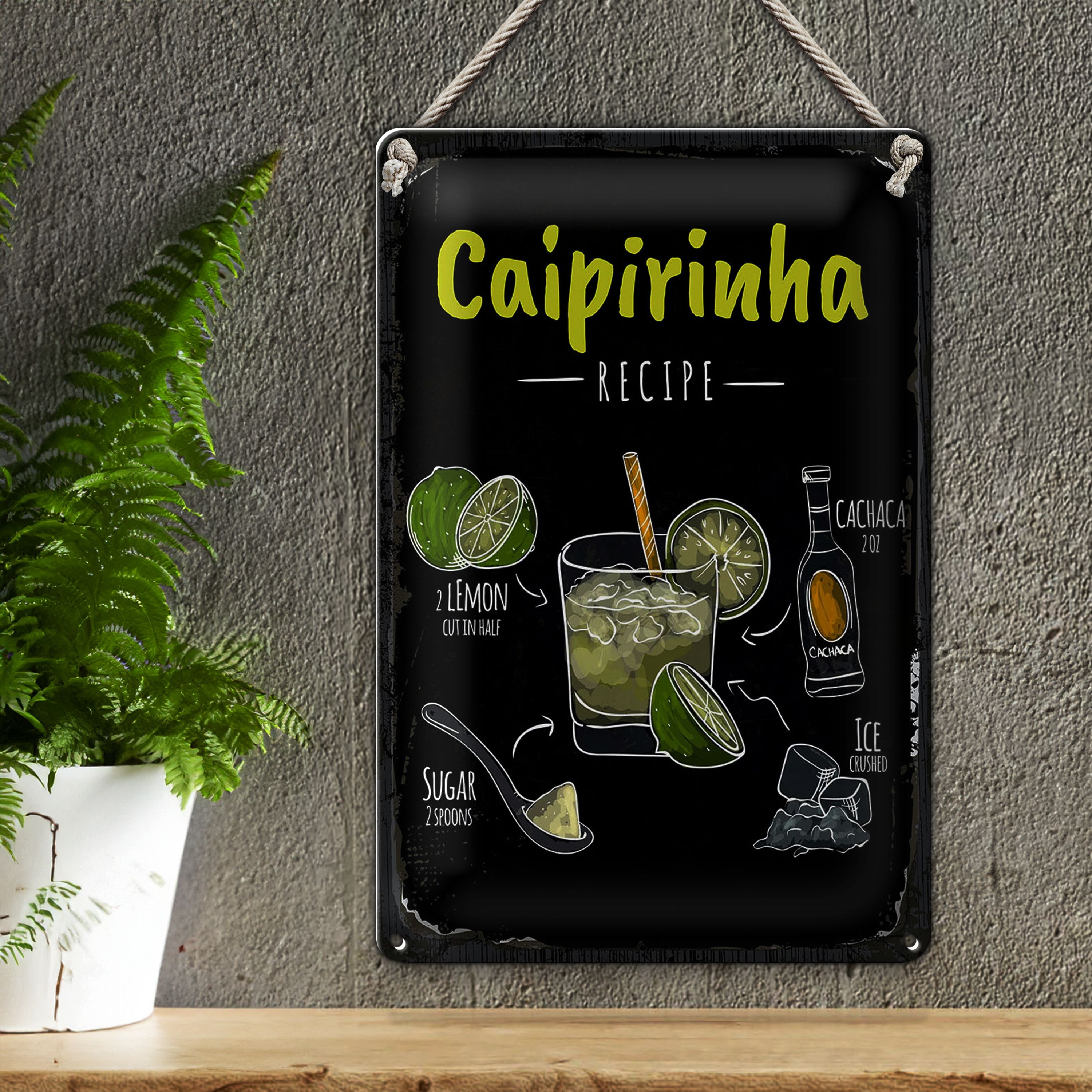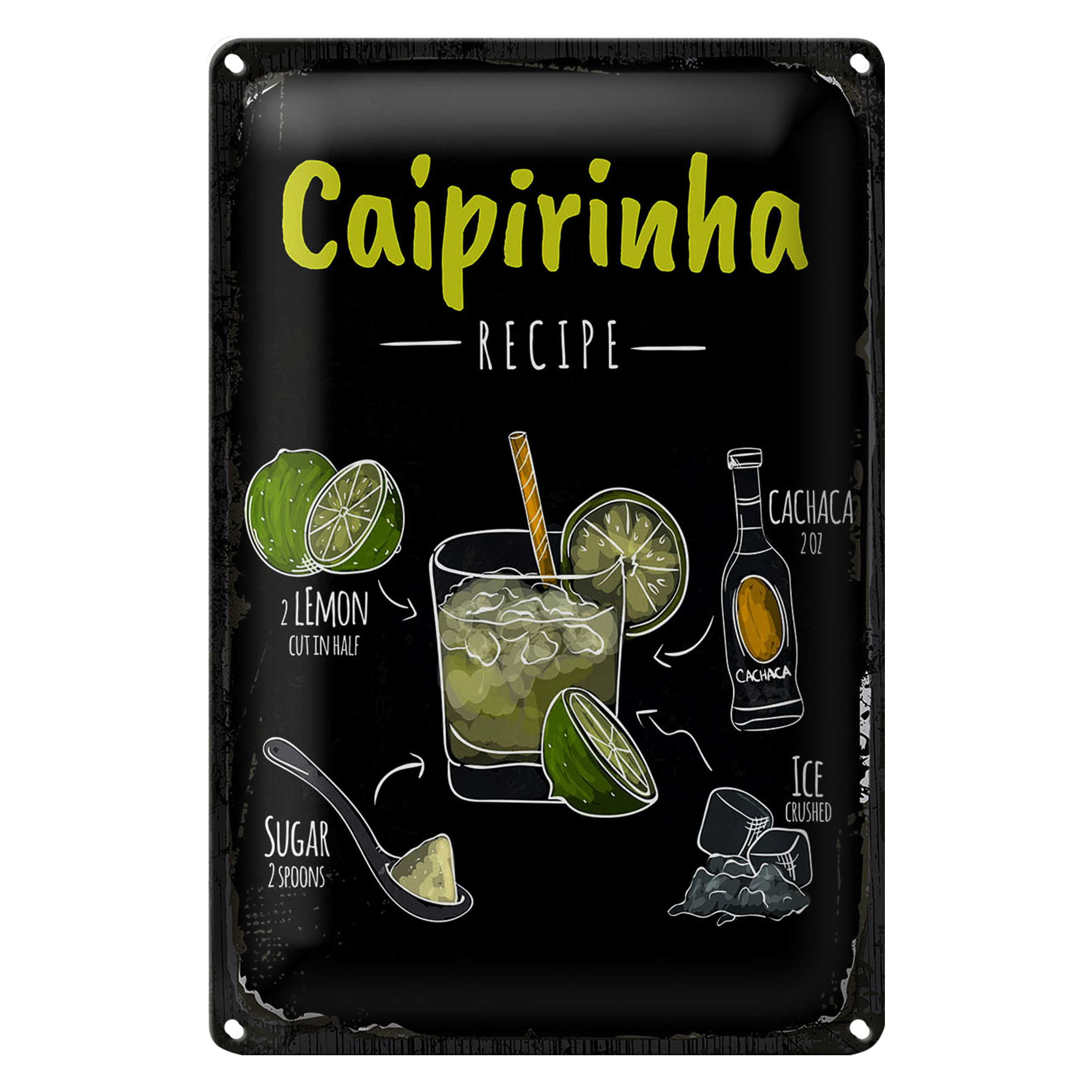 Blechschild Rezept Caipirinha Cocktail Recipe 20x30cm