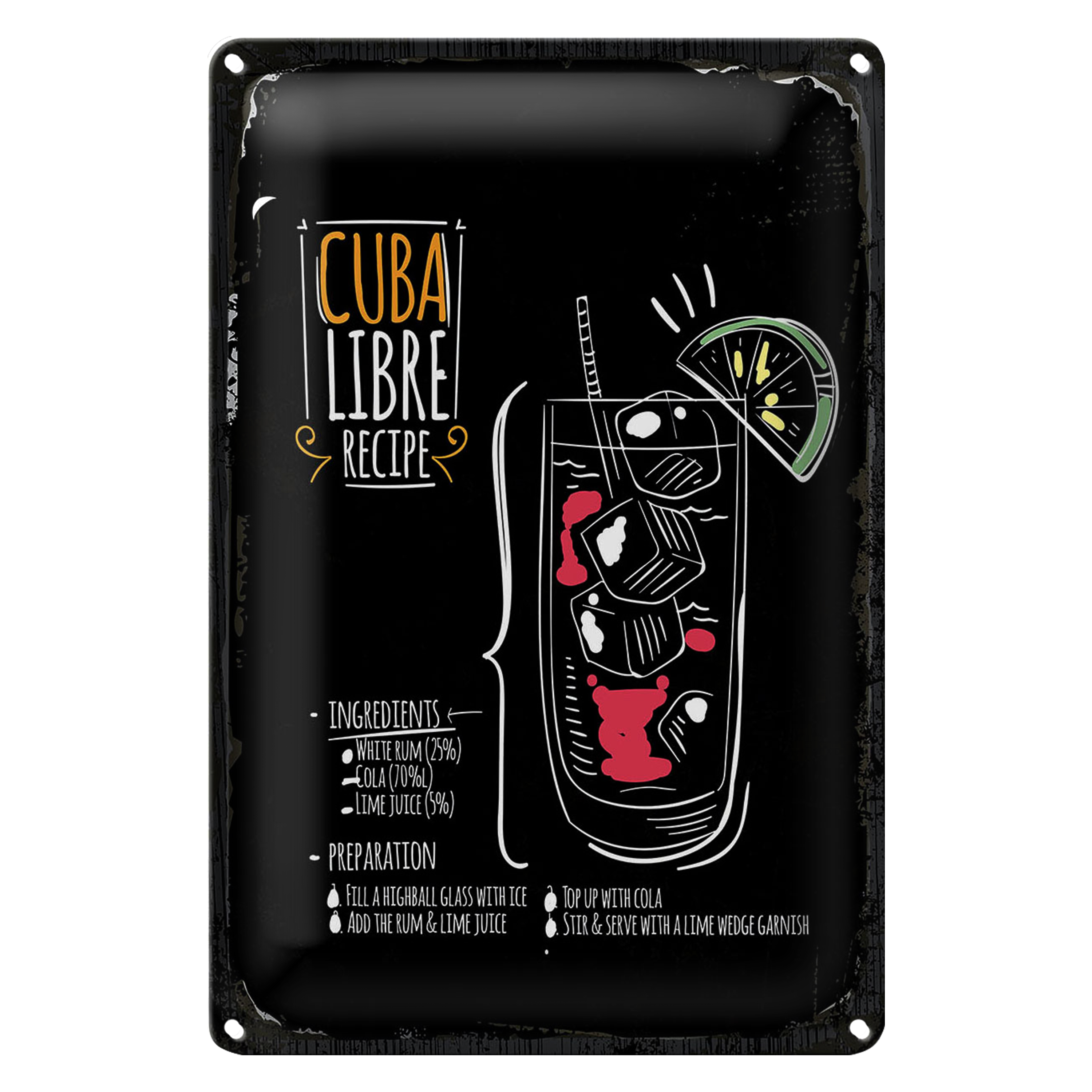 Blechschild Rezept Cuba Libre Cocktail Recipe 20x30cm