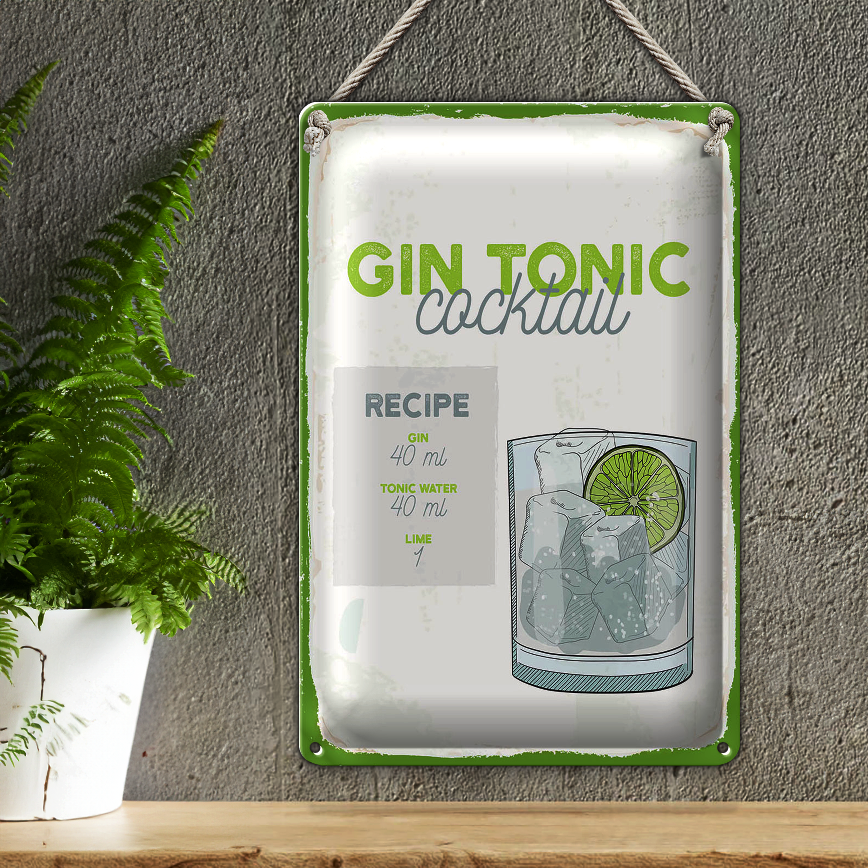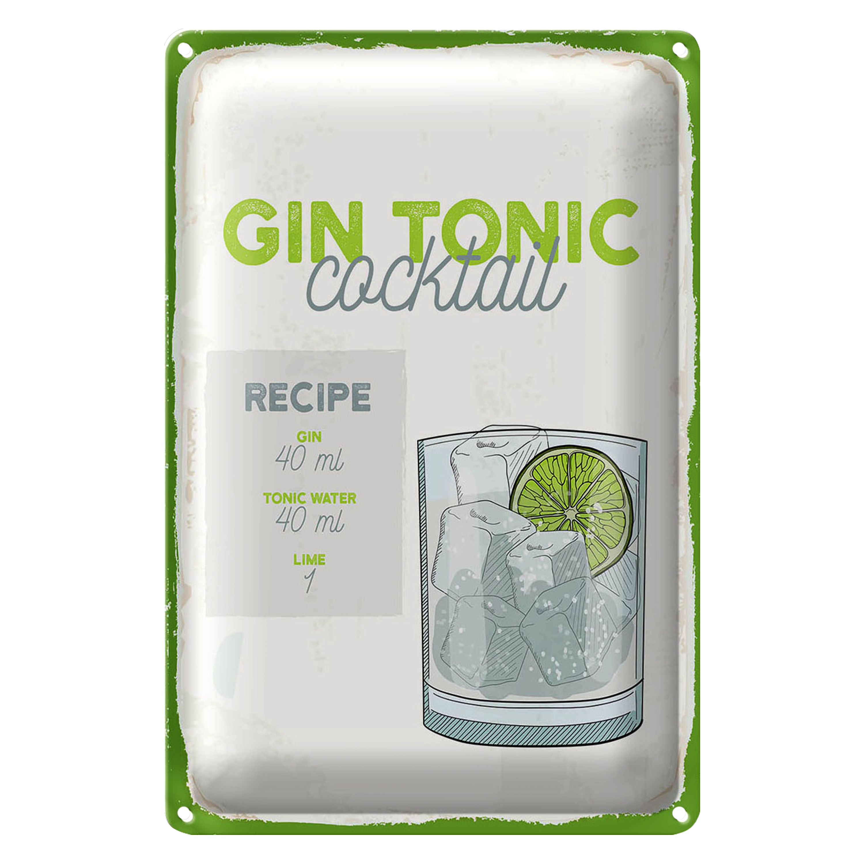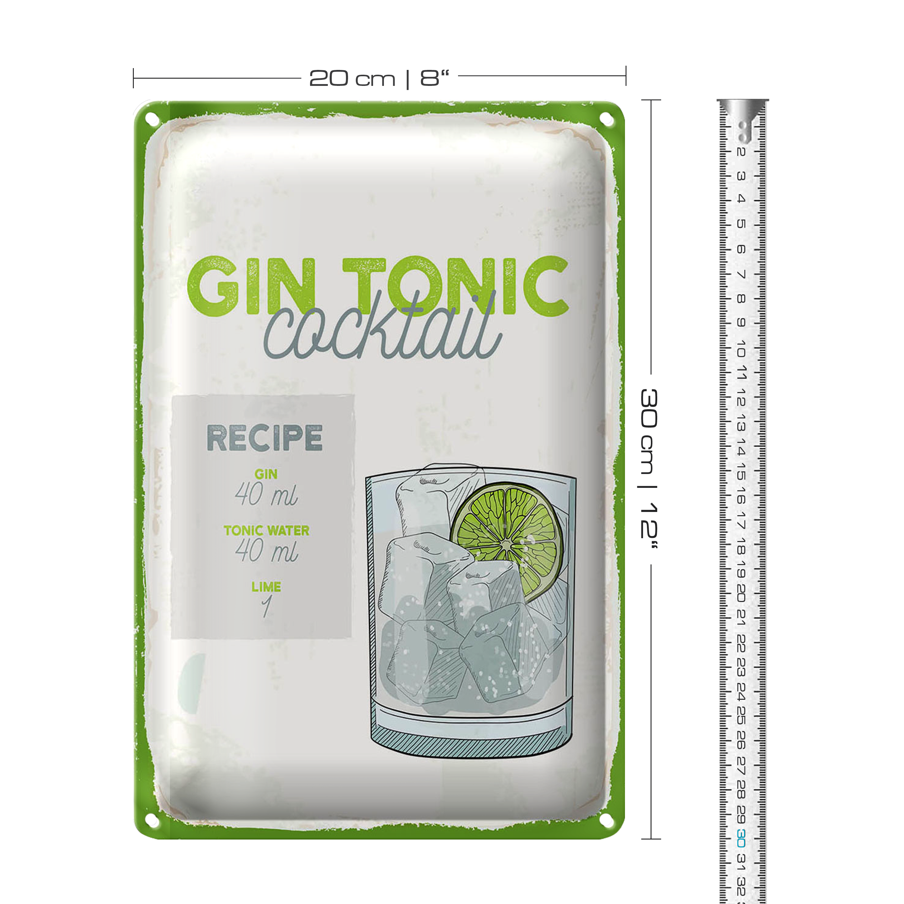 Blechschild Rezept Gin Tonic Cocktail Recipe 20x30cm