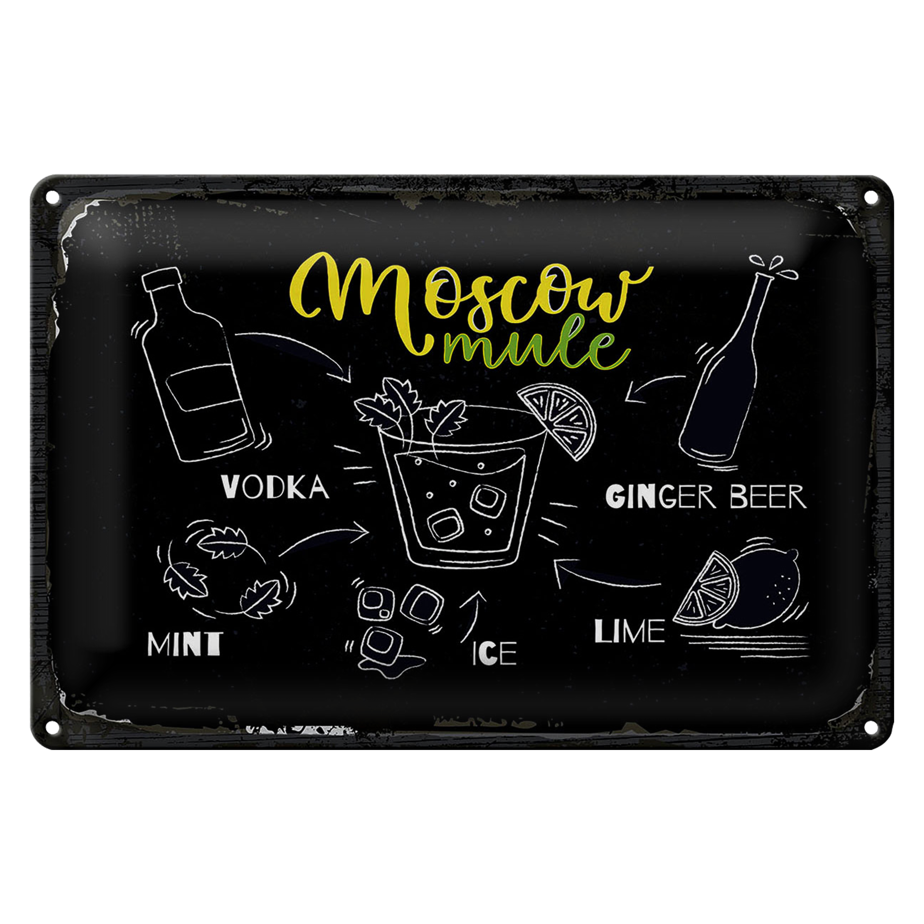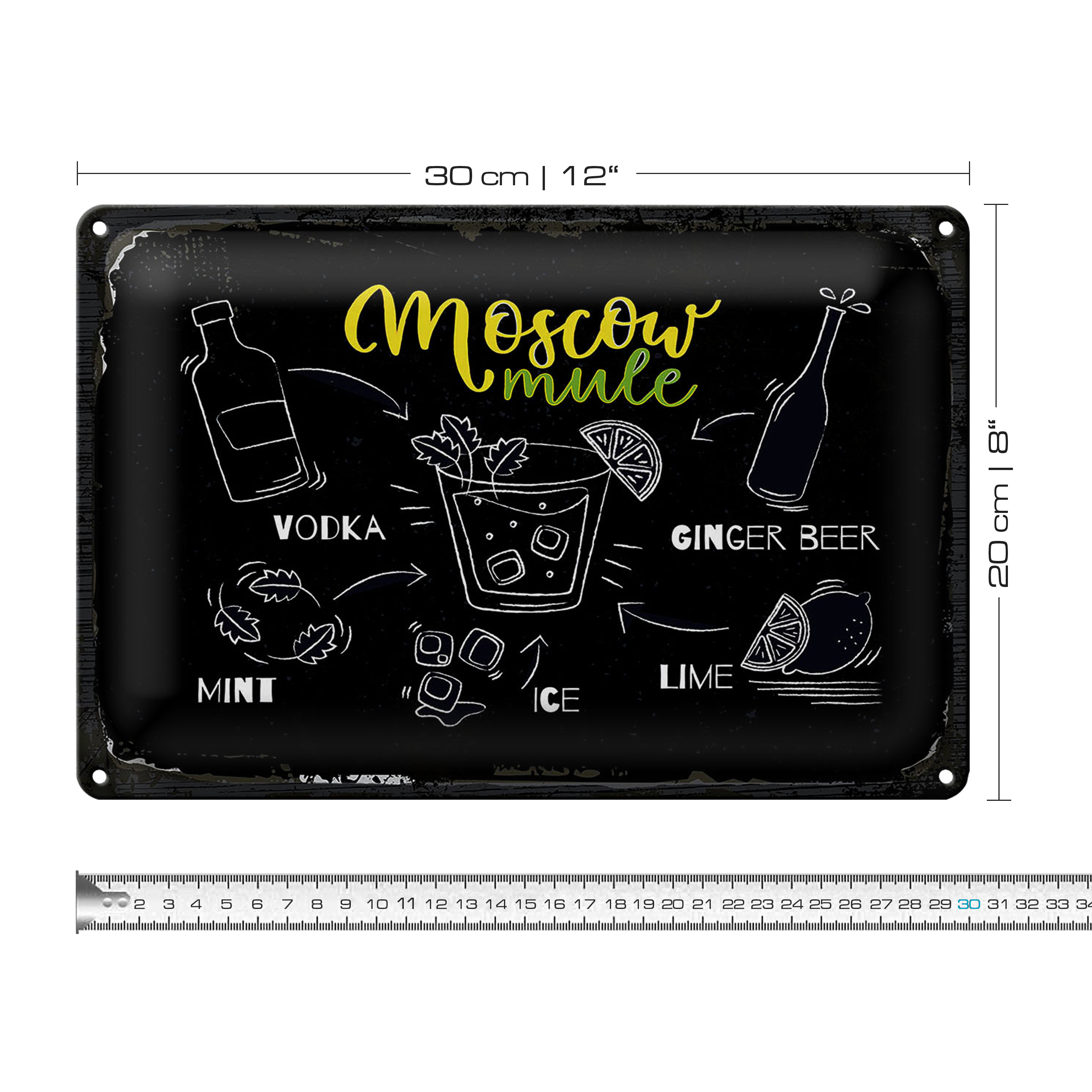 Blechschild Rezept Moscow Mule Ginger Beer Ice 30x20cm