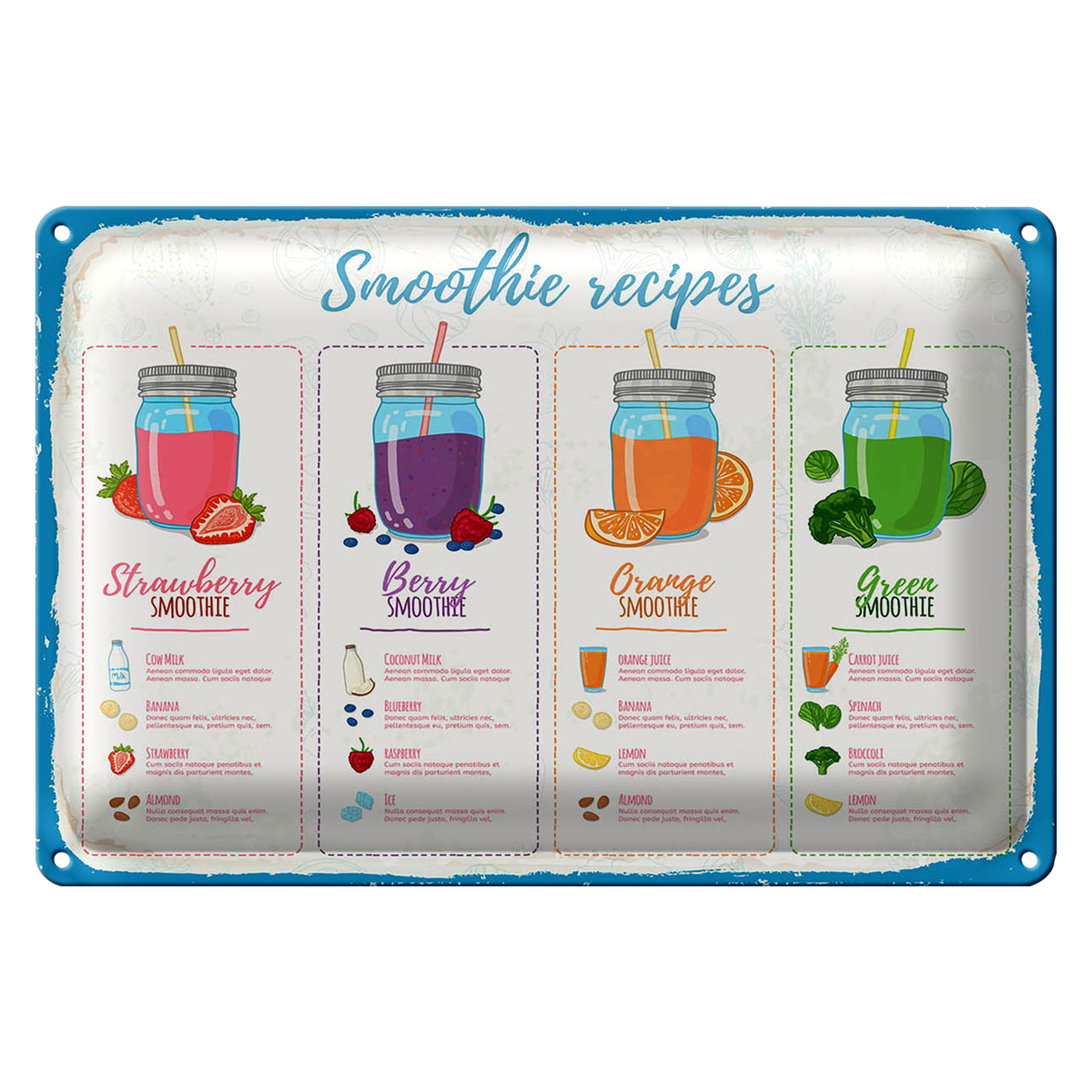 Blechschild Rezept Smoothie Recipe Berry Orange 30x20cm