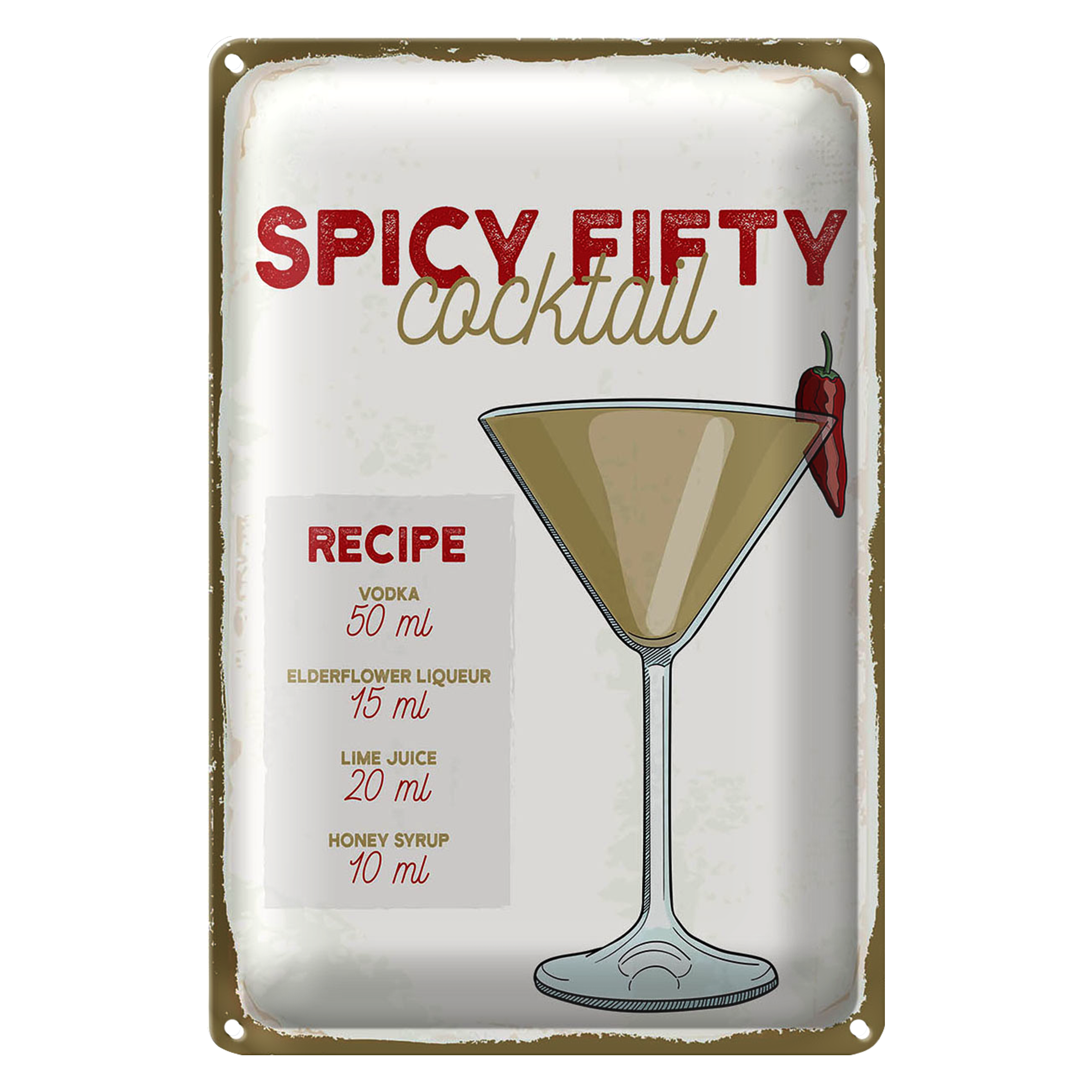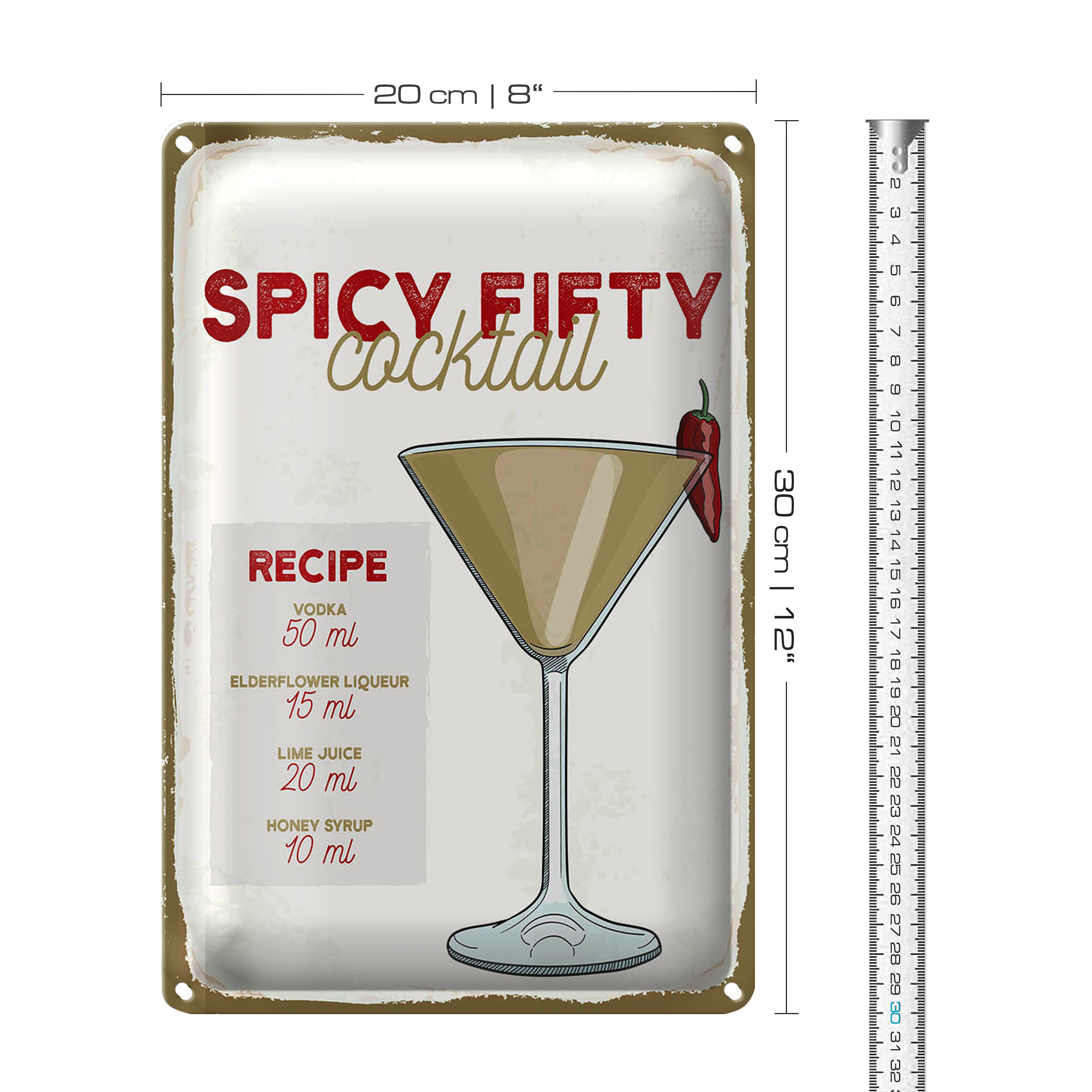 Blechschild Rezept Spicy Fifty Cocktail Recipe 20x30cm