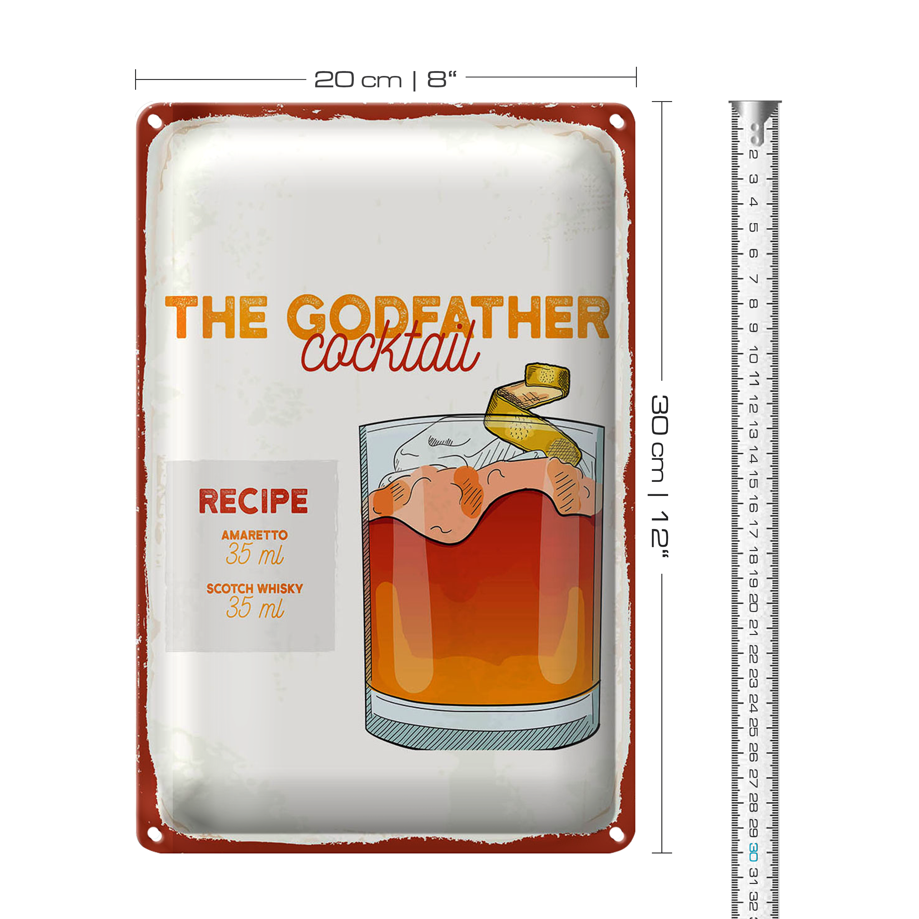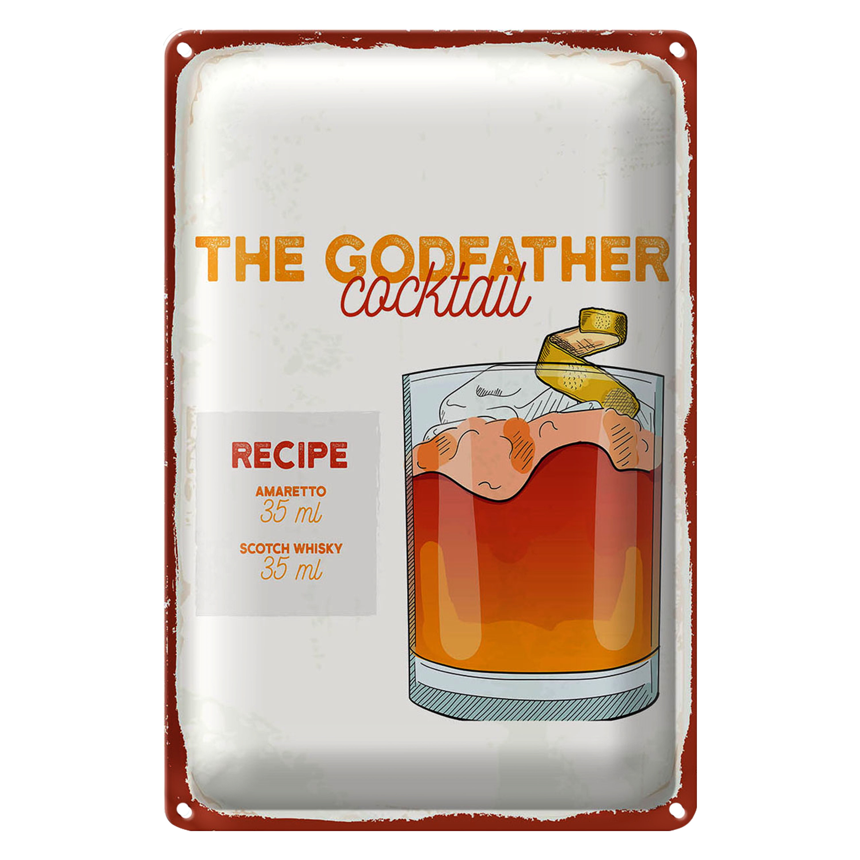 Blechschild Rezept The Godfather Cocktail Recipe 20x30cm