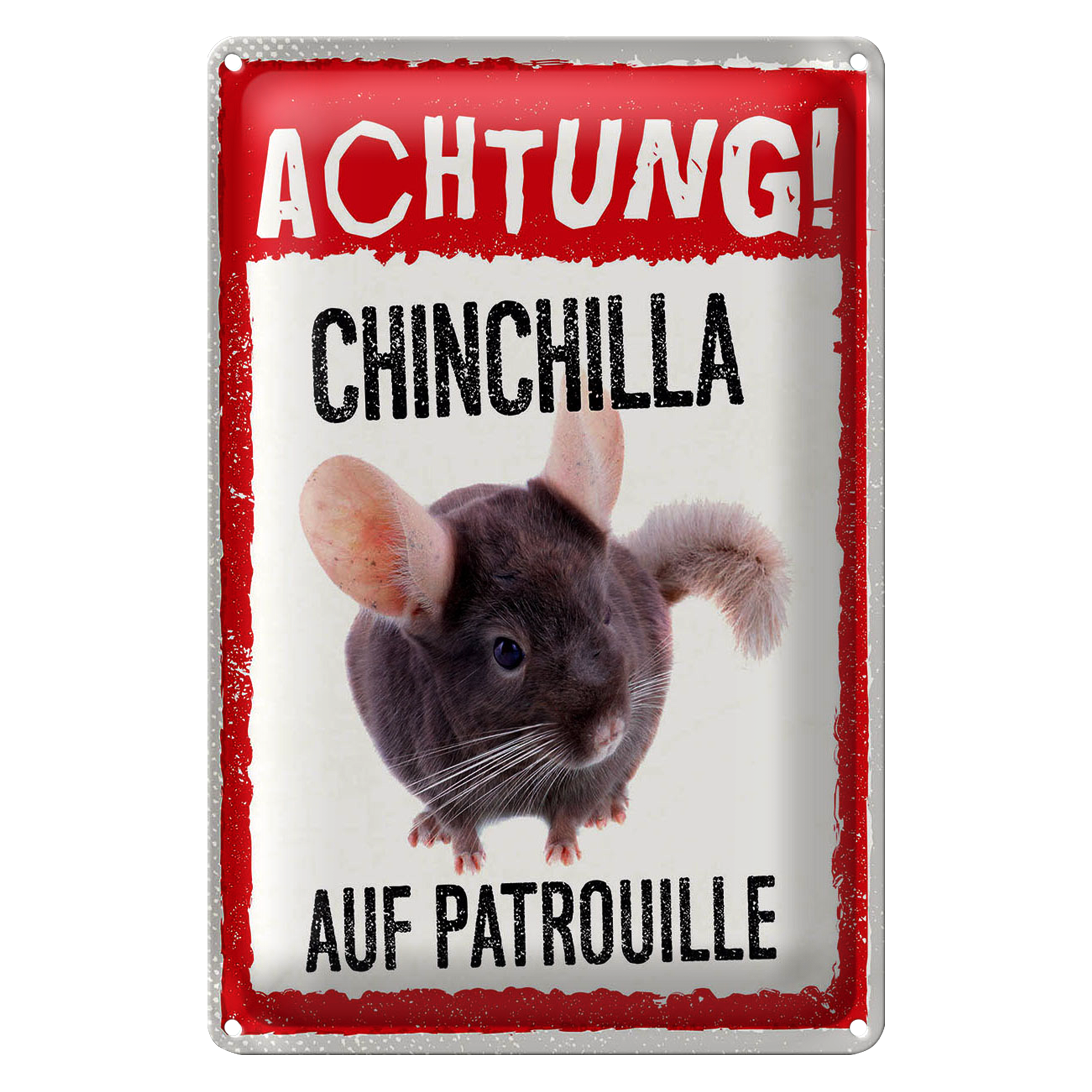 Blechschild Spruch 20x30cm Achtung Chinchilla auf Patrouille