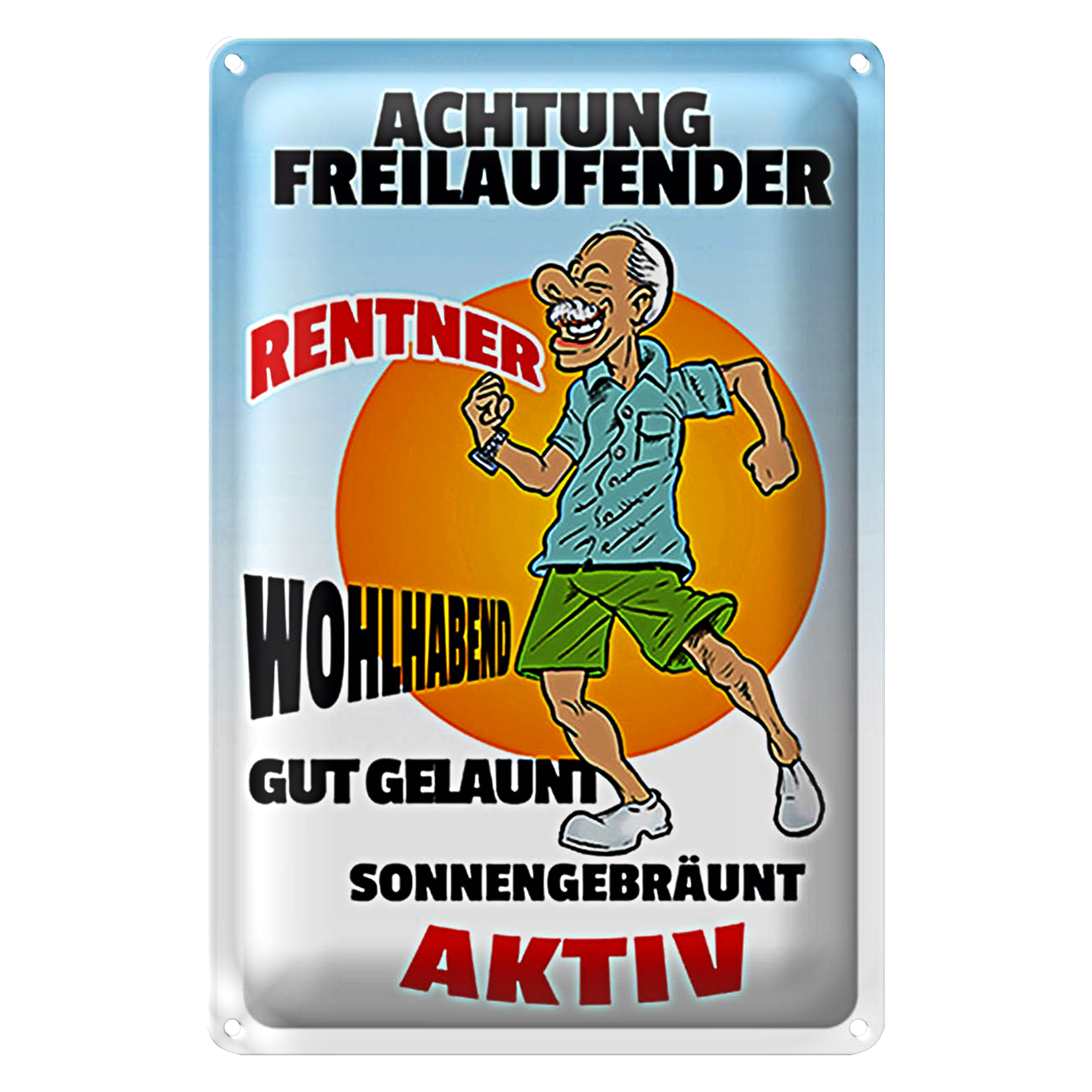 Blechschild Spruch 20x30cm Achtung freilaufender Rentner