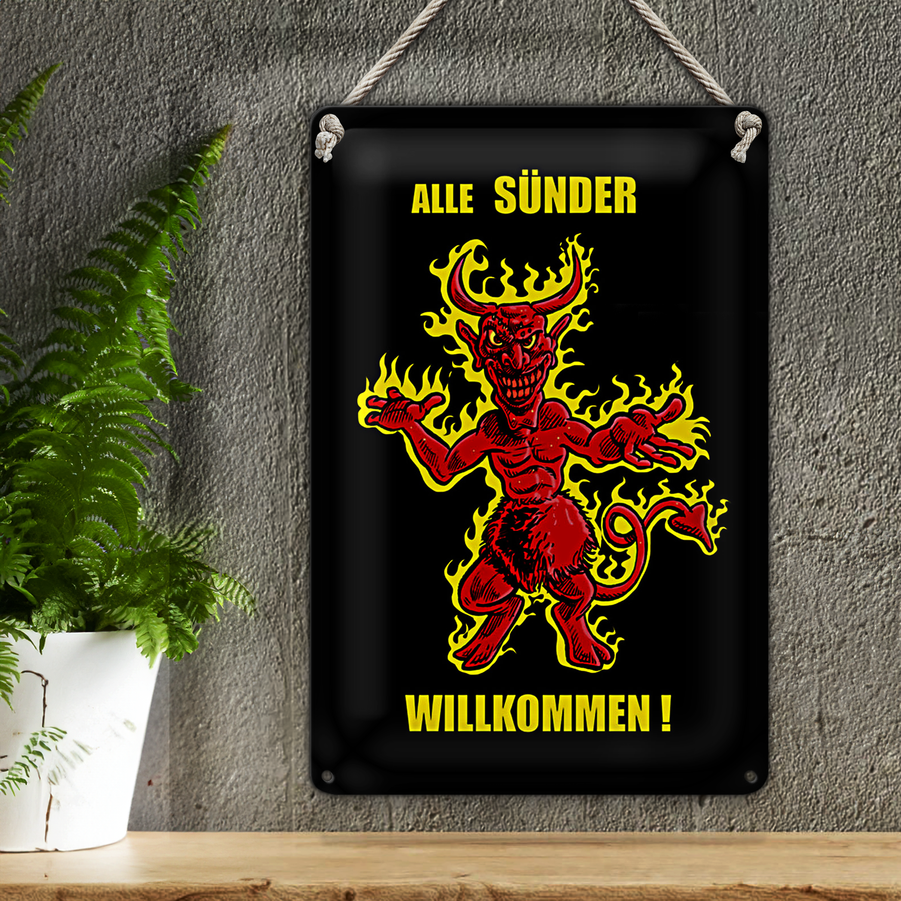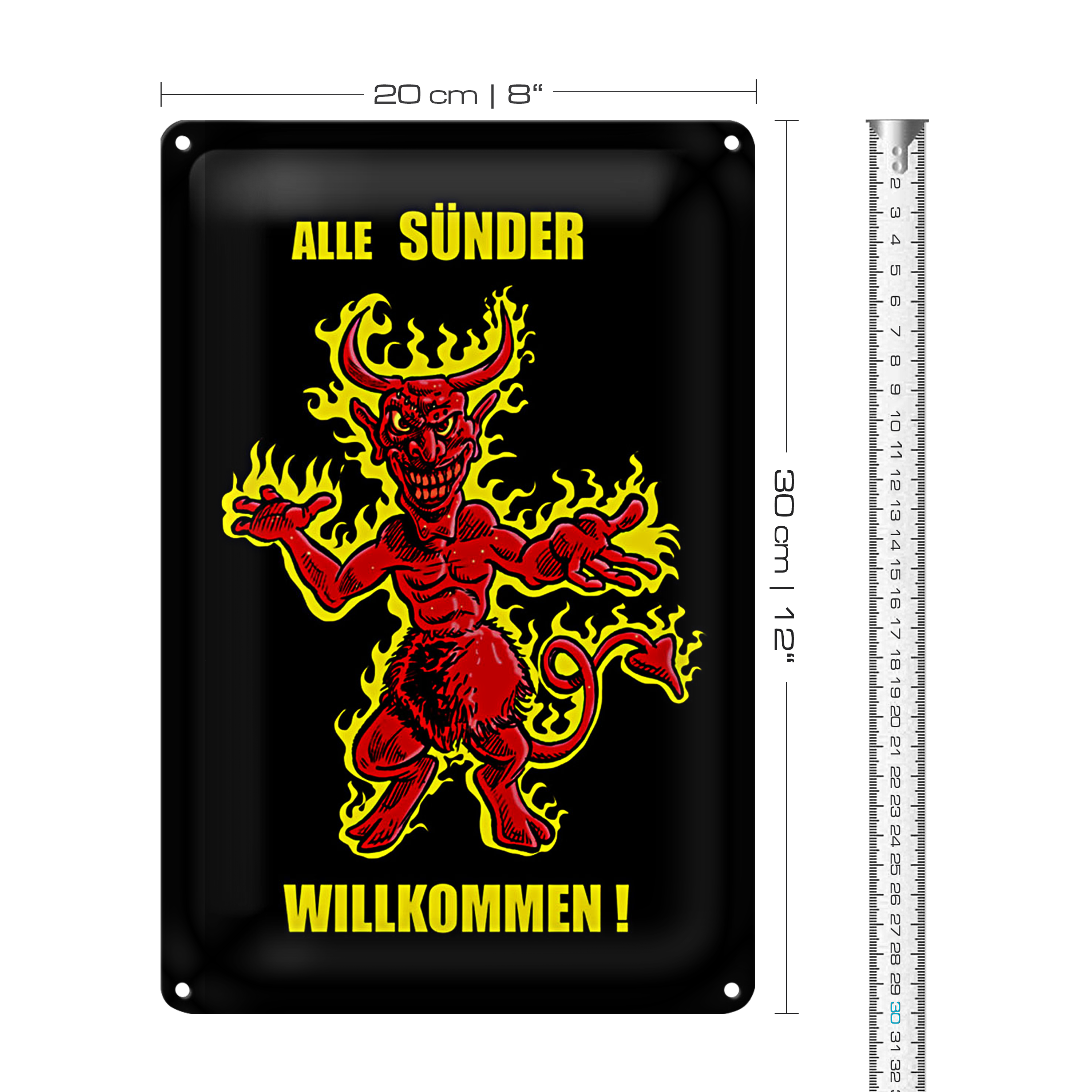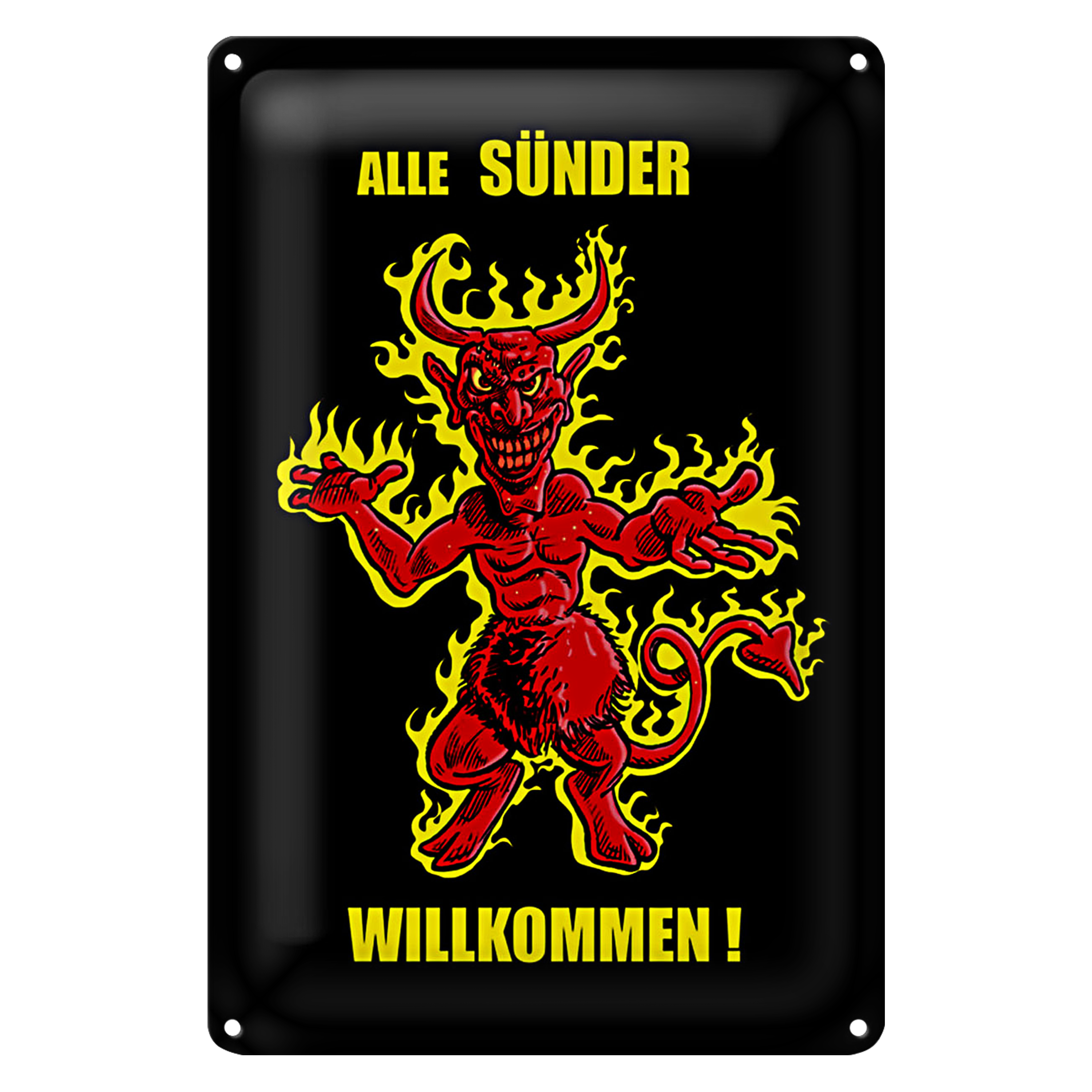 Blechschild Spruch 20x30cm Alle Sünder willkommen (Teufel)