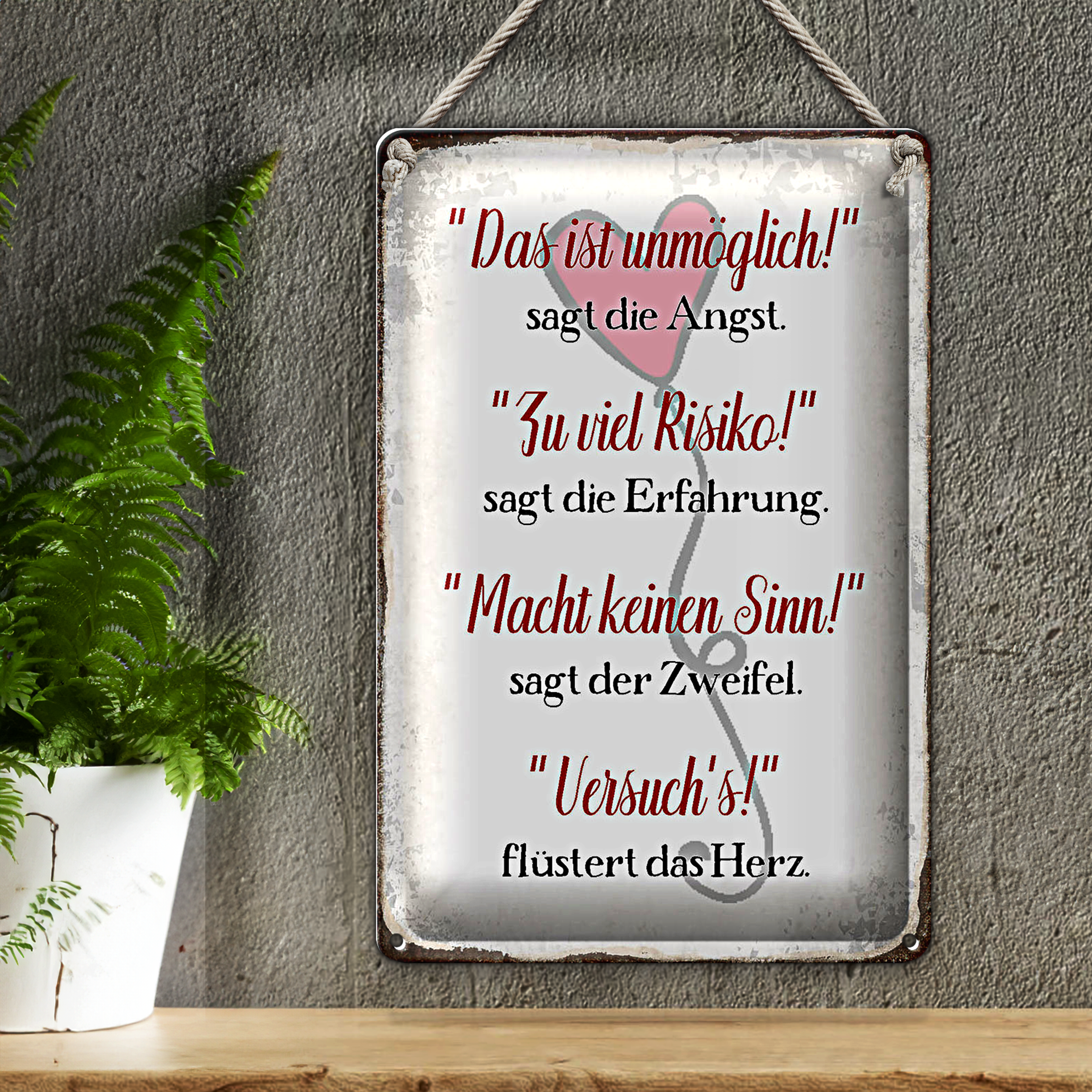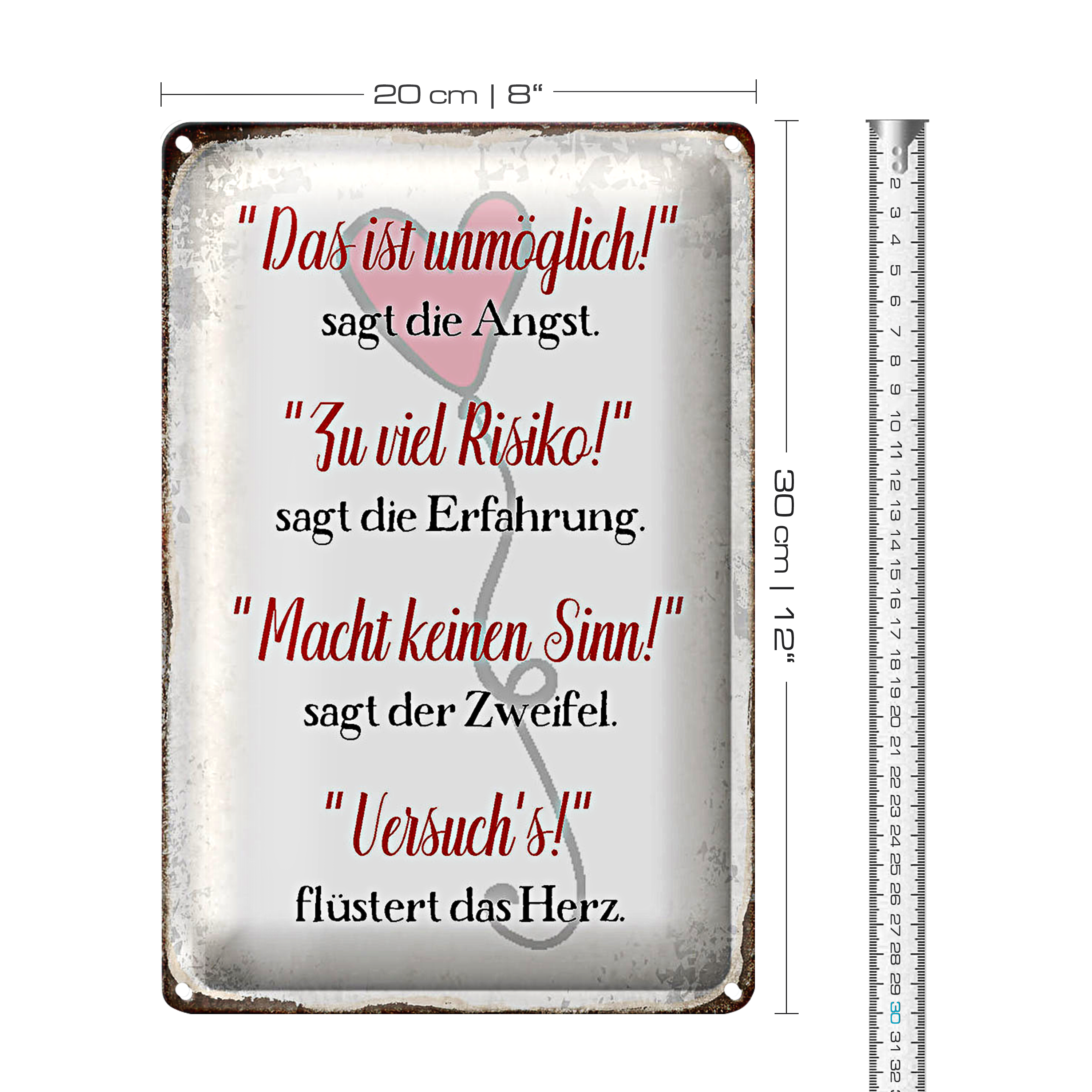 Blechschild Spruch 20x30cm Angst Erfahrung Zweifel Herz