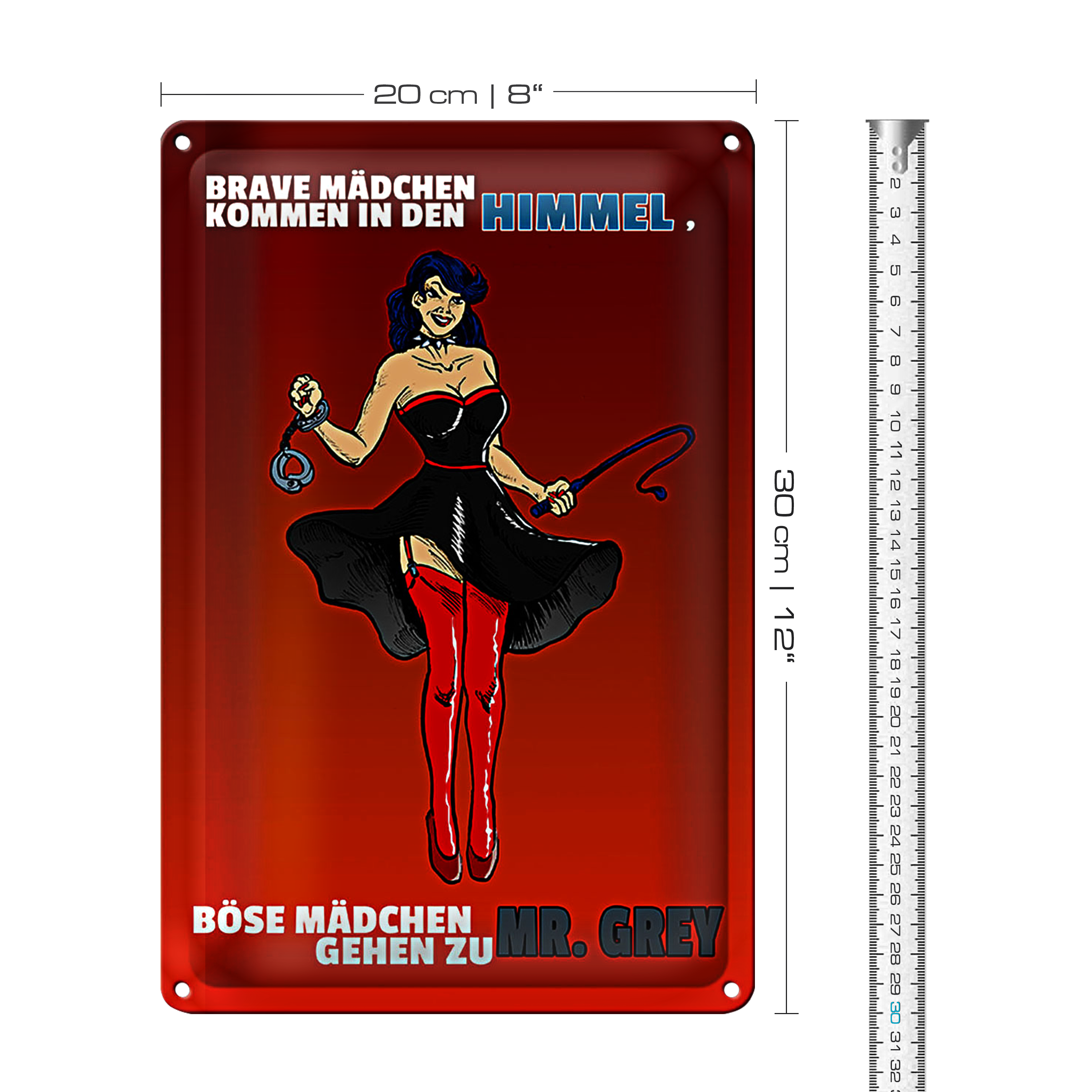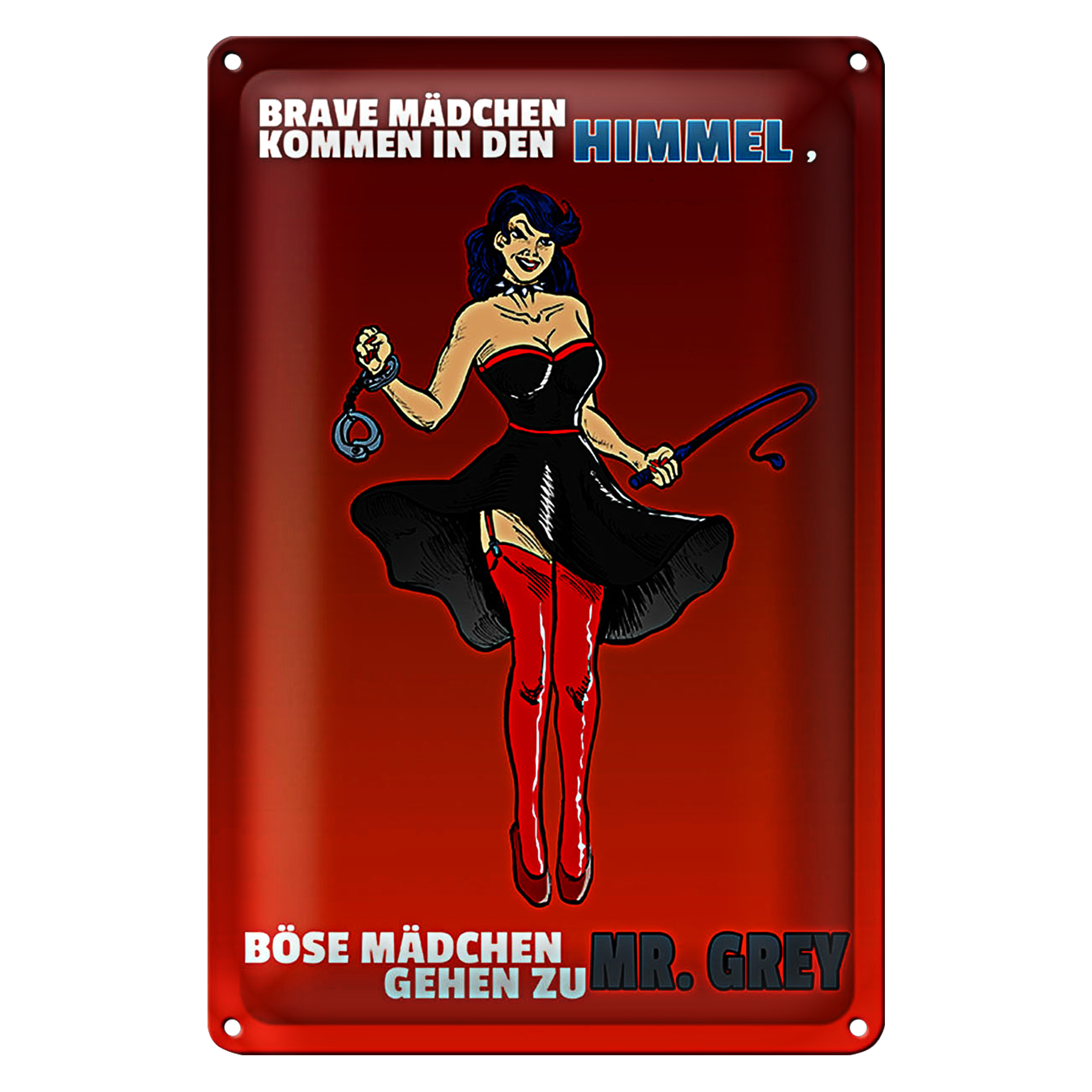 Blechschild Spruch 20x30cm Böse Mädchen gehen zu Mr. Grey