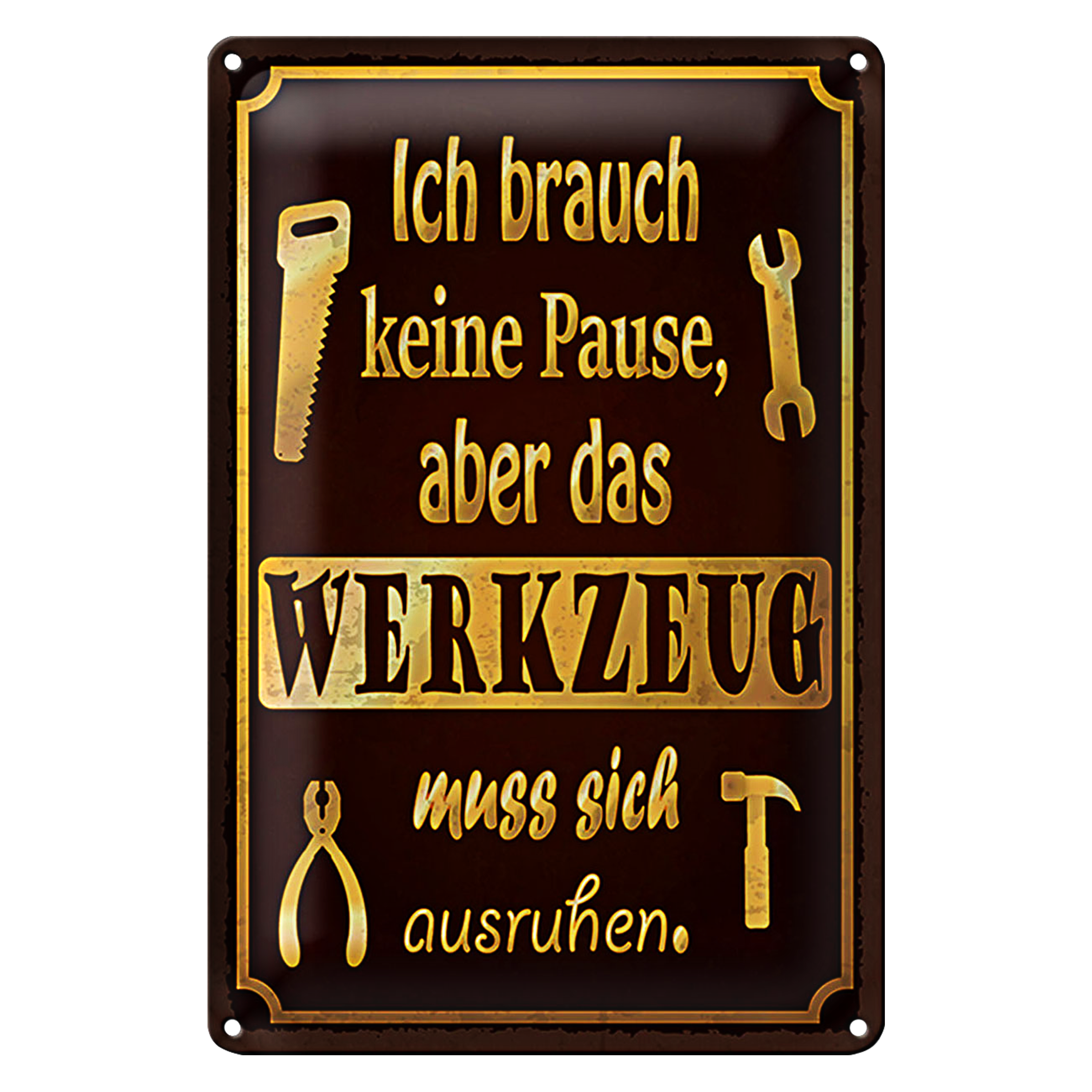 Blechschild Spruch 20x30cm brauch keine Pause aber Werkzeug