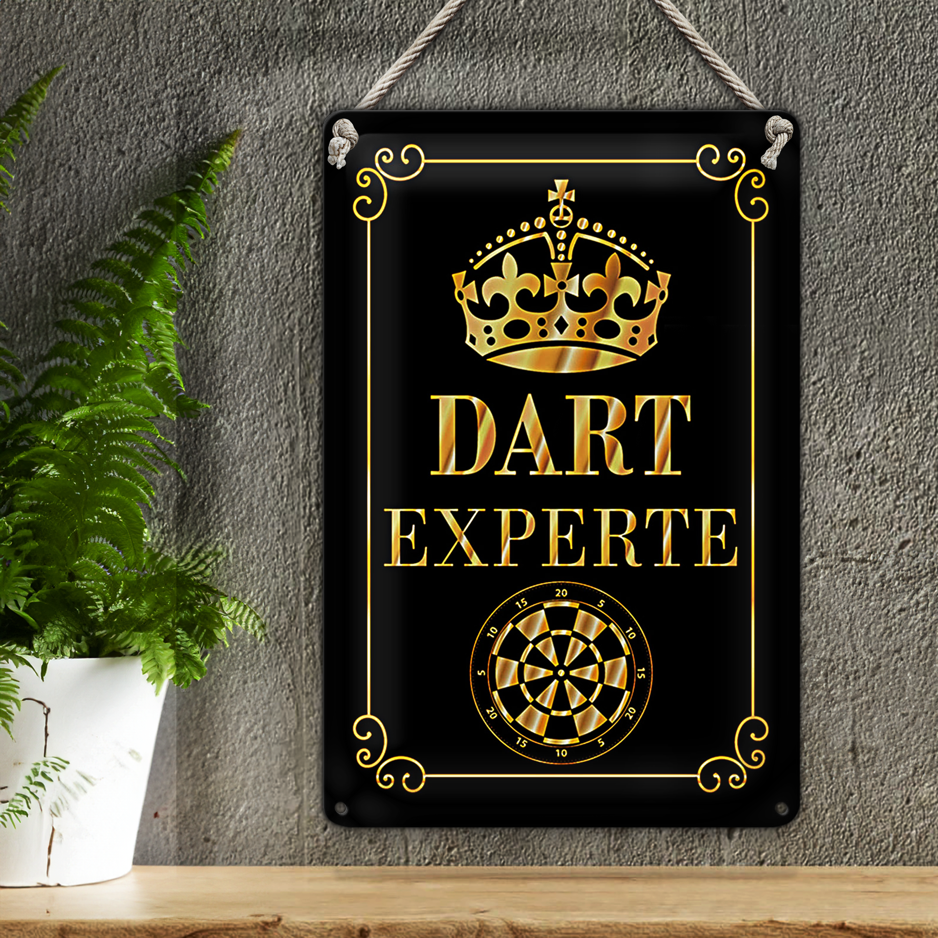 Blechschild Spruch 20x30cm Dart Experte Krone