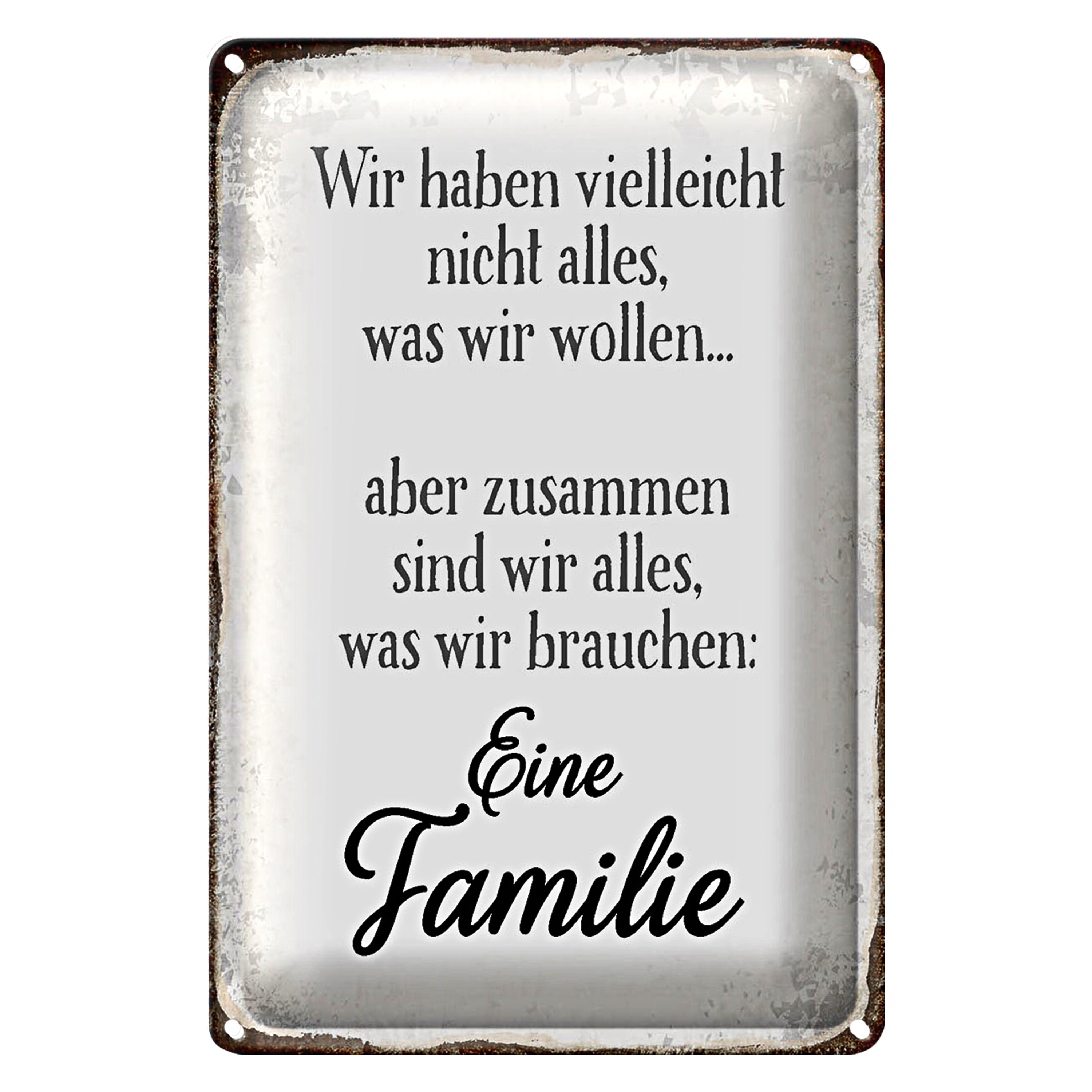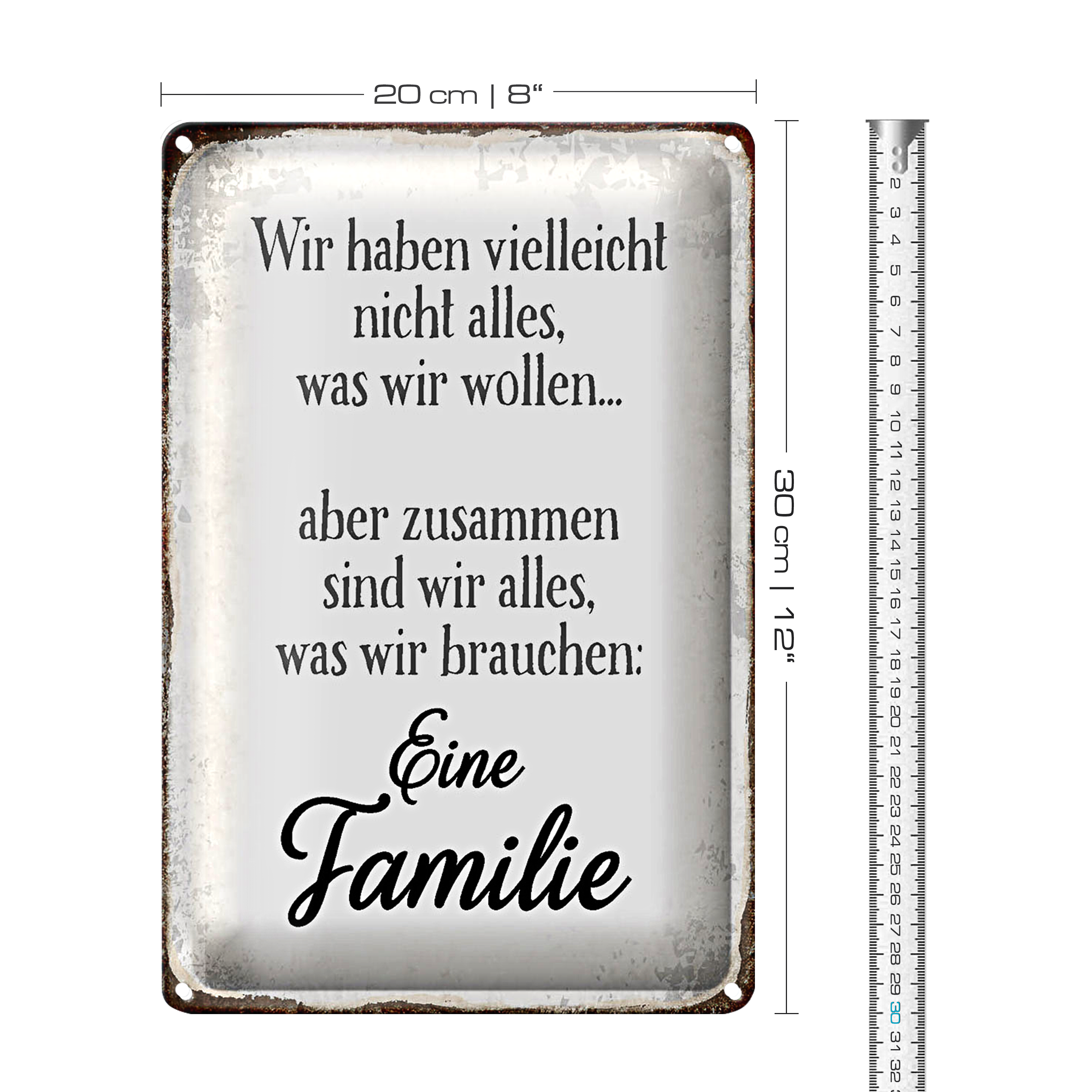 Blechschild Spruch 20x30cm eine Famile zusammen wir alles