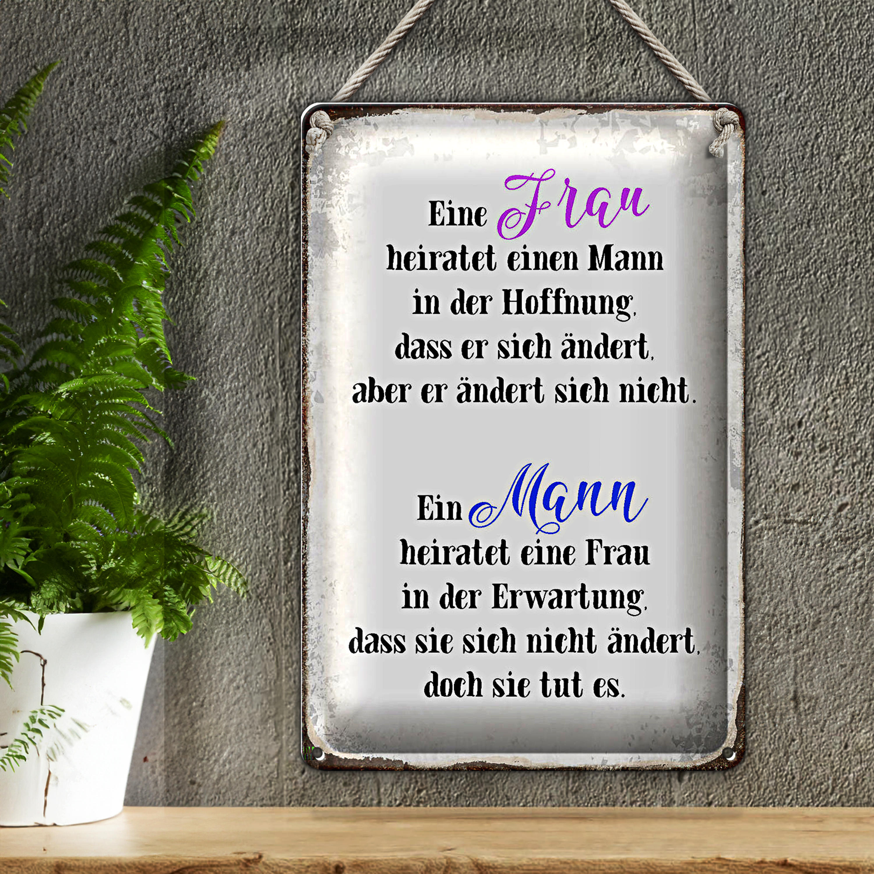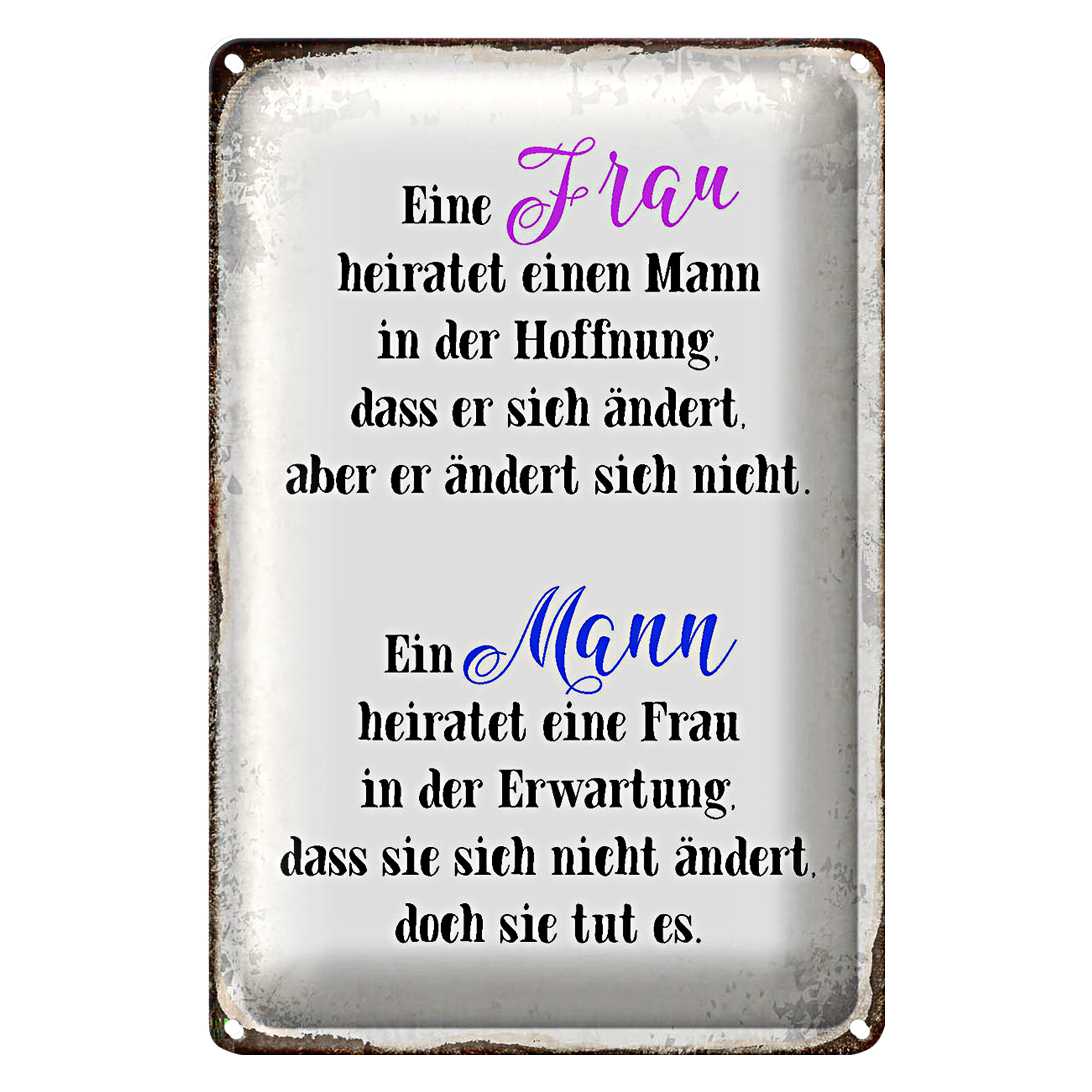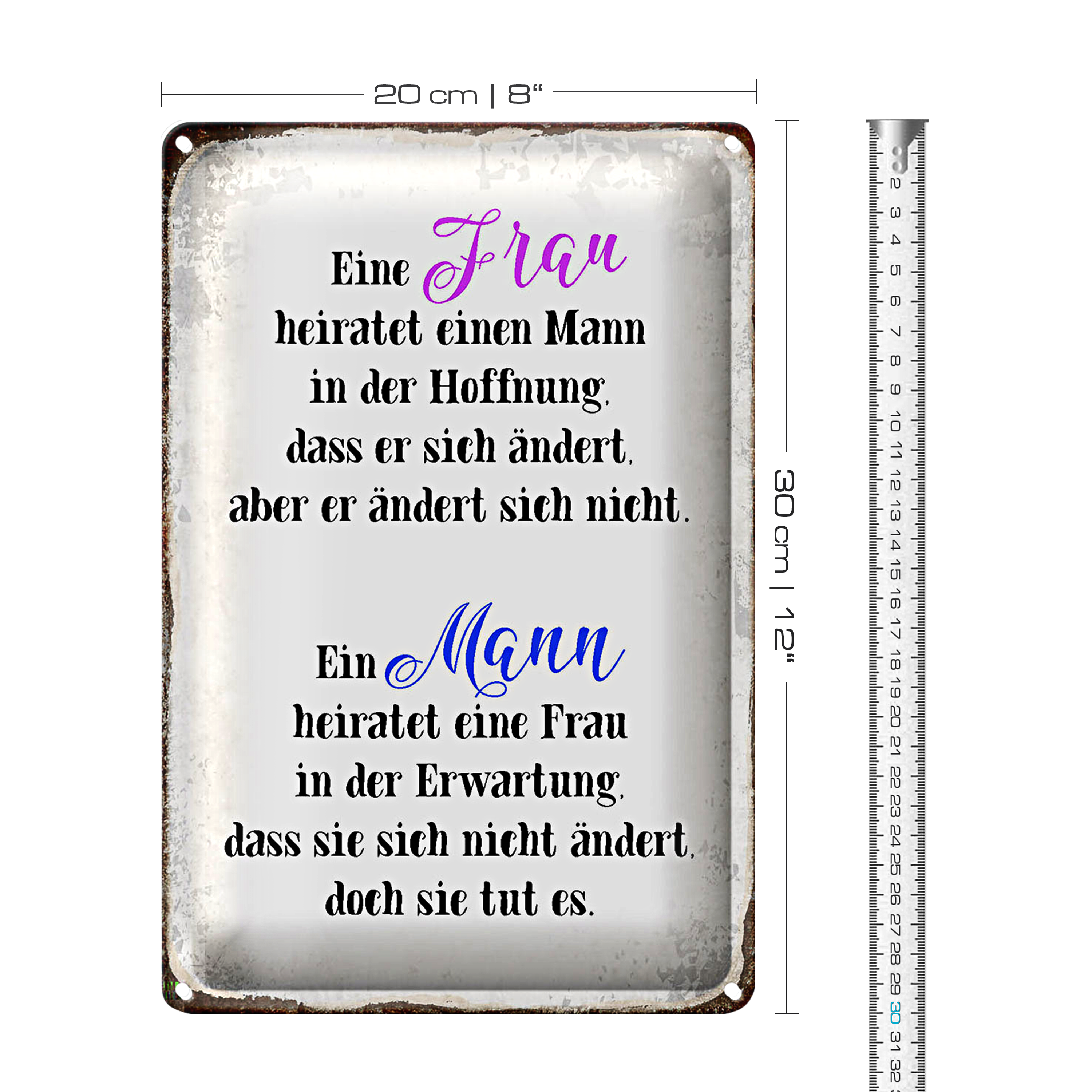 Blechschild Spruch 20x30cm eine Frau heiratet einen Mann