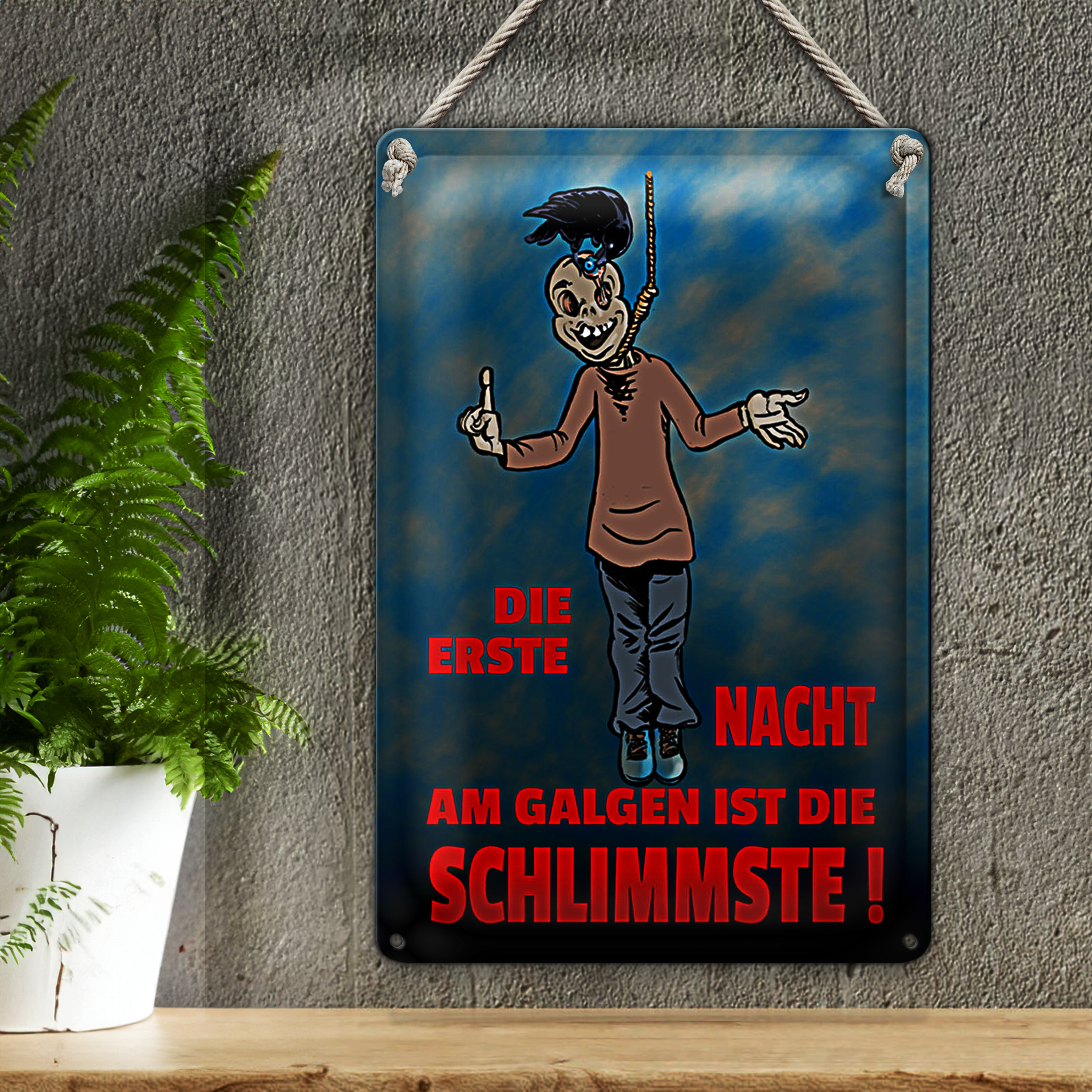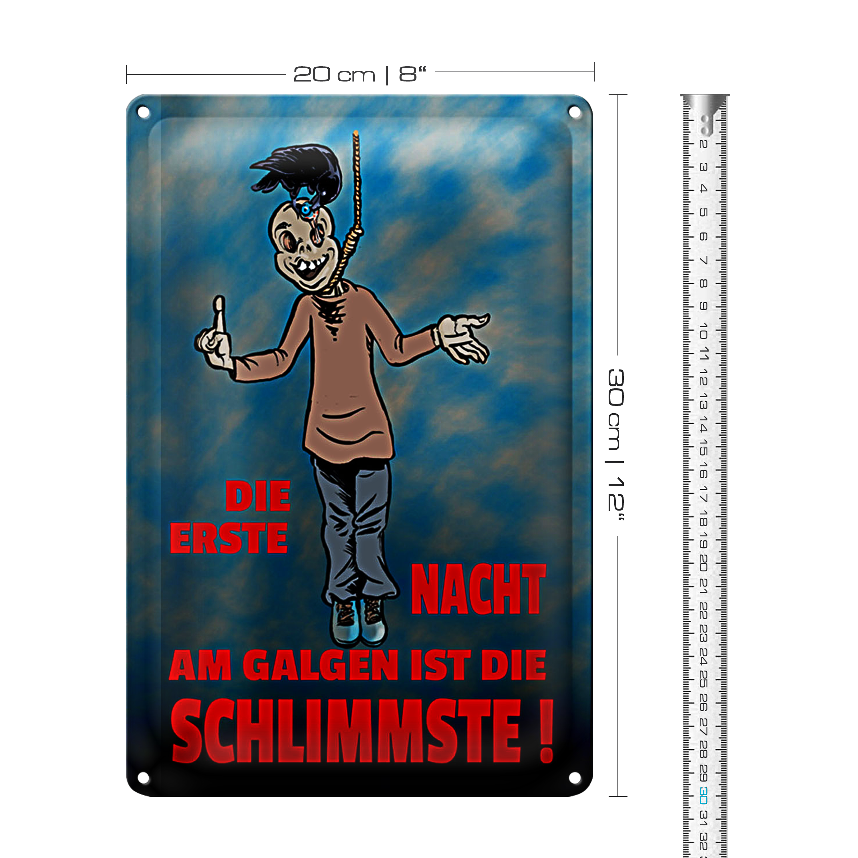 Blechschild Spruch 20x30cm Erste Nacht am Galgen ist schlimmste