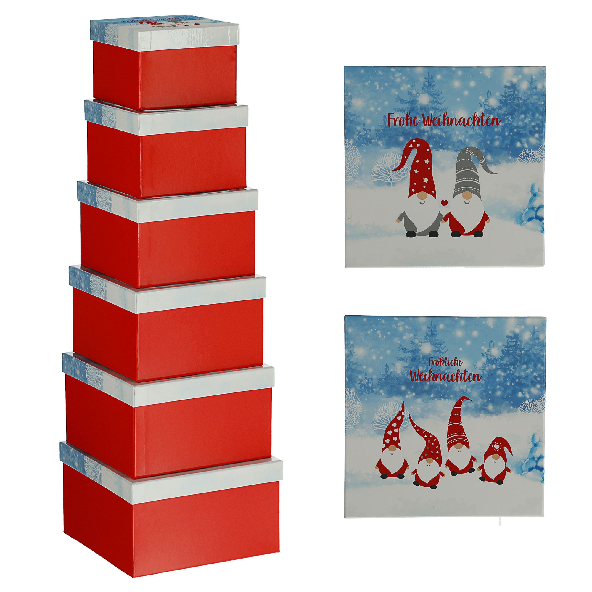 Boxenset 6tlg "Frohe Weihnachten" rot Weihnachtsgeschenke Geschenkboxen Weihnachtsmann Schachteln Boxen Verpackung