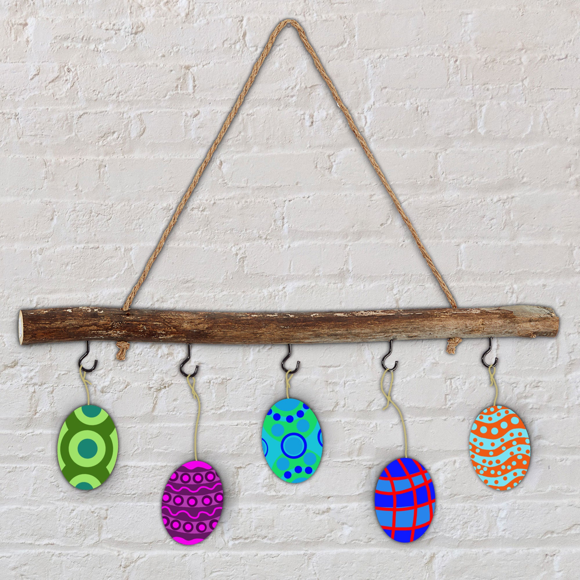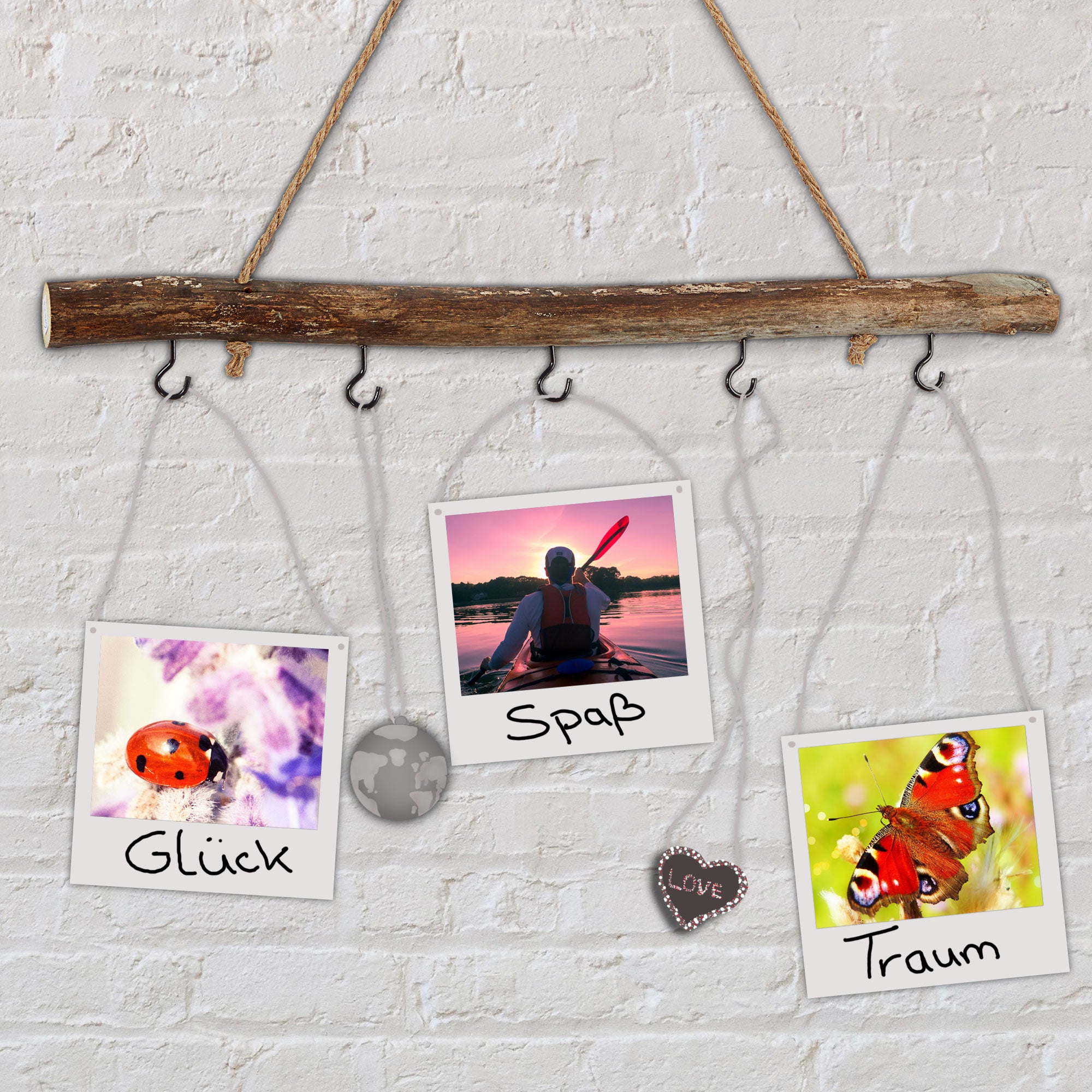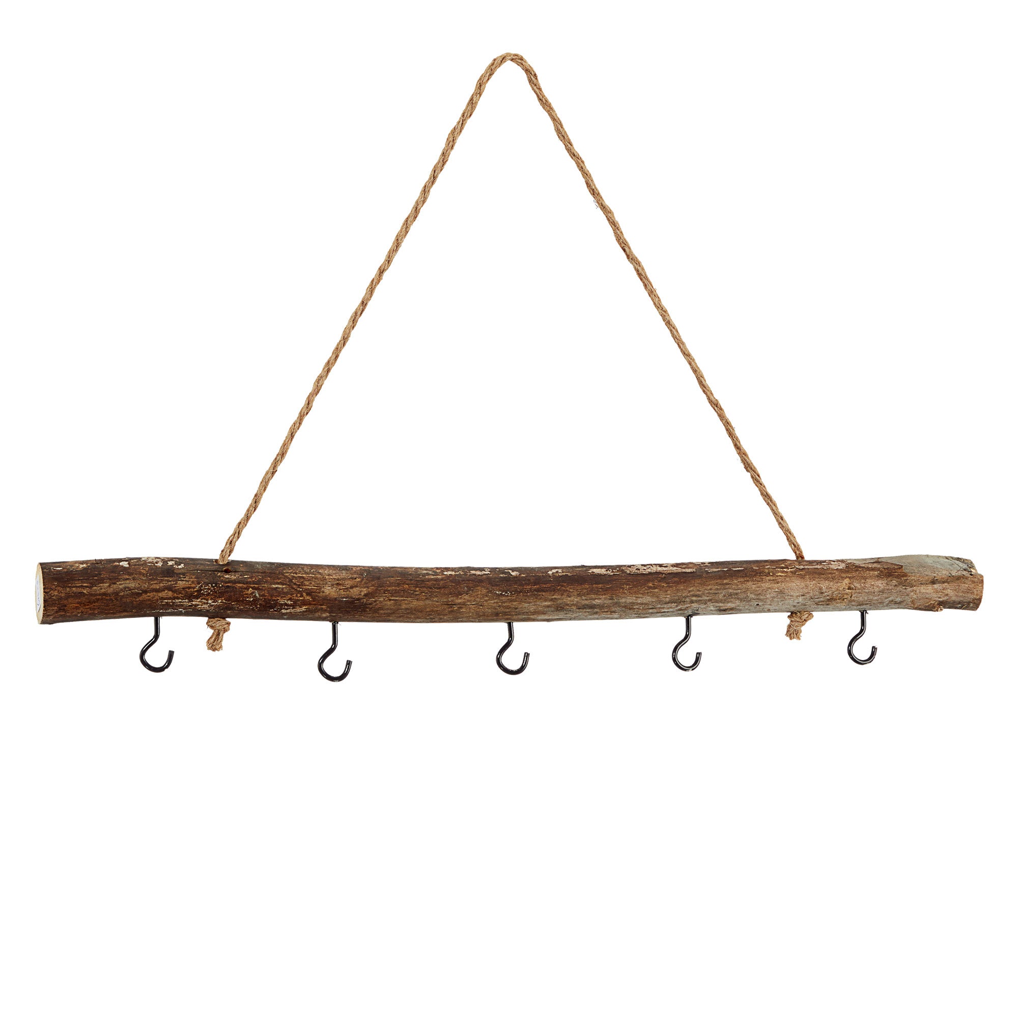 Dekostange "Deluxe" mit 5 Metallhaken 50cm Dekostange aus Altholz naturfarben mit Juteseil