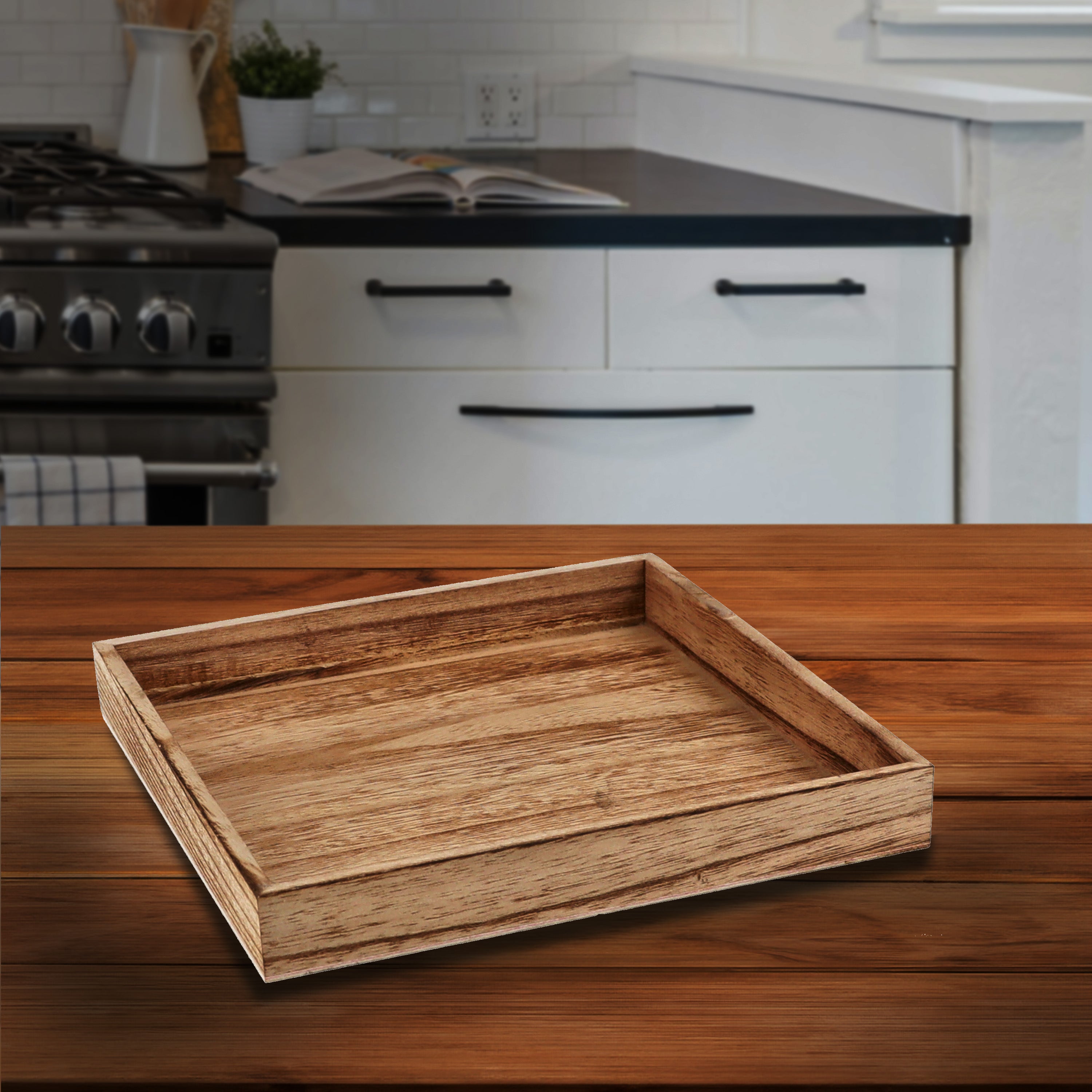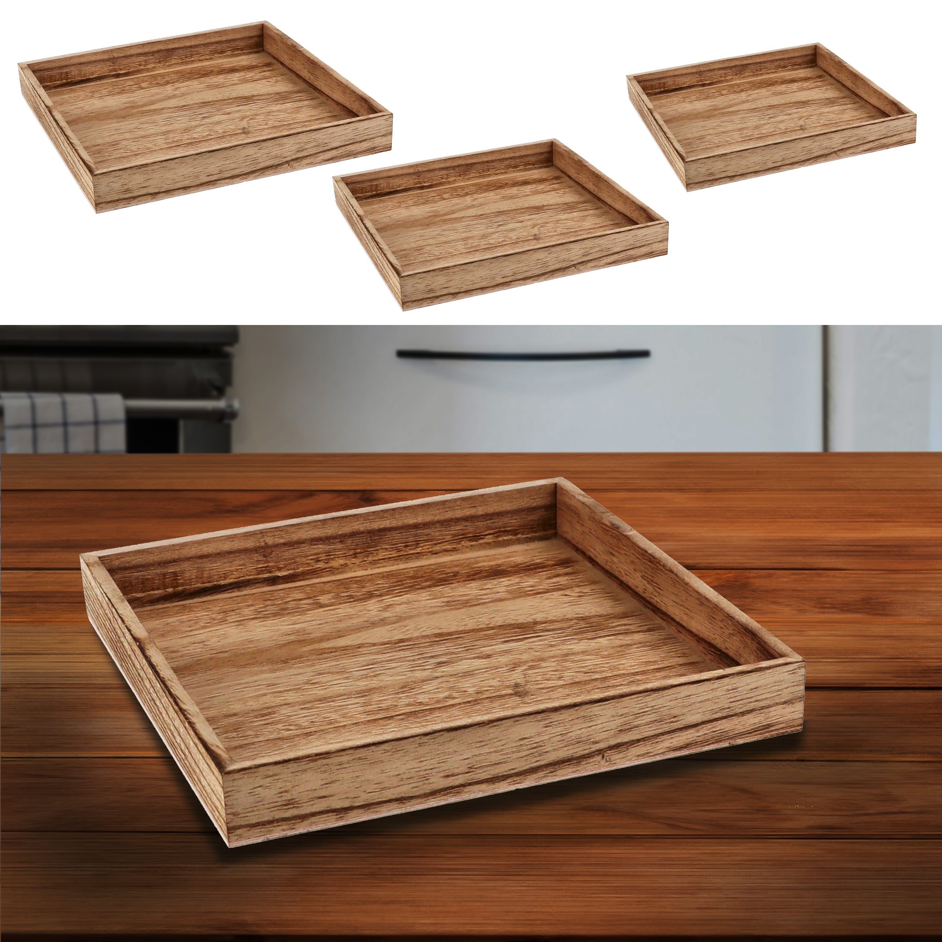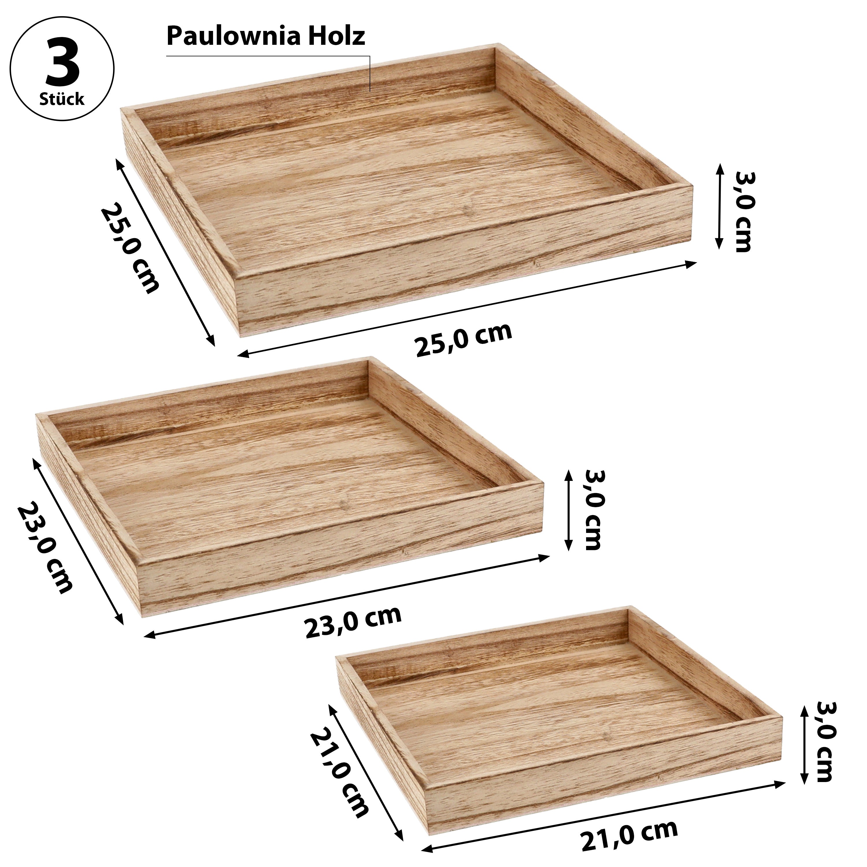 Holztablett 3er Set 3 Größen Holzstärke 1cm Paulowniaholz natur geflammt quadratisch Tablett Dekotablett Servierschale