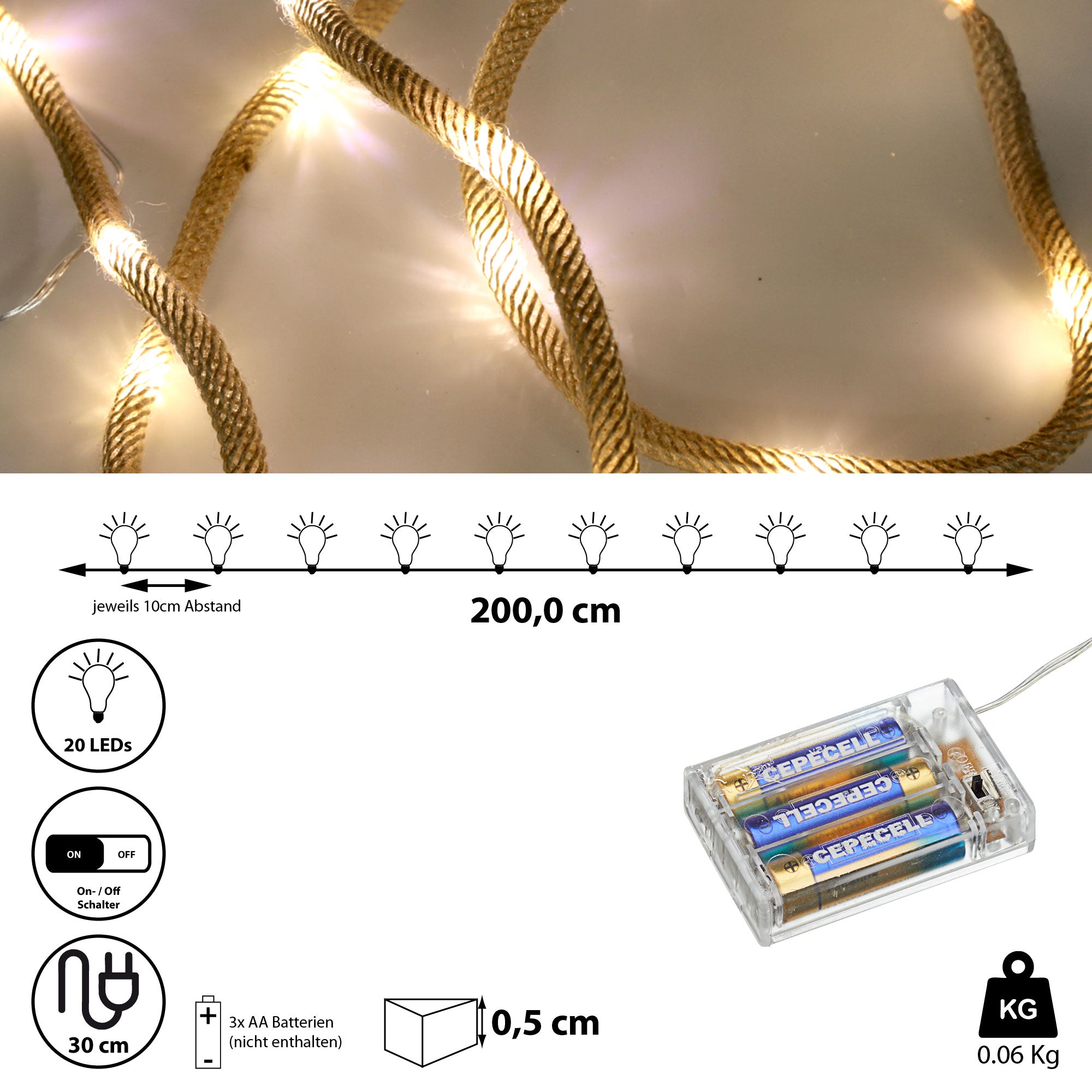 Lichterkette Seil mit 20LED ca. 200cm warmweiß Leuchtschnur Lichterschnur Schnur batteriebetrieben